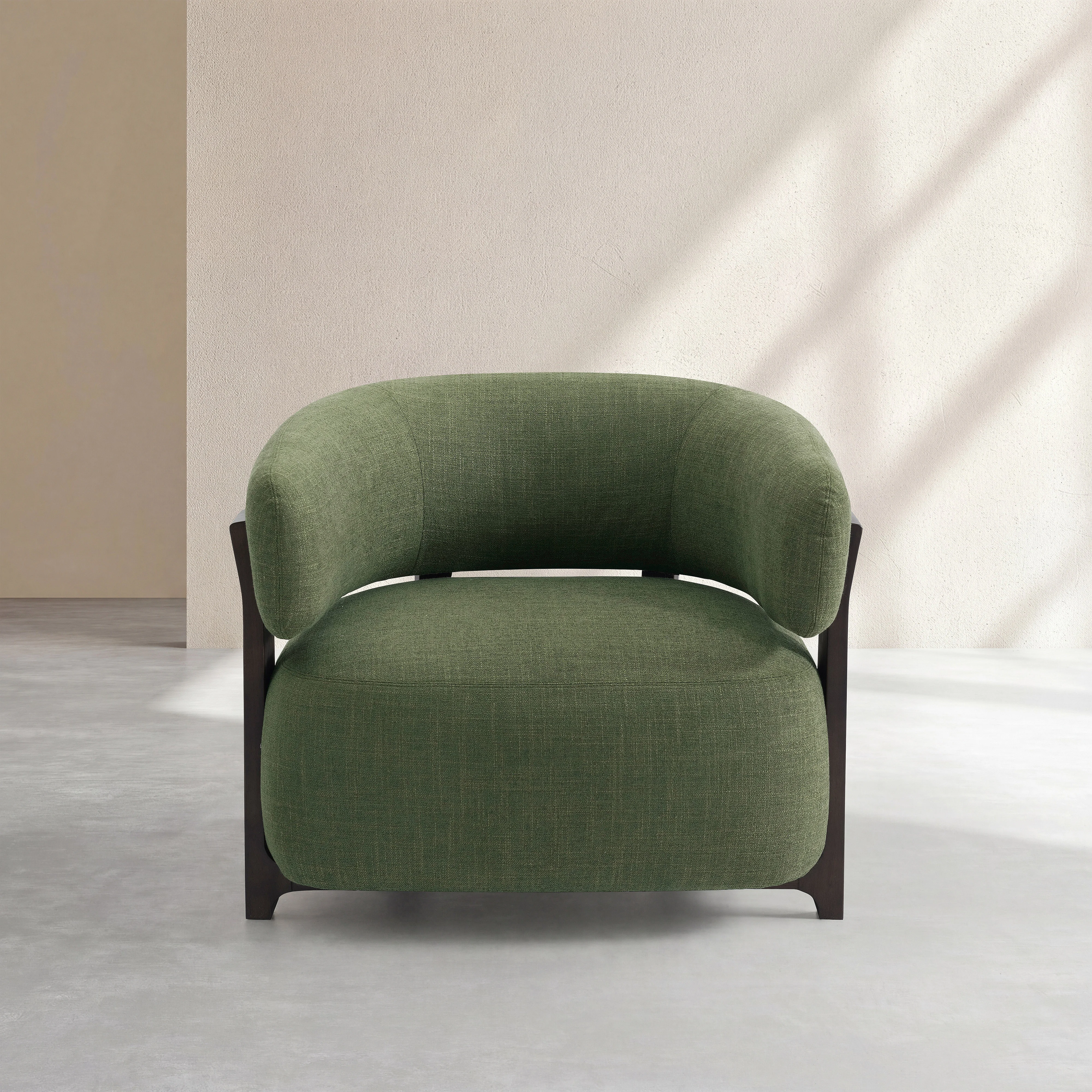 Sessel aus strukturiertem Stoff und Massivholz - Khakigrün und Nussbaum