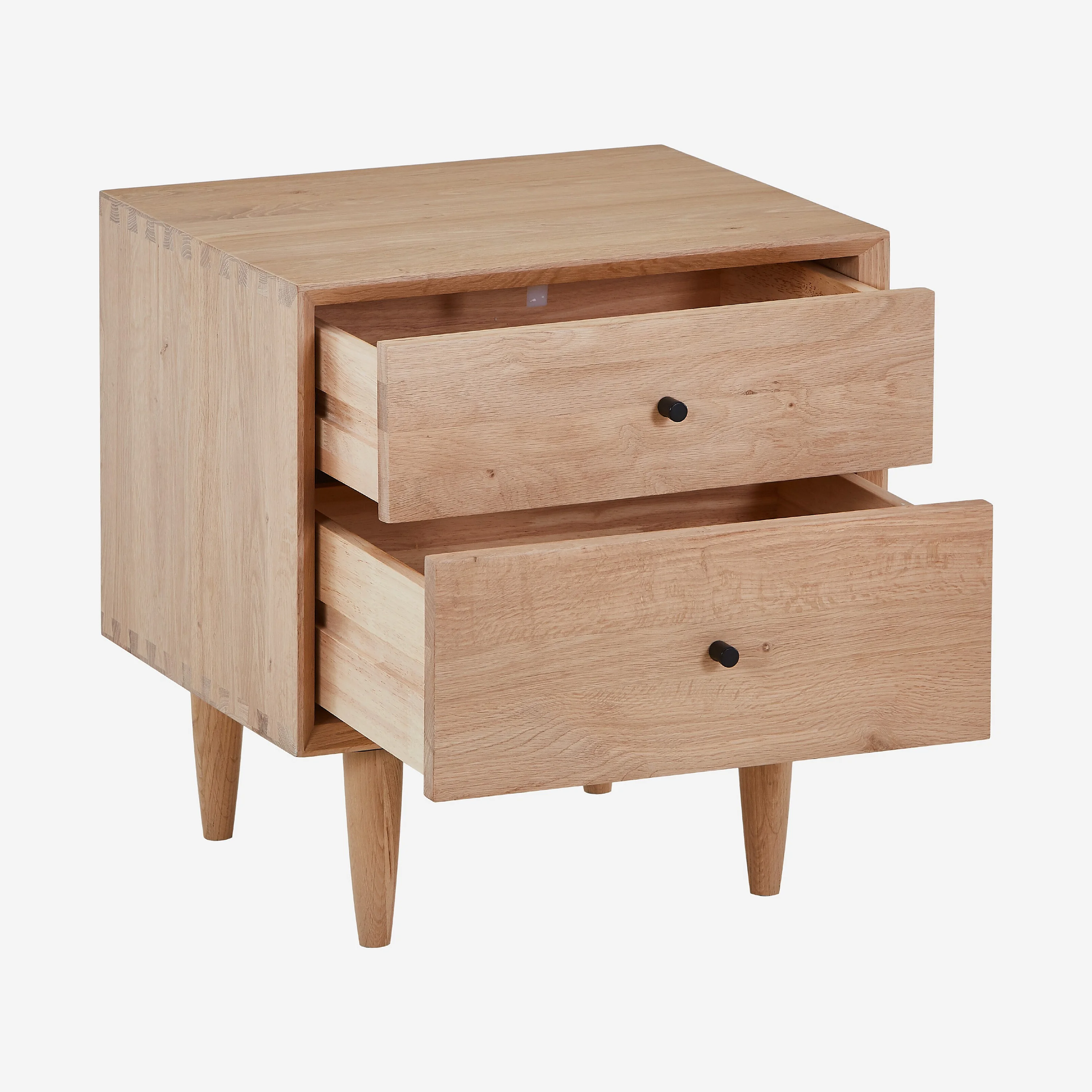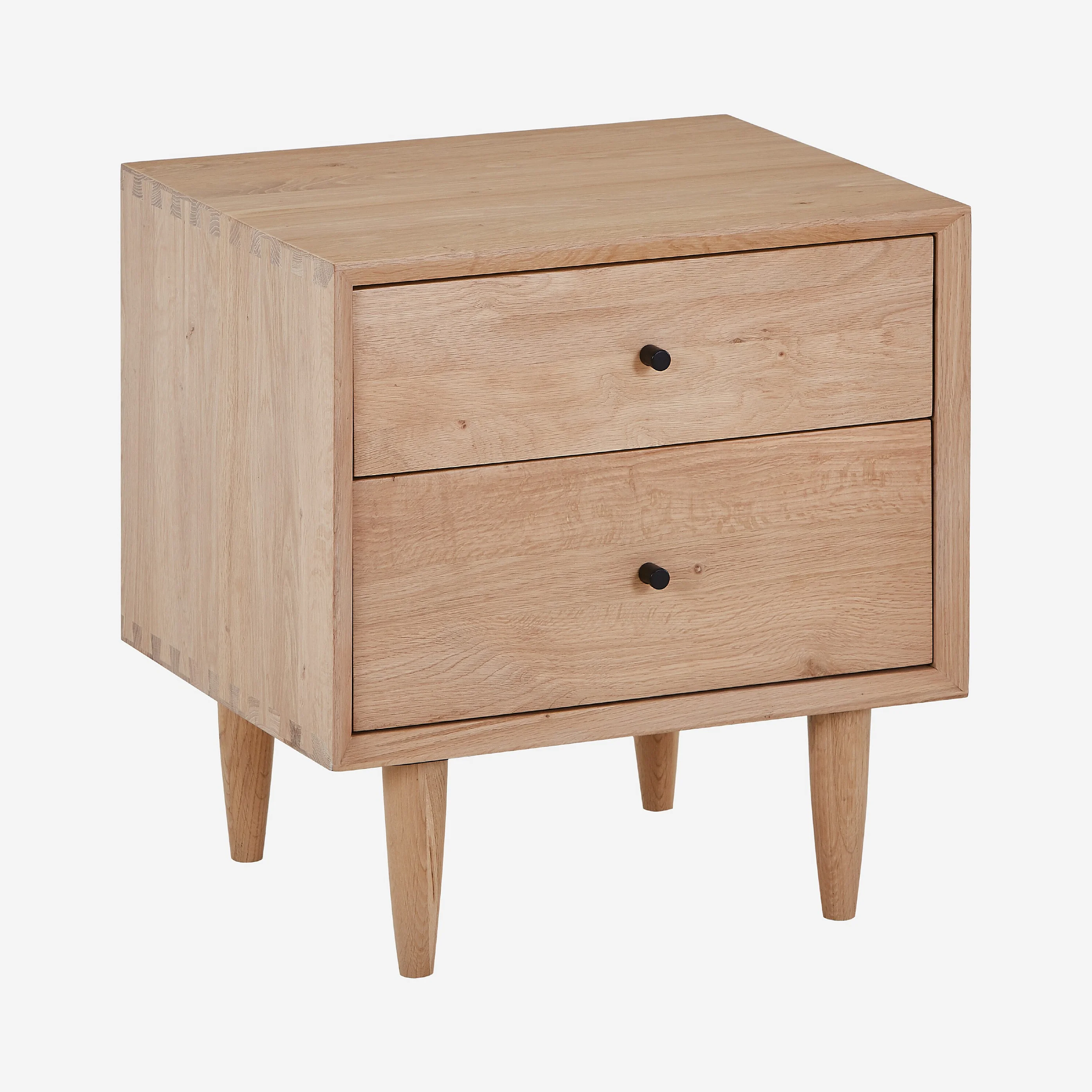 Nachttisch mit 2 Schubladen aus massiver Eiche - Natur