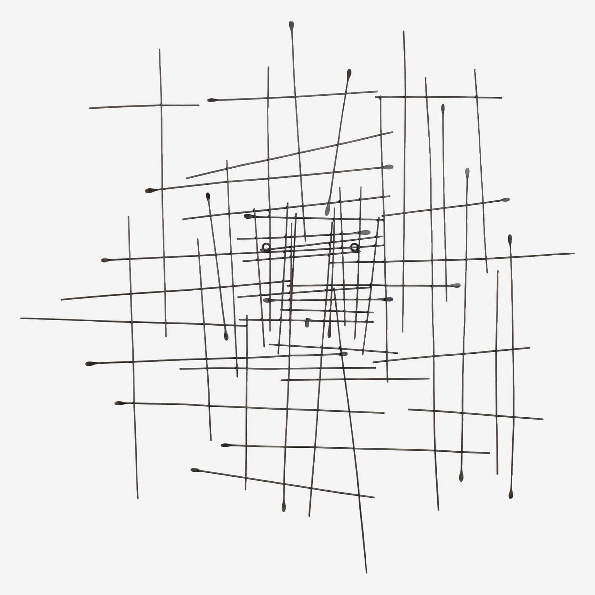 Die Wanddekoration Kross zeichnet ein Spiel aus geometrischen Linien aus Metall, wie ein grafisches Kunstwerk, das die Wand schmückt und den Blick fängt.