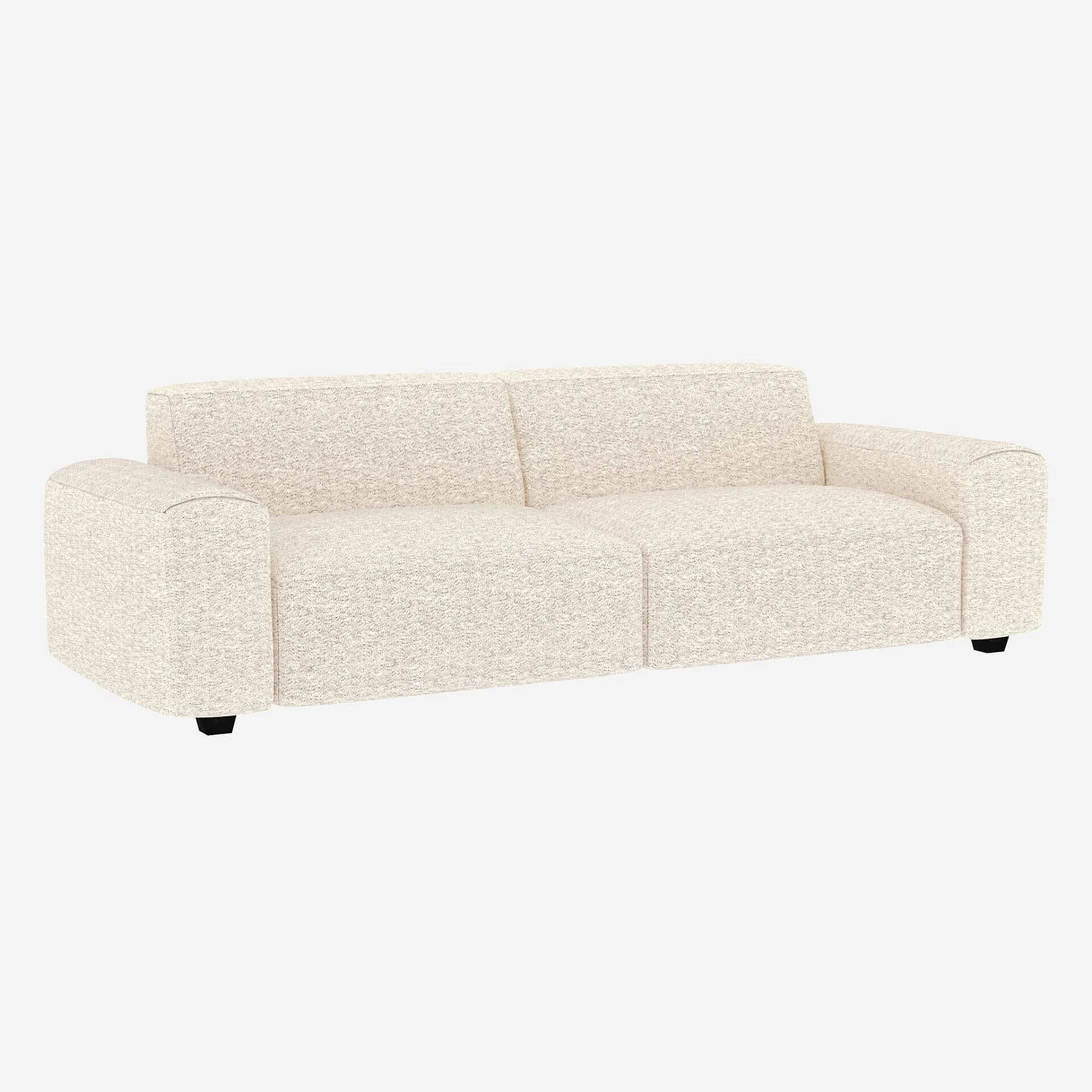 Gerundete Formen, sorgfältige Verarbeitung und weiche Sitzfläche definieren dieses elegante und einladende 4-Sitzer-Sofa. Eine Kreation mit umhüllendem Komfort, perfekt zur Gestaltung eines zeitgenössischen Wohnzimmers.
