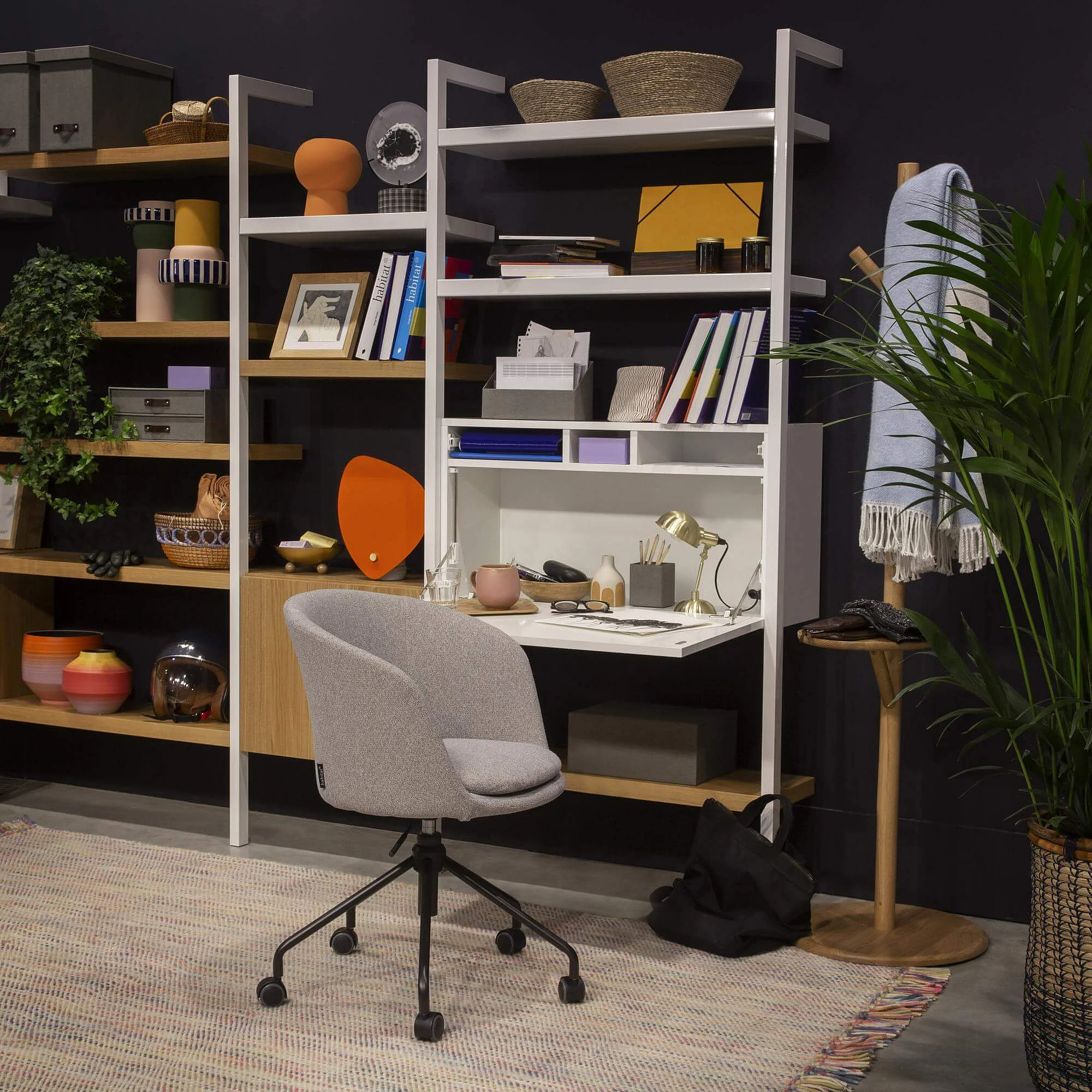 Klapptisch, klare Linien und kompaktes Format machen ihn zu einer eleganten Lösung für die Gestaltung eines diskreten Arbeitsbereichs. Perfekt für kleine Räume oder modulare Einrichtungen.