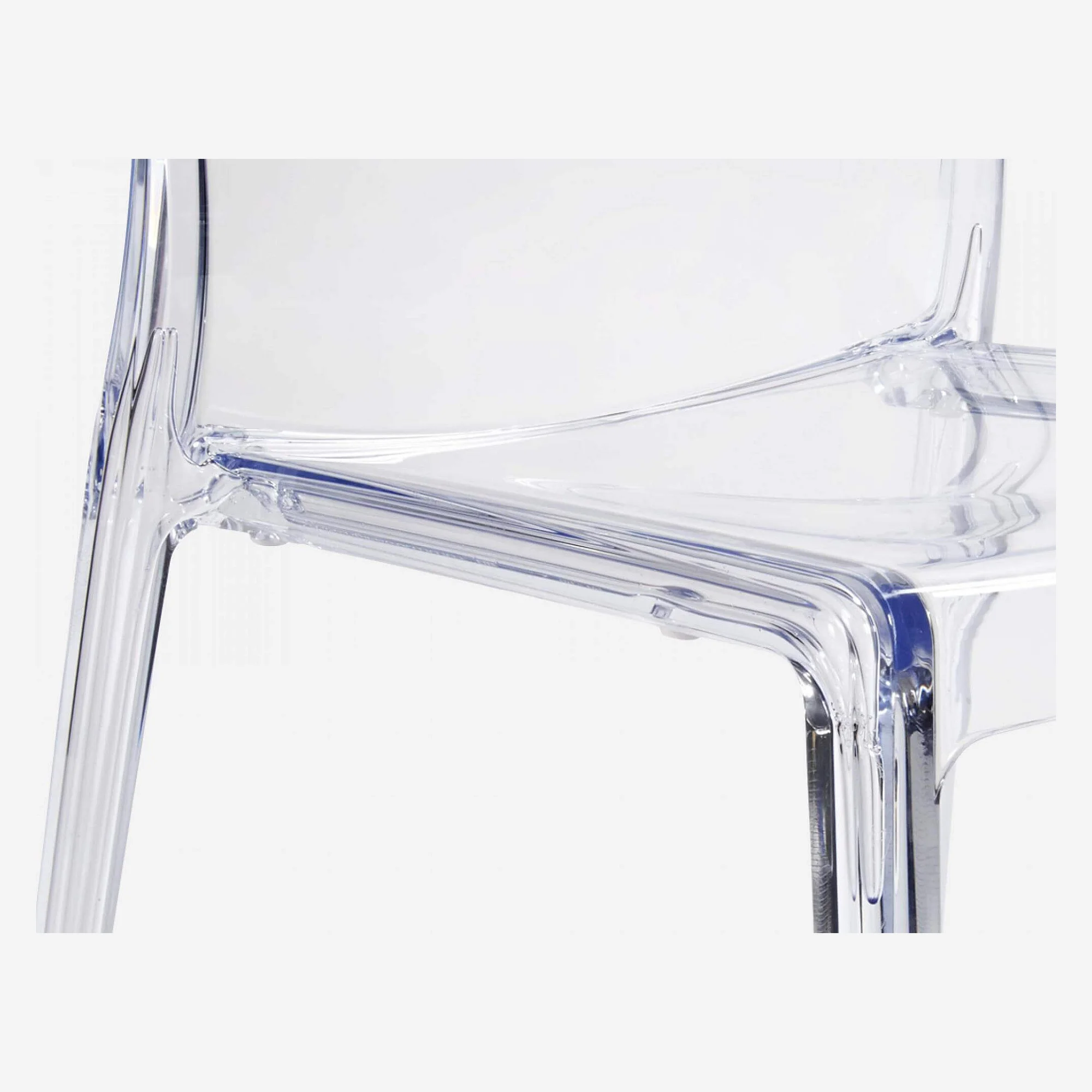 Klare Linien, Transparenz und Leichtigkeit definieren diesen Stuhl im ultramodernen Stil. Gefertigt aus widerstandsfähigem Polycarbonat, verleiht er jedem Interieur eine elegante und dezente Note.