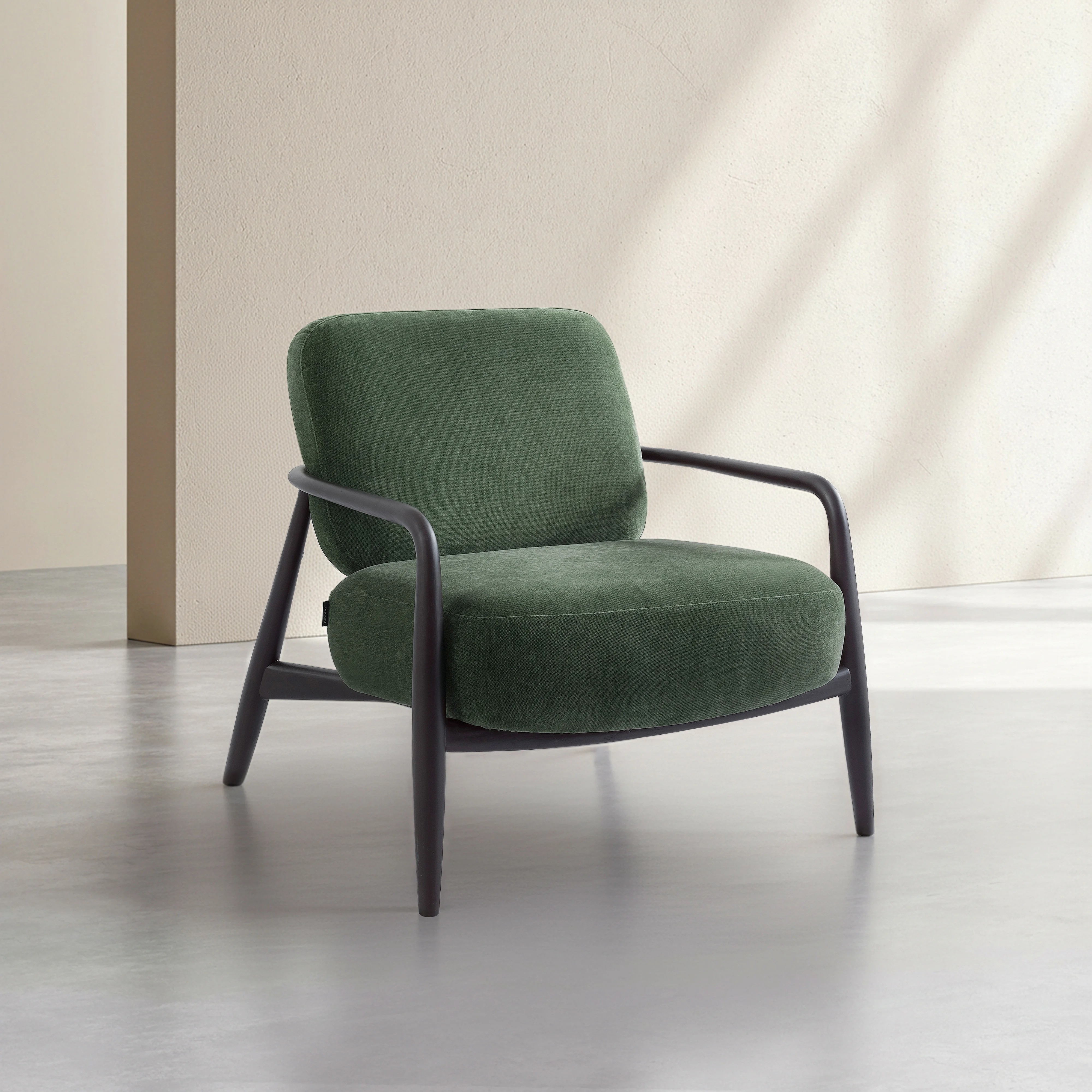 Velika verbindet einen besonders weichen Stoff mit einer Massivholzstruktur. Ein eleganter und wohnlicher Sessel, der zeitgemäßen Stil mit raffiniertem Komfort vereint.