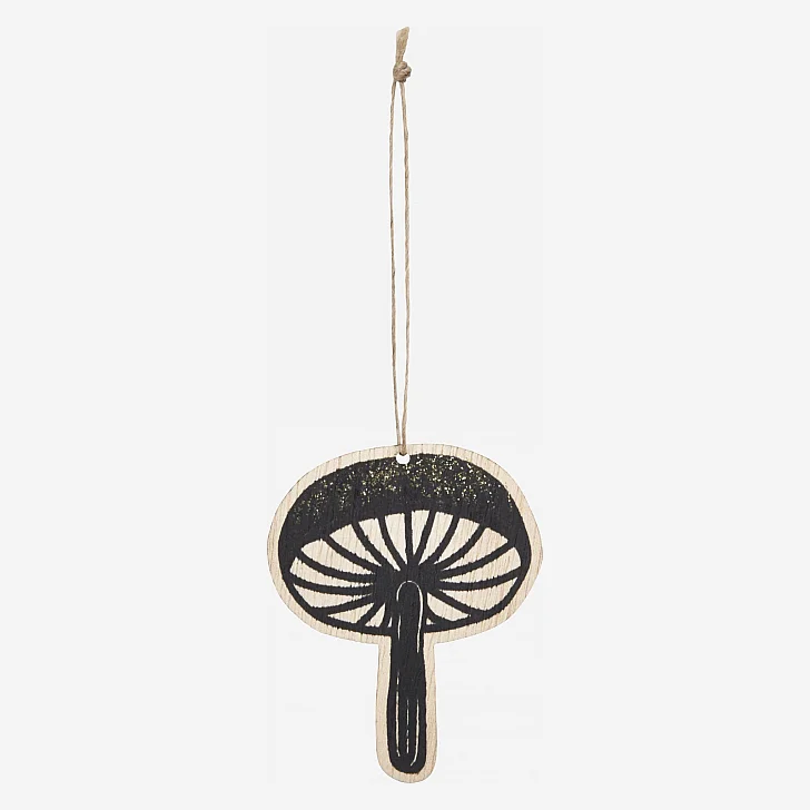Weihnachtsdekoration - 2er-Set Pilze aus Holz mit schwarzen Stielen zum Aufhängen