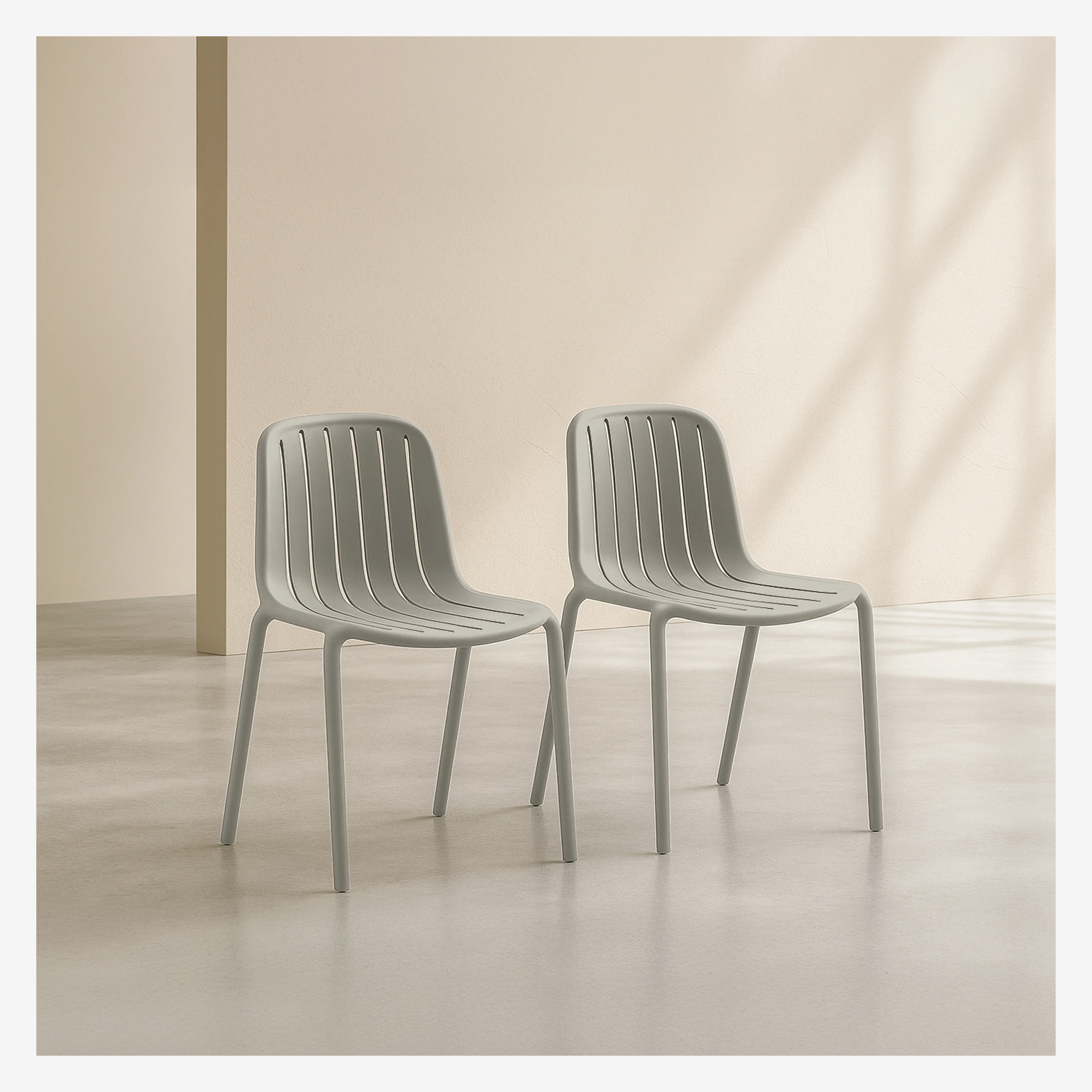 Gartenstuhl 2er-Set - Polypropylen - Tontopf-Grau