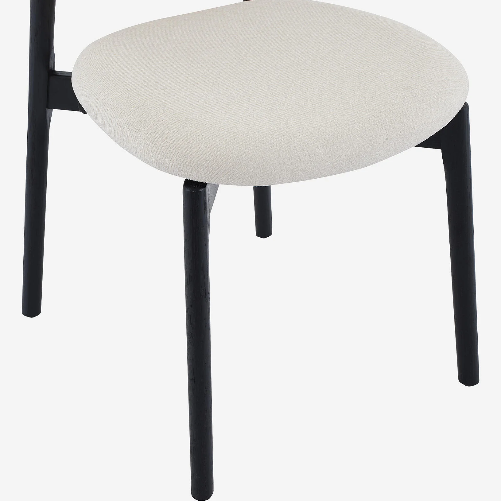 Azma kombiniert ein schwarz-grafisches Gestell mit einer großzügig gepolsterten hellen Sitzfläche für eine kontrastreiche und komfortable Silhouette. Ein Duo im zeitgenössischen Stil, perfekt, um den Essbereich elegant zu strukturieren.