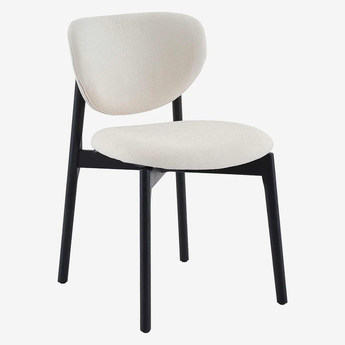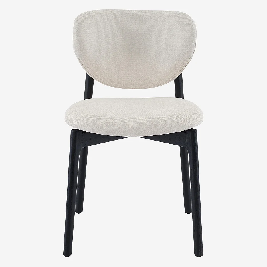 Set aus 2 Stühlen aus strukturiertem Stoff und massiver schwarzer Eiche - Creme