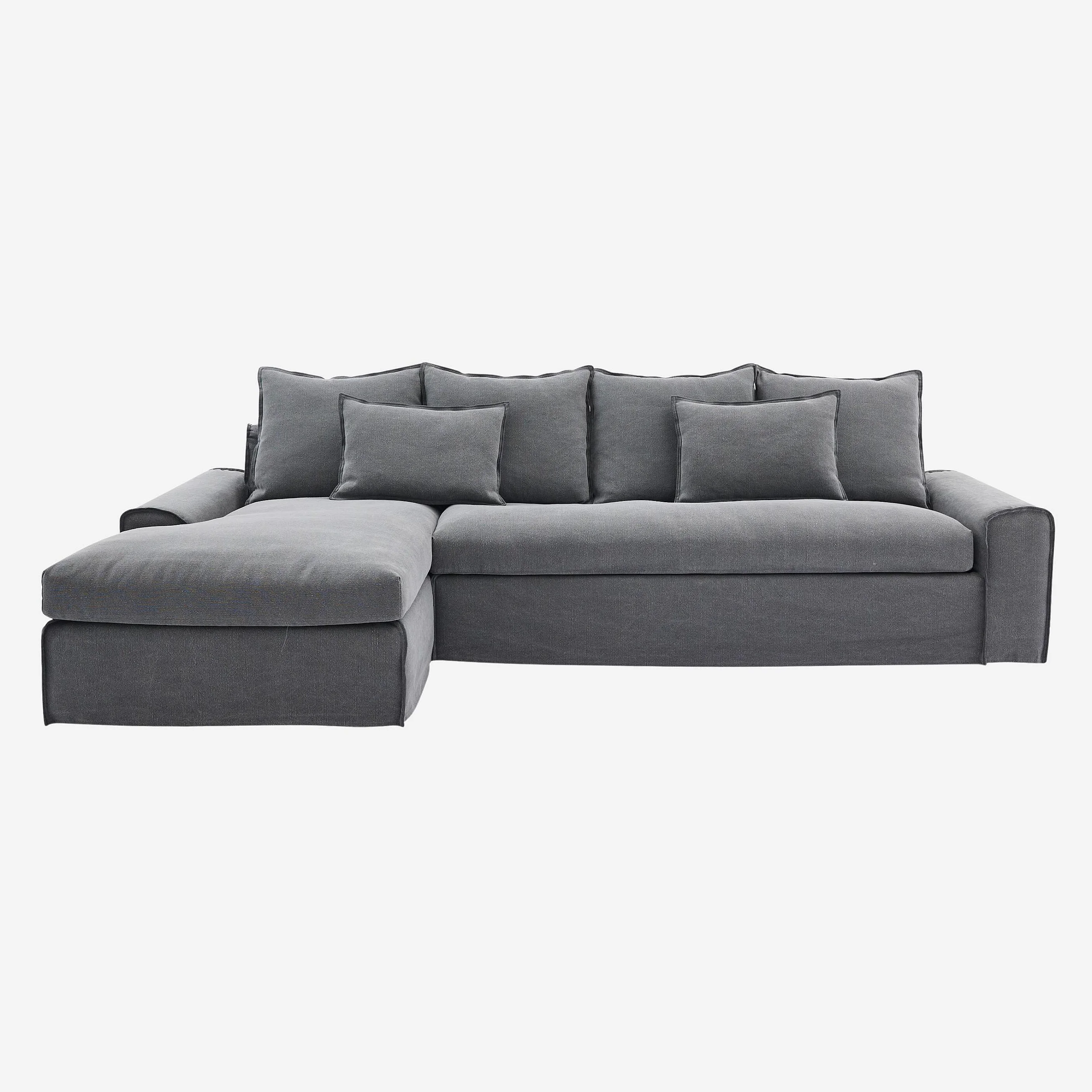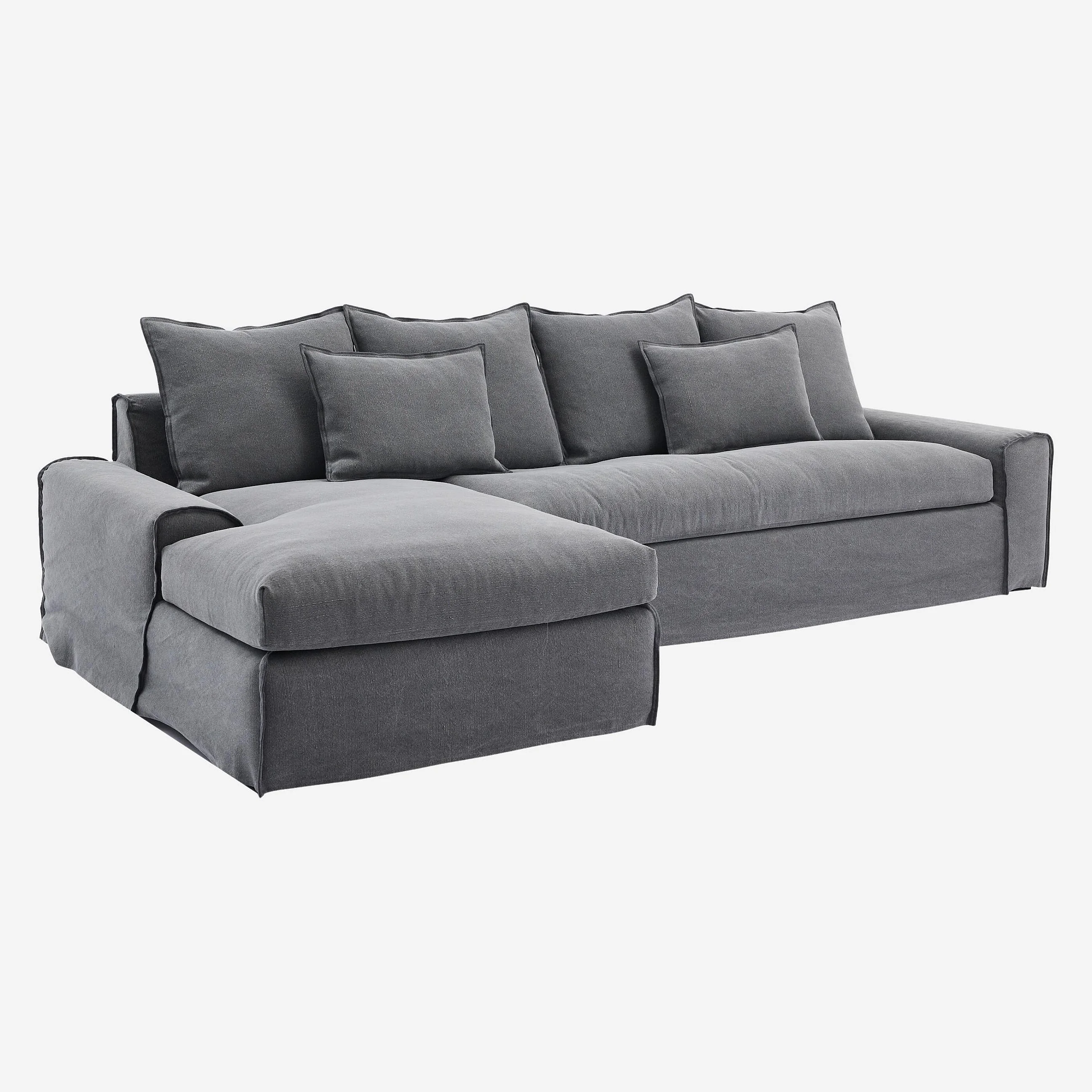 Ecksofa - Ecke links - mit abnehmbarem Bezug aus Baumwolle und Leinen - mit Federfüllung - Schiefergrau