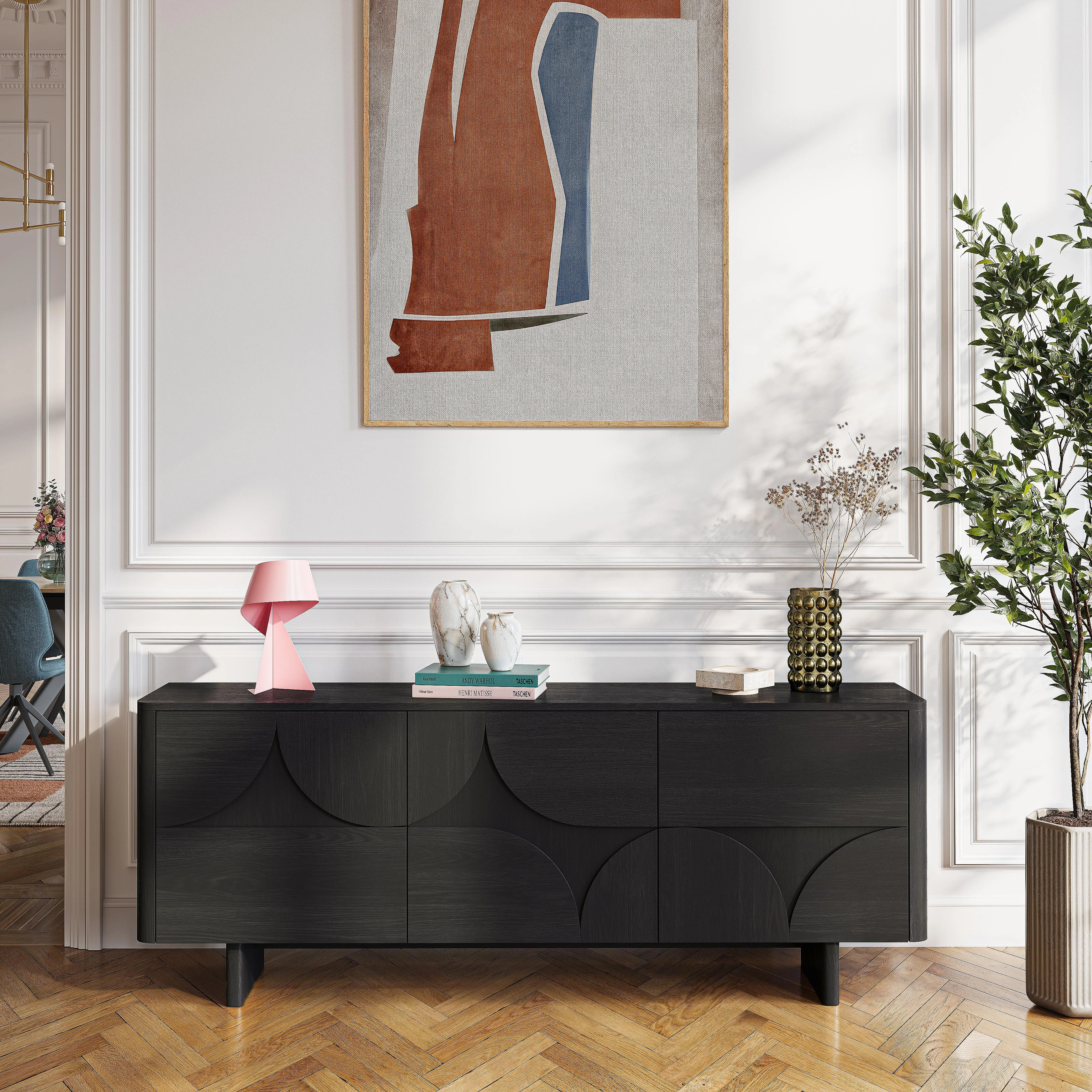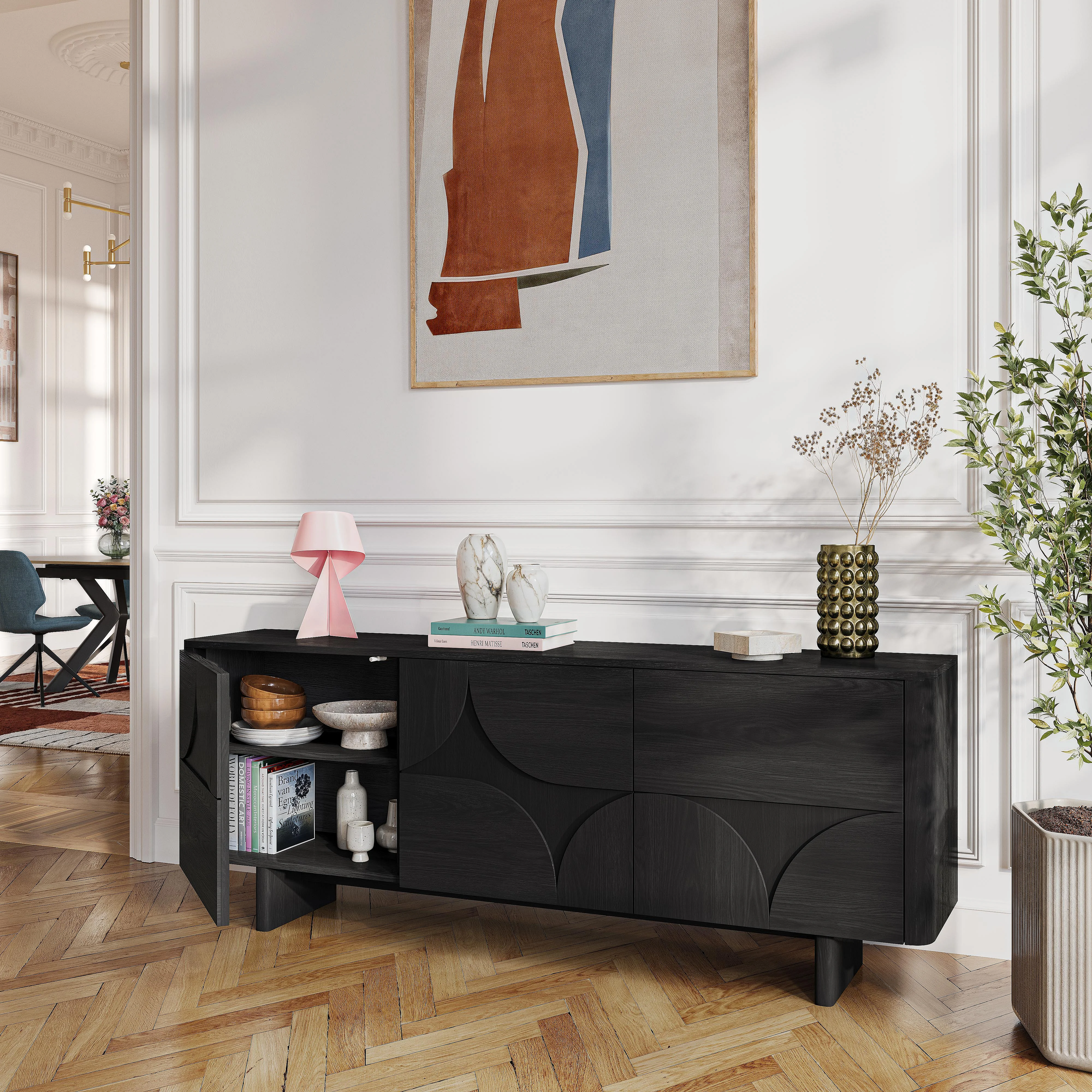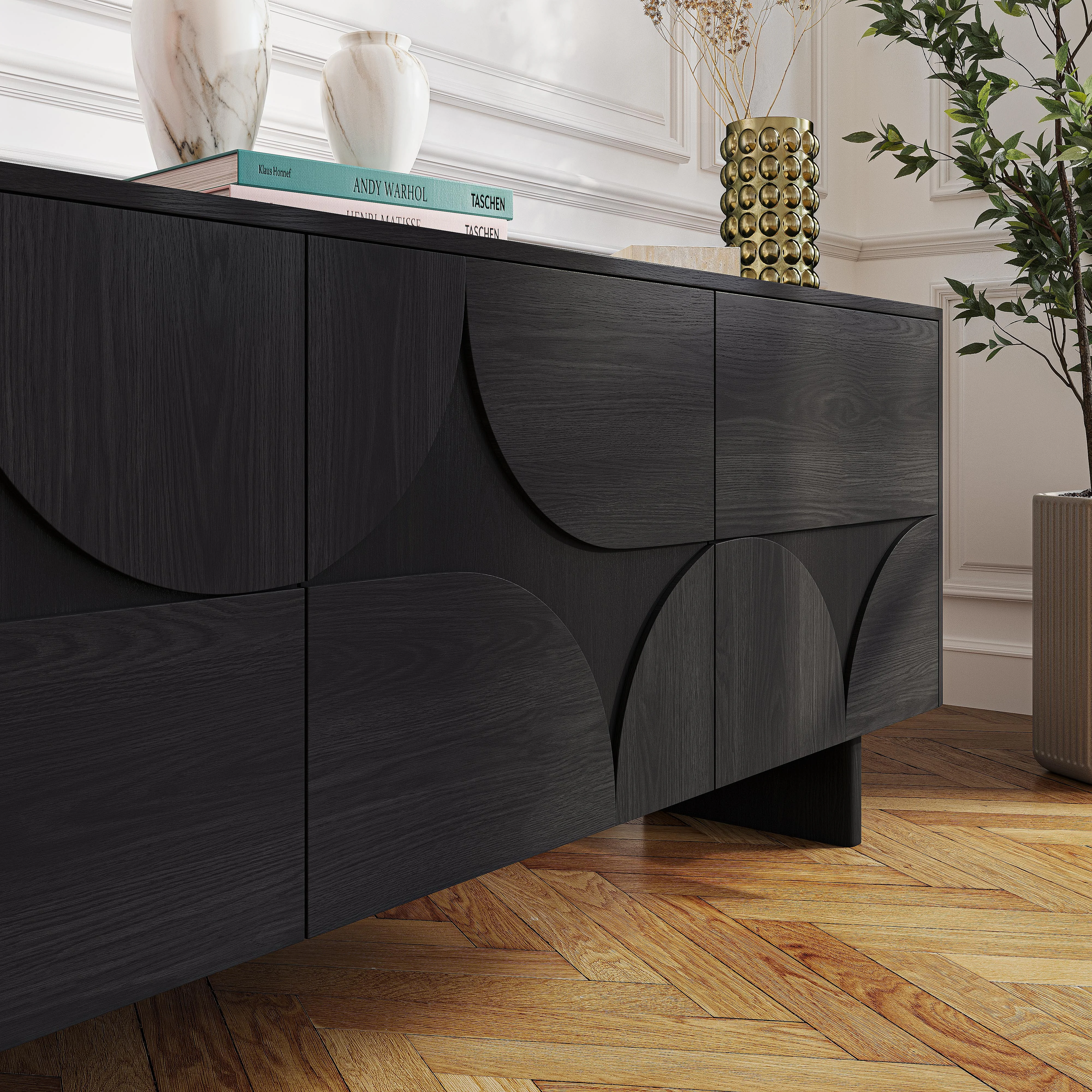 Niedriges Sideboard mit 3 Türen aus Esche - Schwarz - Design by Hélèna Pille
