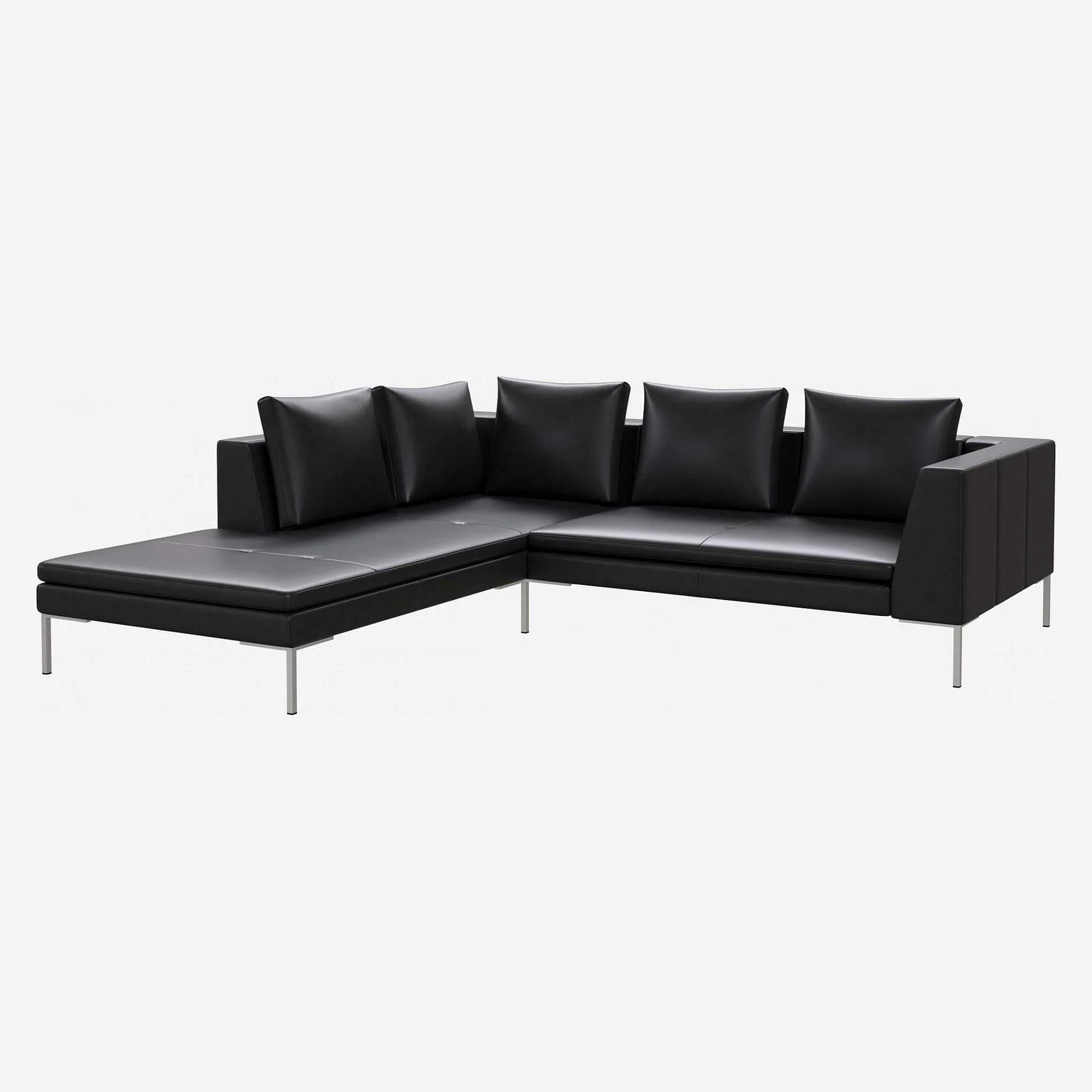 2-Sitzer-Sofa mit Chaiselongue links aus Savoy-Leder - Obsidianschwarz