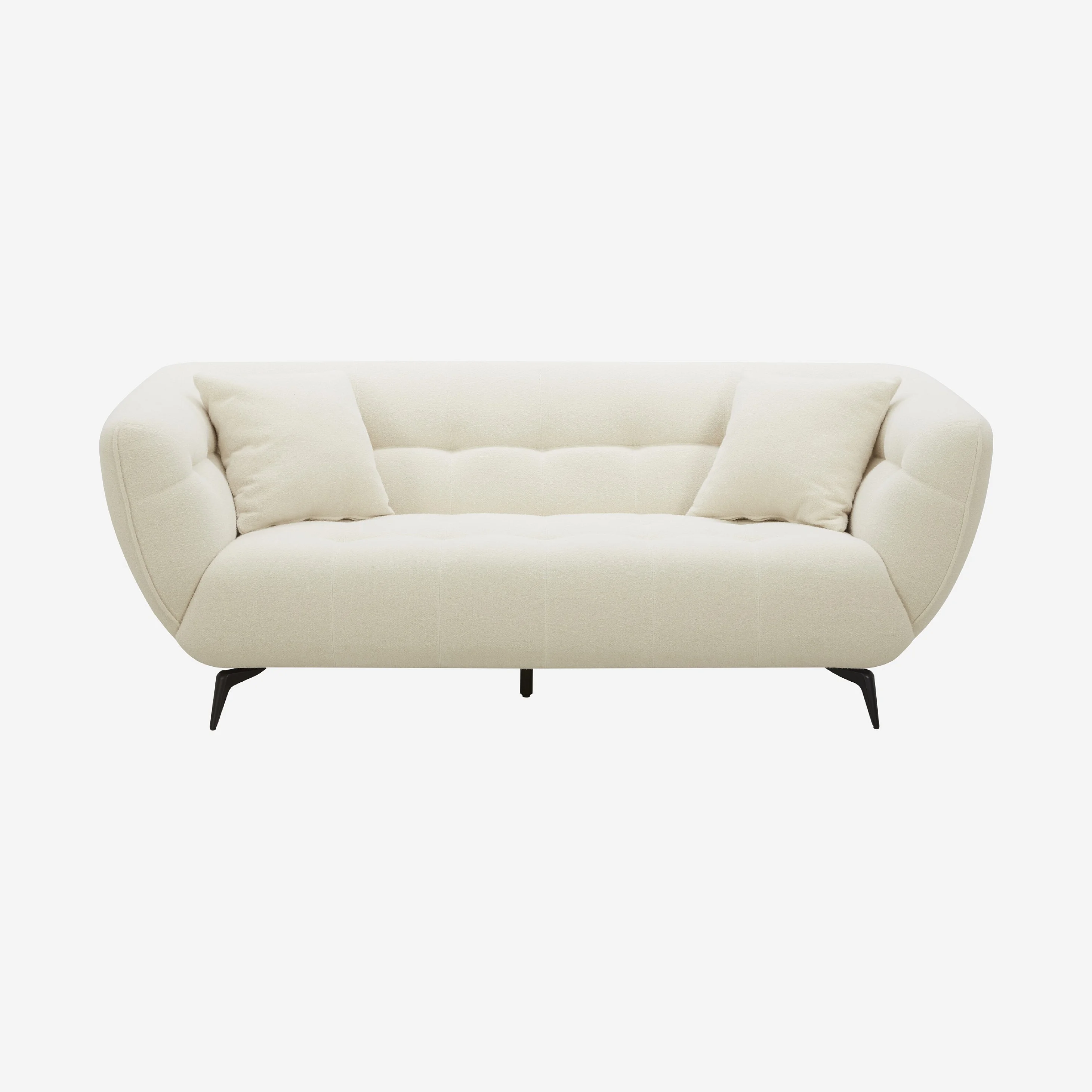 Das Nashi Sofa verbindet eine großzügige Sitzfläche mit einer geschwungenen, gesteppten Silhouette für umhüllenden Komfort. Sein skulpturales Design ruht auf feinen Beinen, die dem Ganzen mit Eleganz Leichtigkeit verleihen.