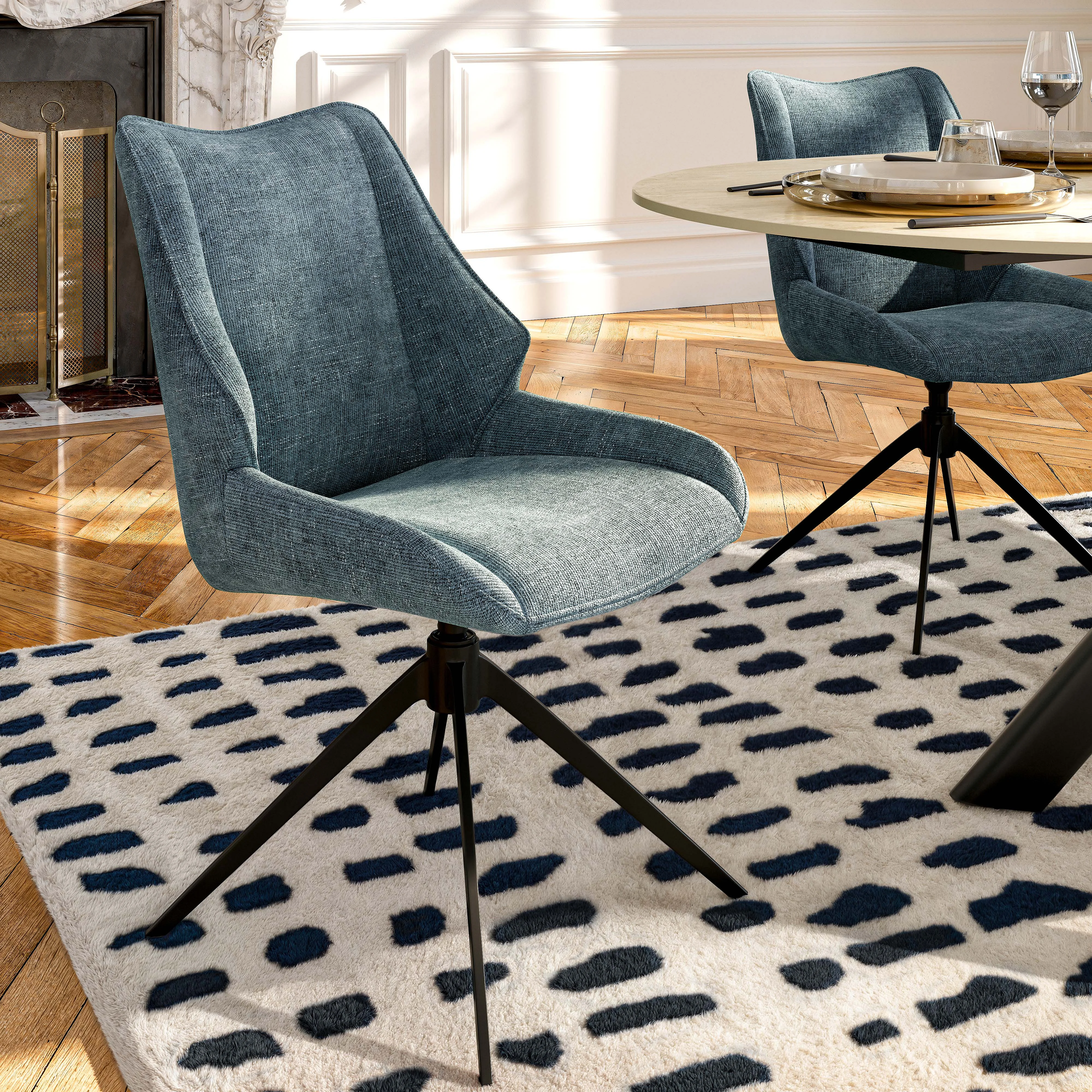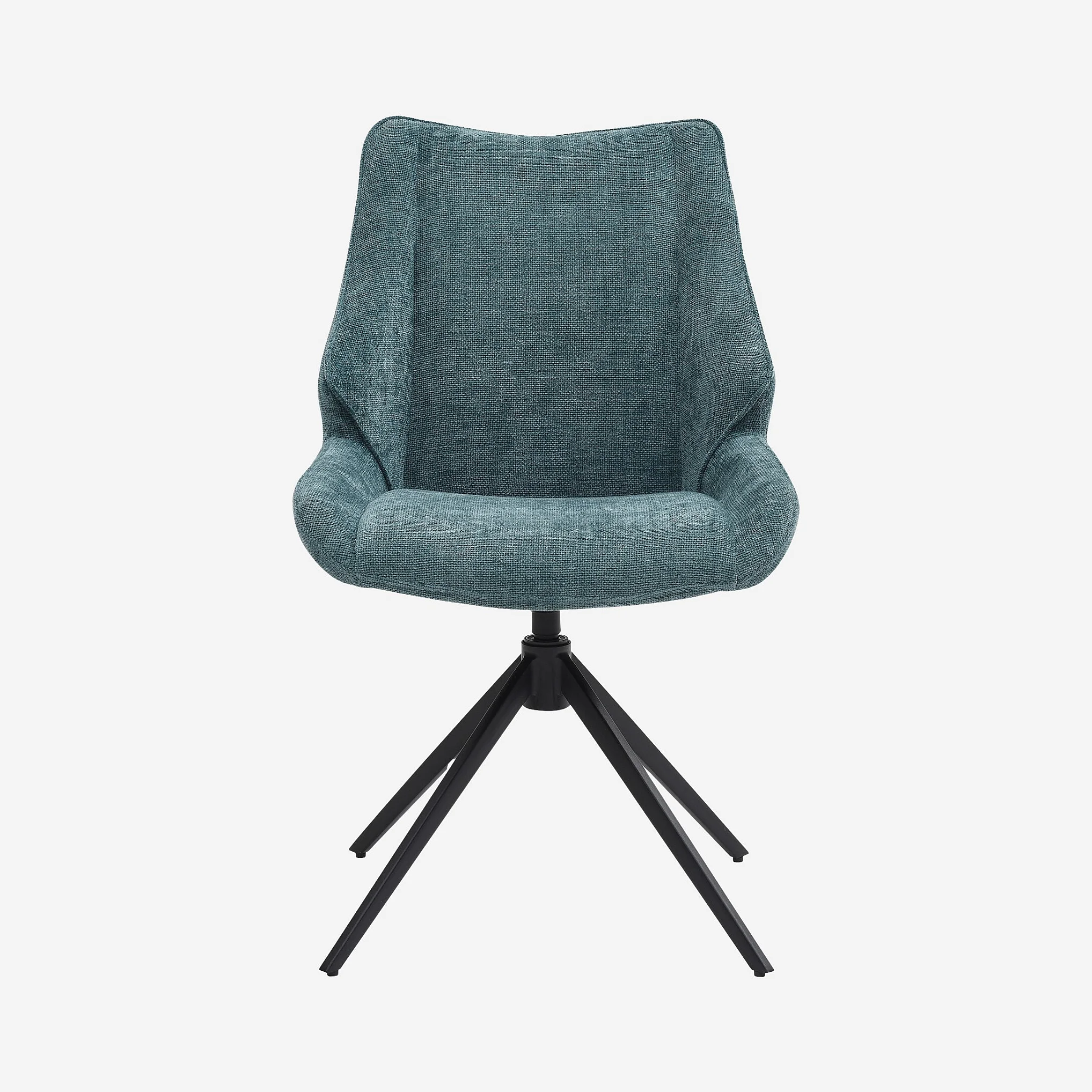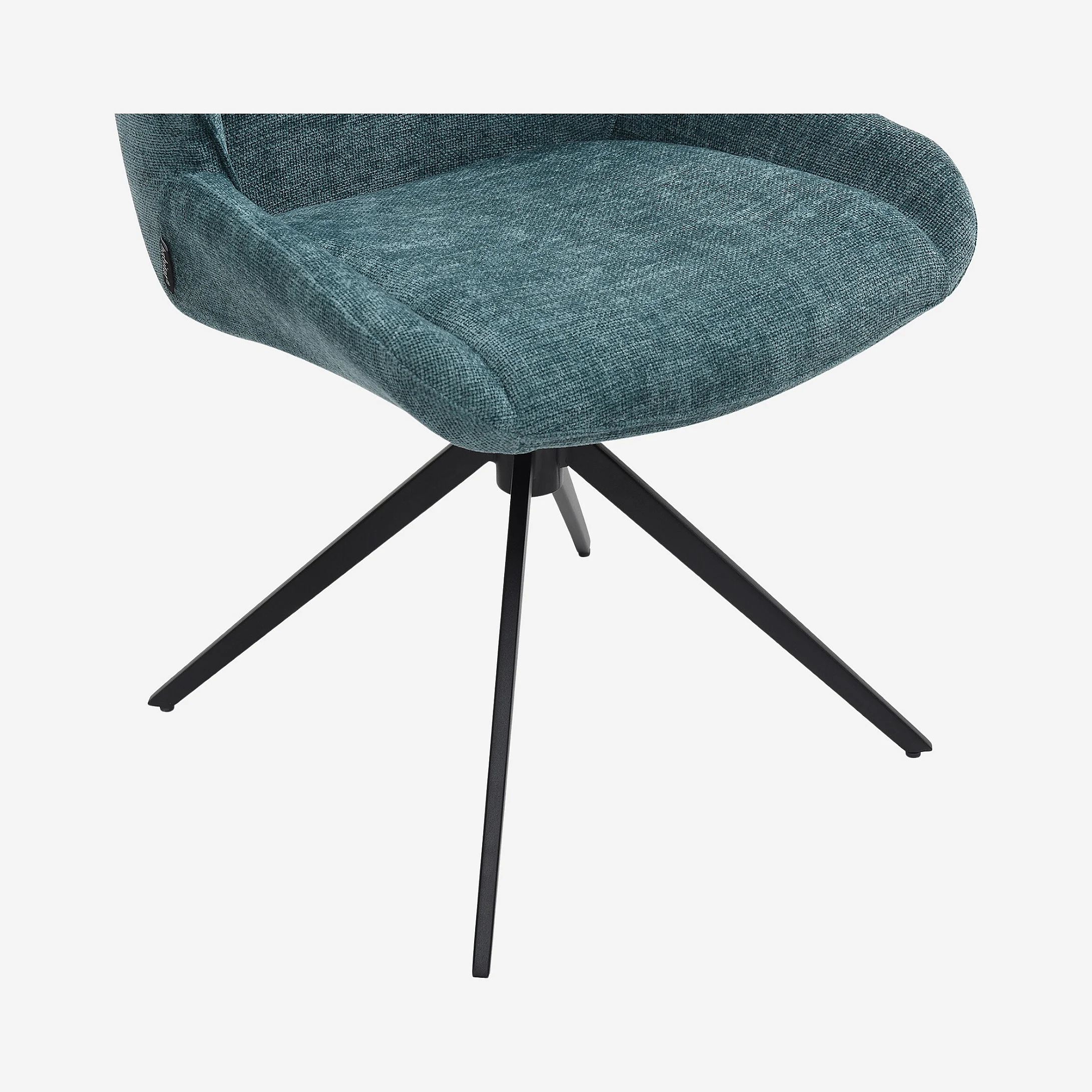 Set aus 2 drehbaren Stühlen aus Chenille-Stoff und schwarzem Metall - Entenblau