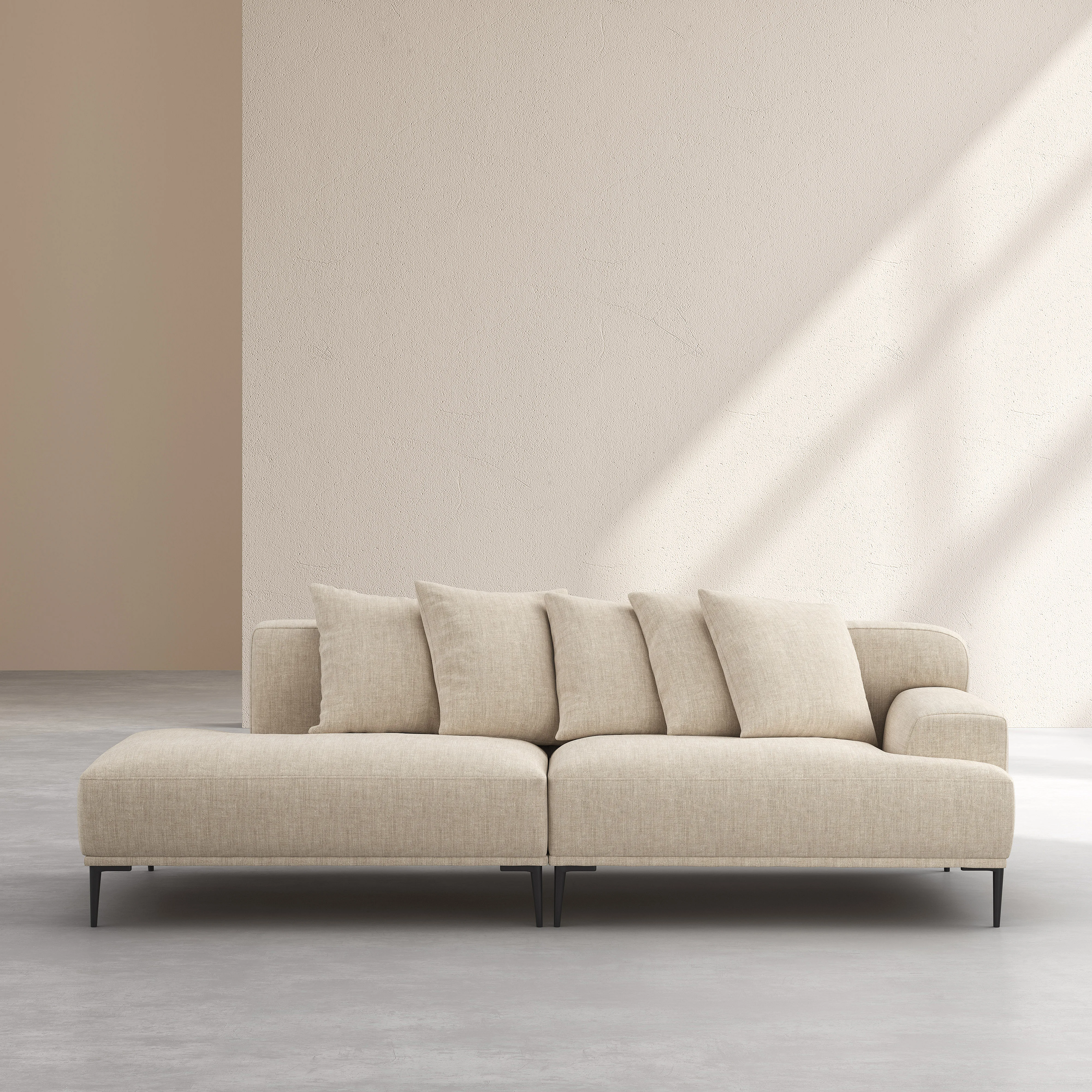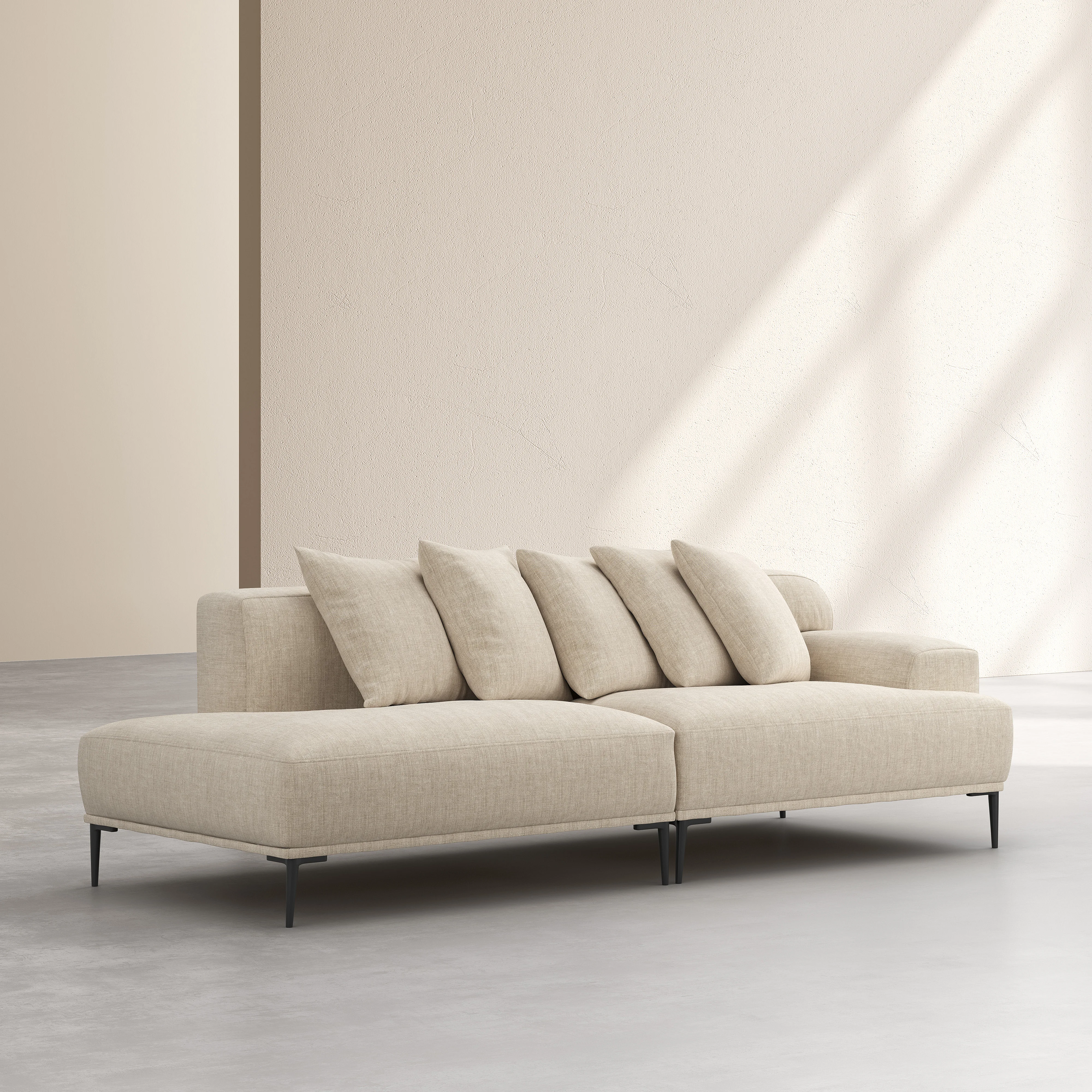 Recamiere rechts - aus Baumwolle und Leinen - mit Federfüllung - Beige