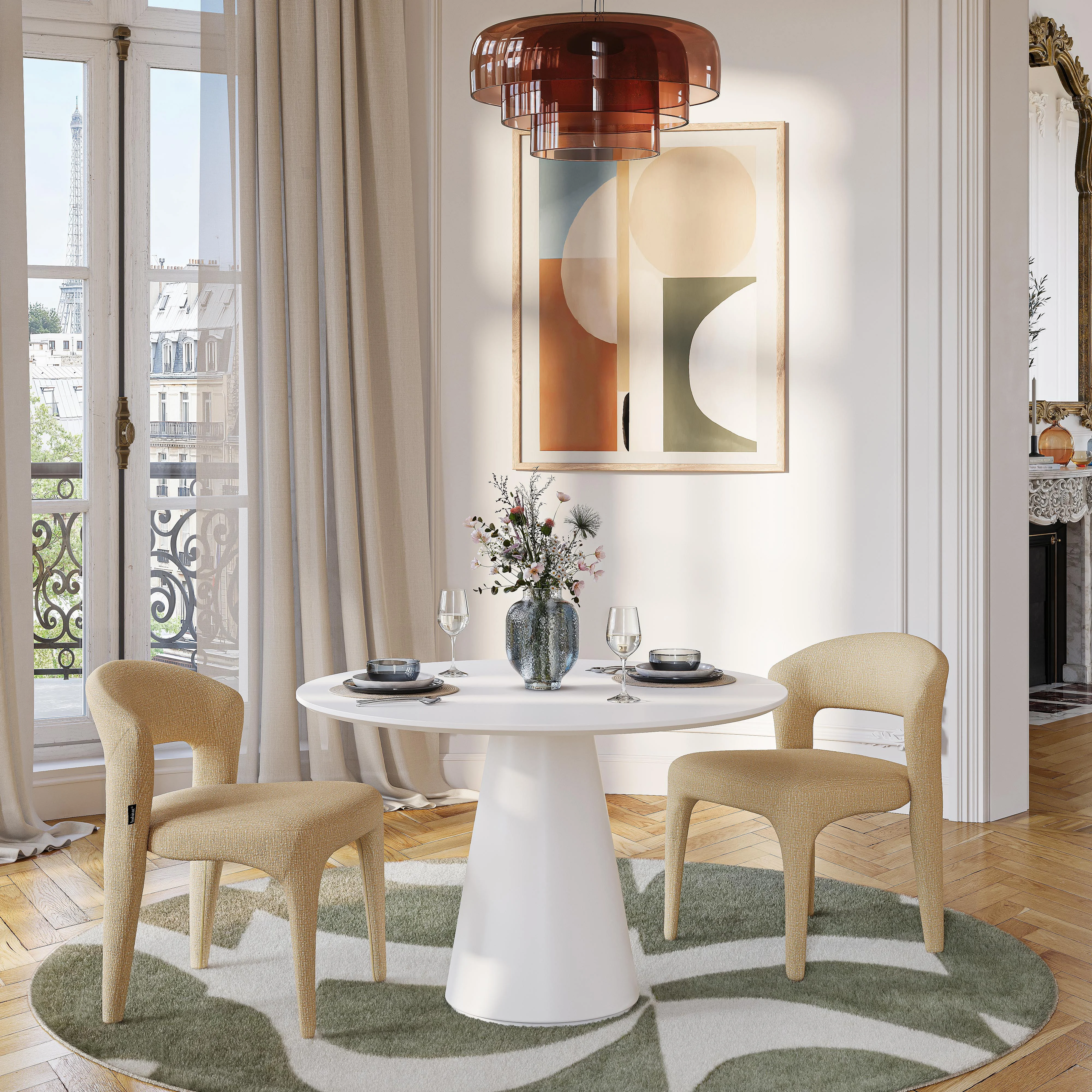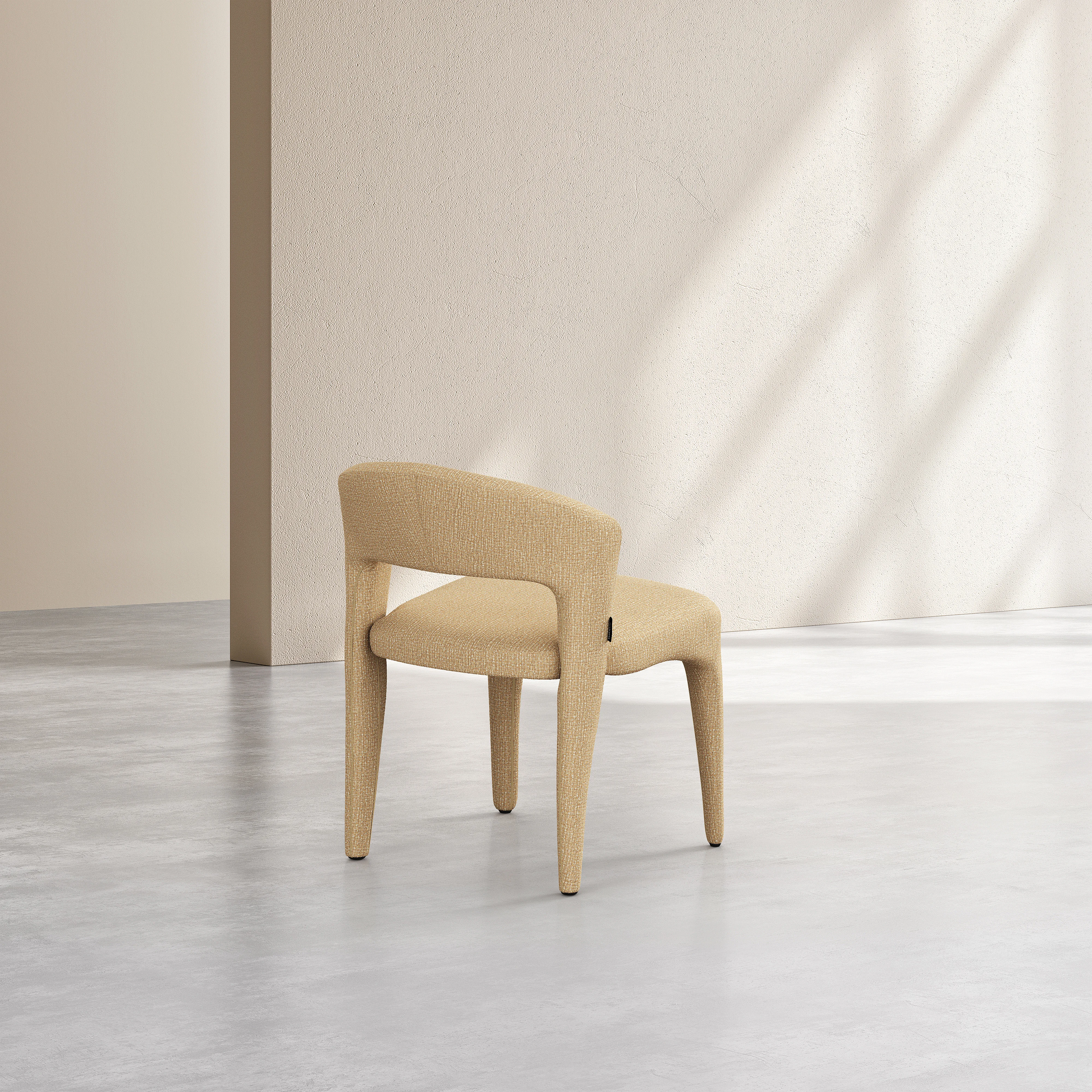 Rimaka überzeugt mit seinem melierten gelben strukturierten Stoff und seinen klaren Linien, perfekt für eine zeitgenössische Atmosphäre. Ein komfortables und unauffälliges Duo, das sich in allen Räumen anpasst.