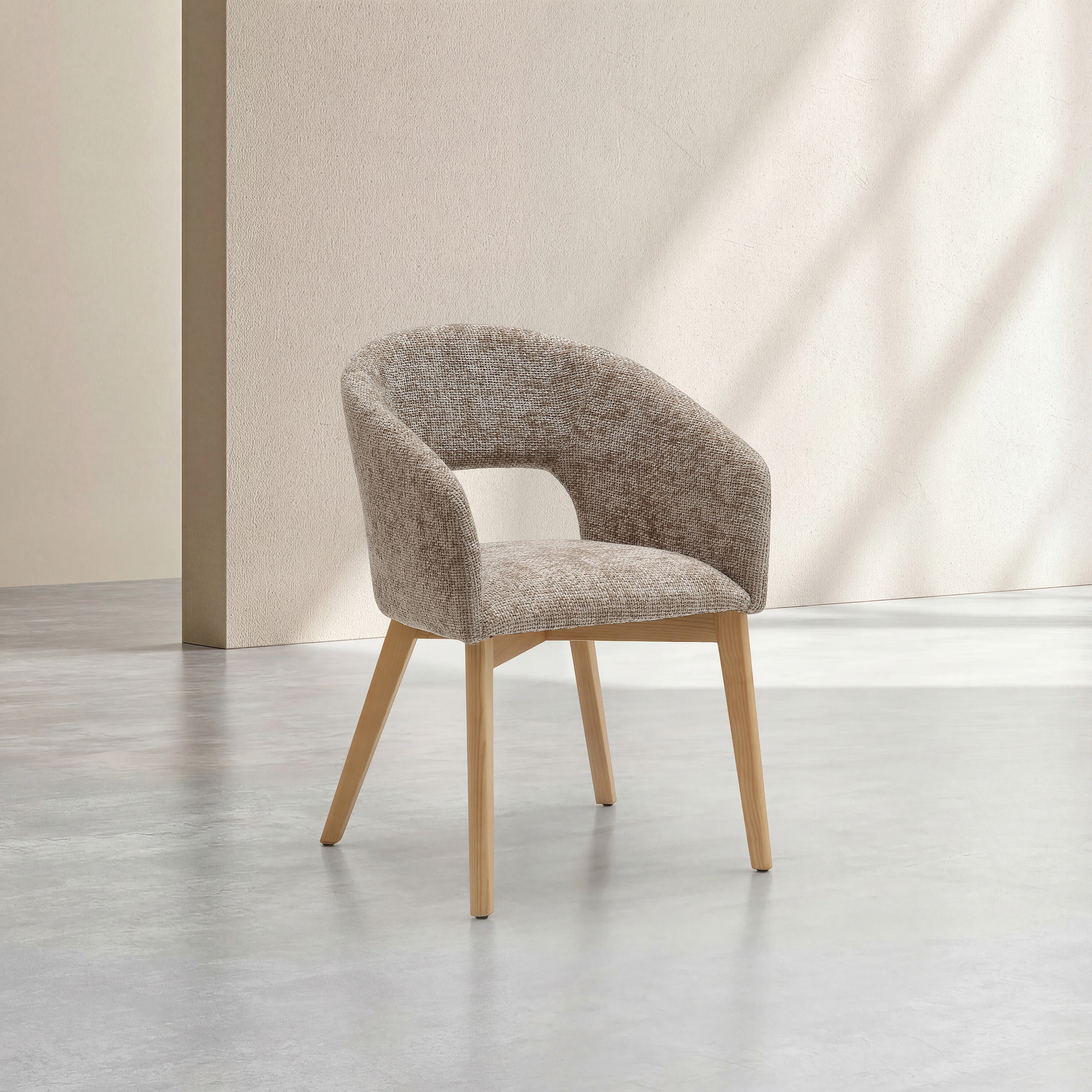 Stuhl 2er-Set - Chenille-Stoff und Massivholz - mit Armlehnen - Beige und Eiche