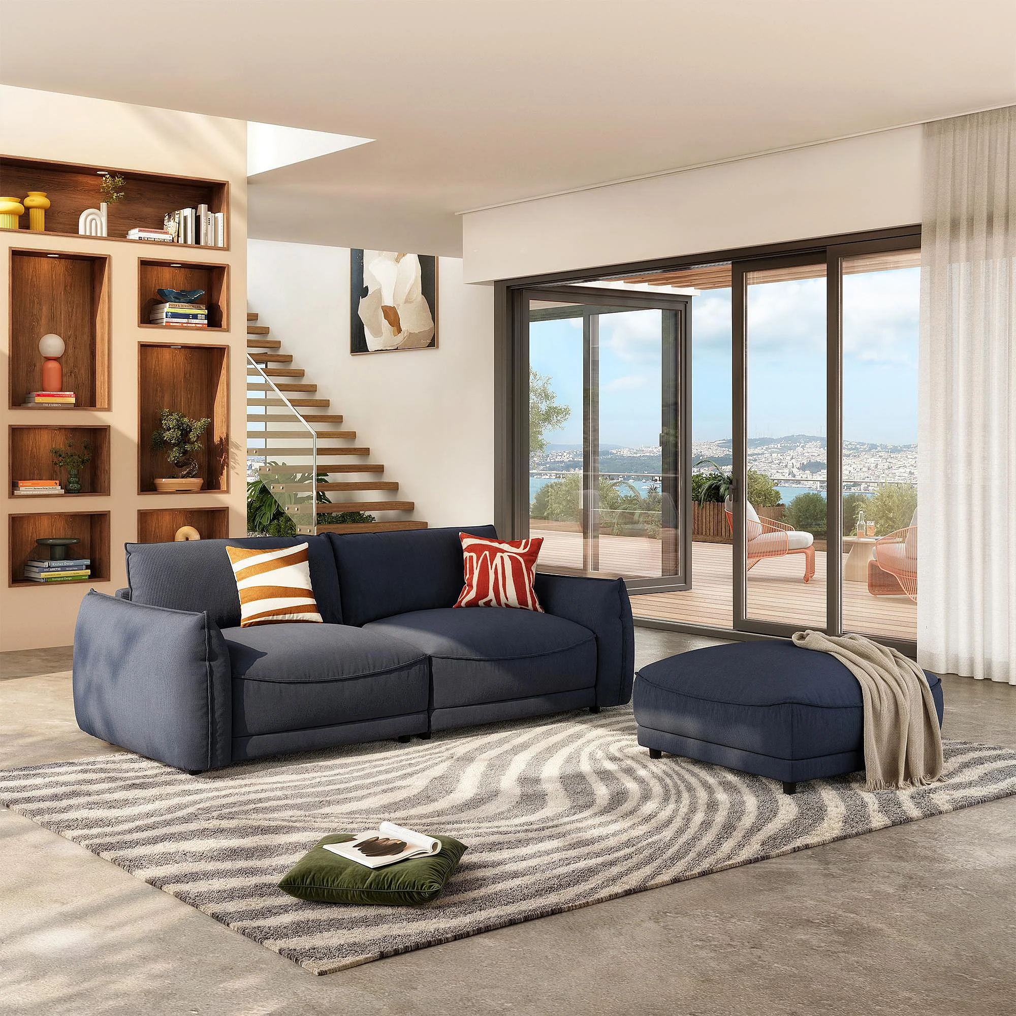 Vesta vervollständigt den Raum mit einer weichen Sitzfläche, einer gerippten Verarbeitung und einem großzügigen Format. Eine elegante Fußstütze, konzipiert um Momente der Entspannung stilvoll zu begleiten.
