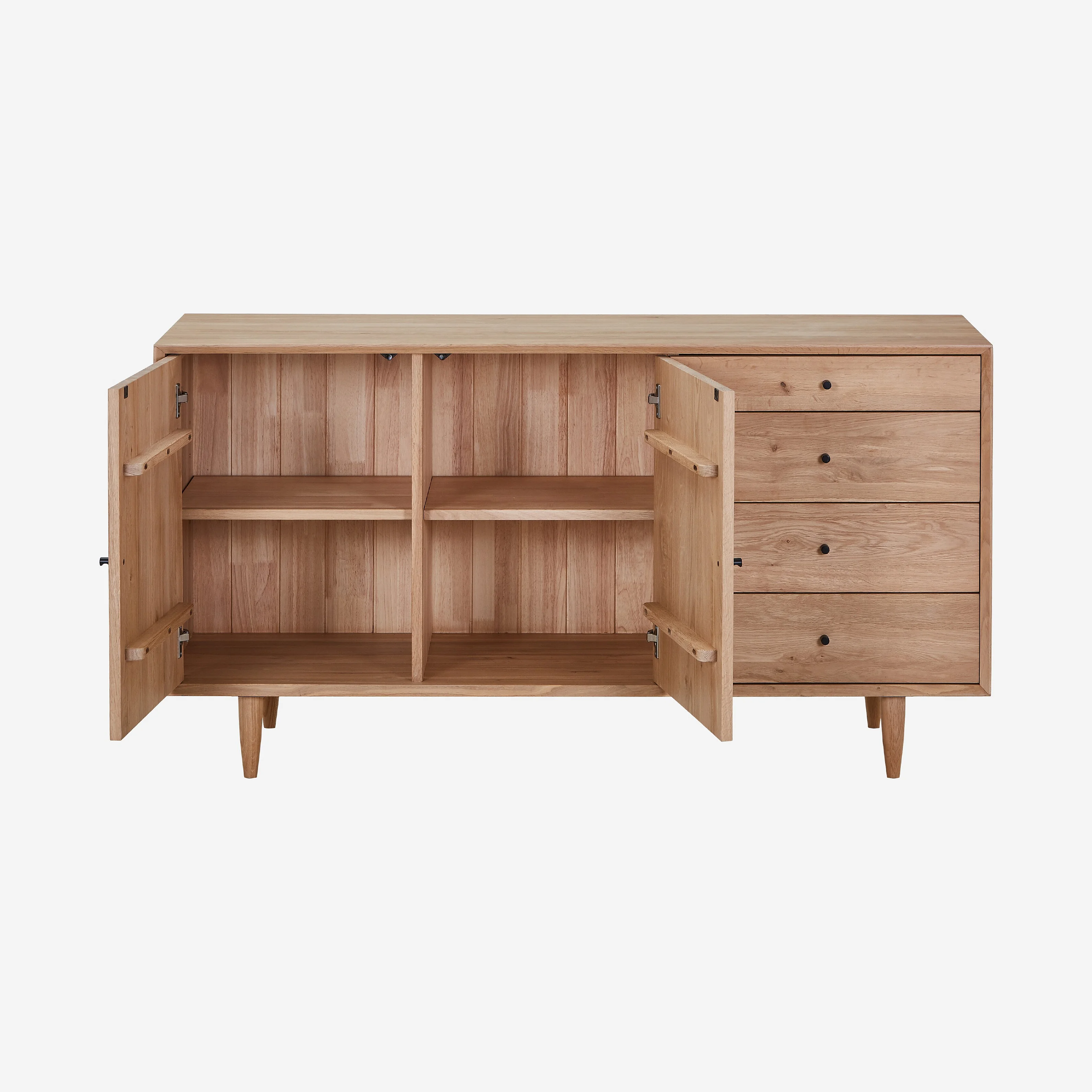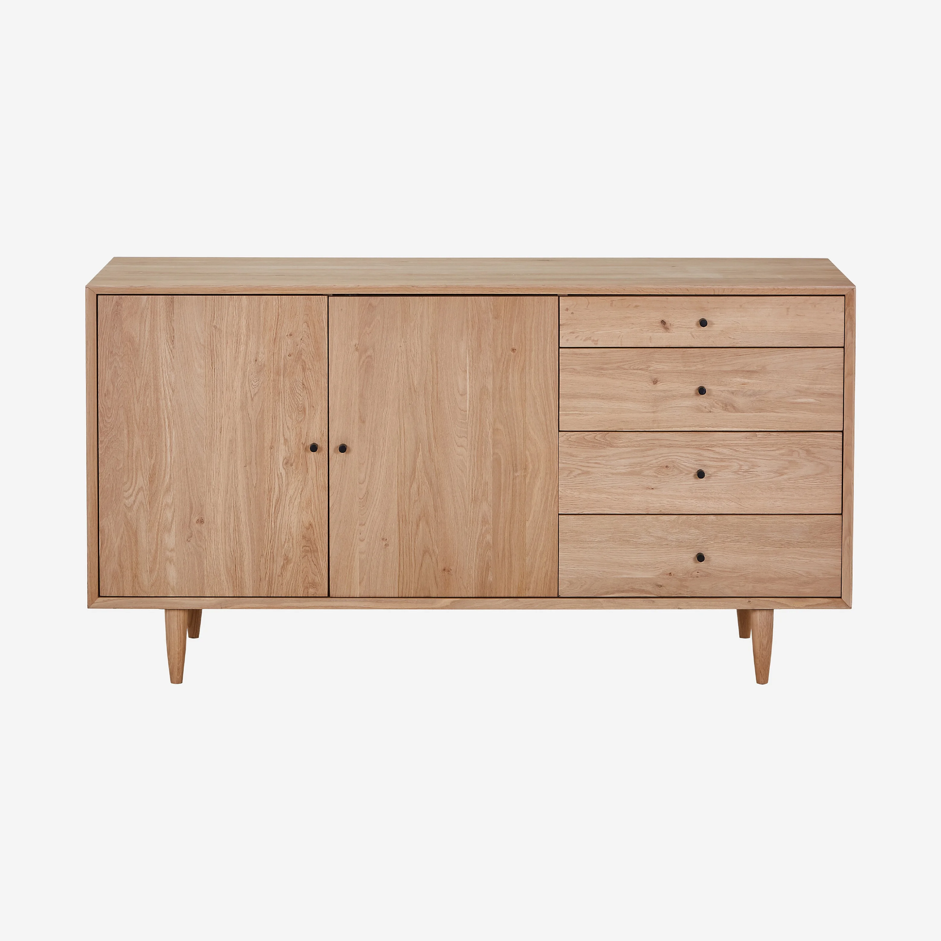 Sideboard mit 2 Türen und 4 Schubladen aus massiver Eiche - Natur