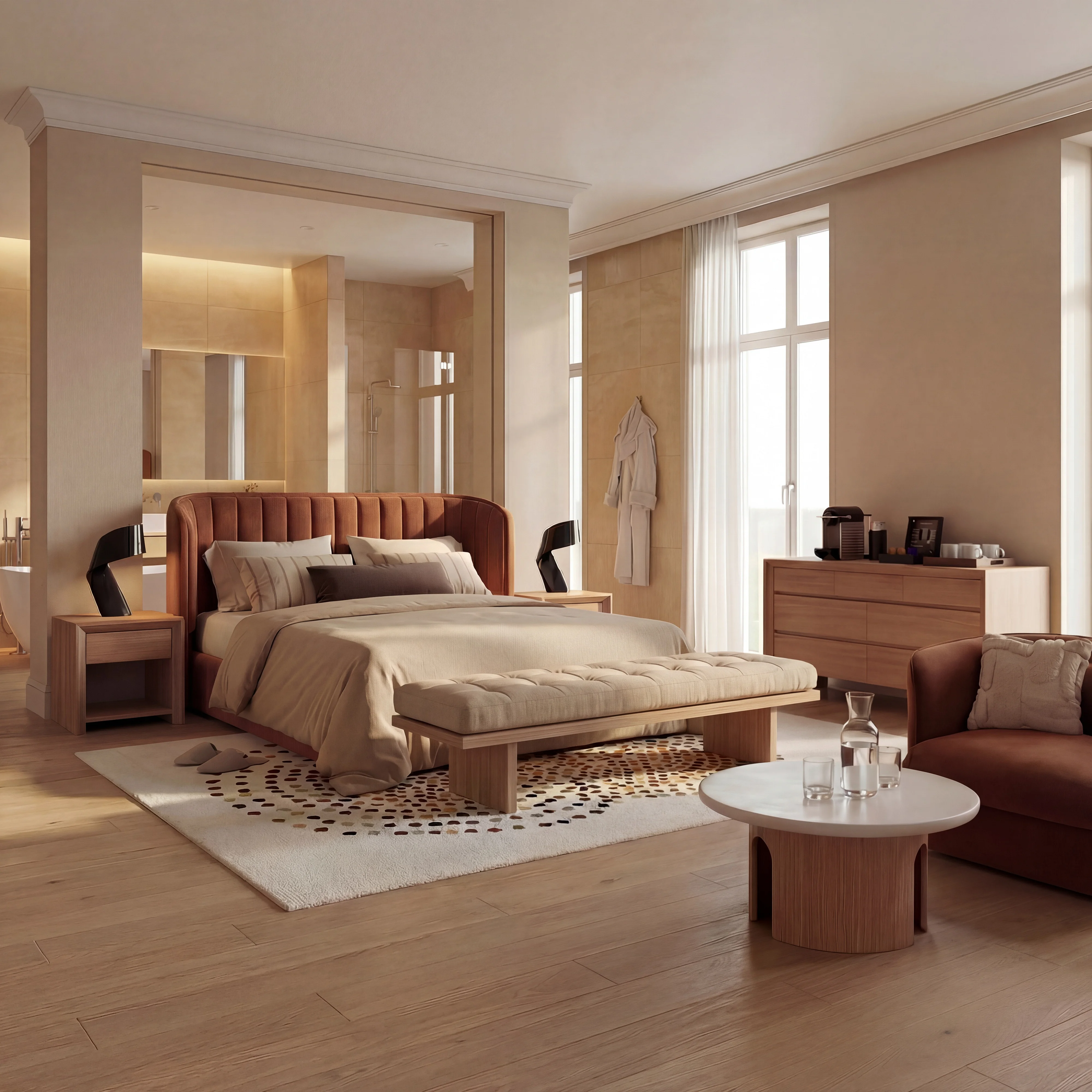 Idylle interpretiert ein ikonisches Muster mit einer neuen, von Floriane Jacques entworfenen lebendigen Farbpalette neu. Die farbenfrohen Punkte, inspiriert von einem Kaleidoskop, hauchen dem Raum Licht und Leichtigkeit ein.