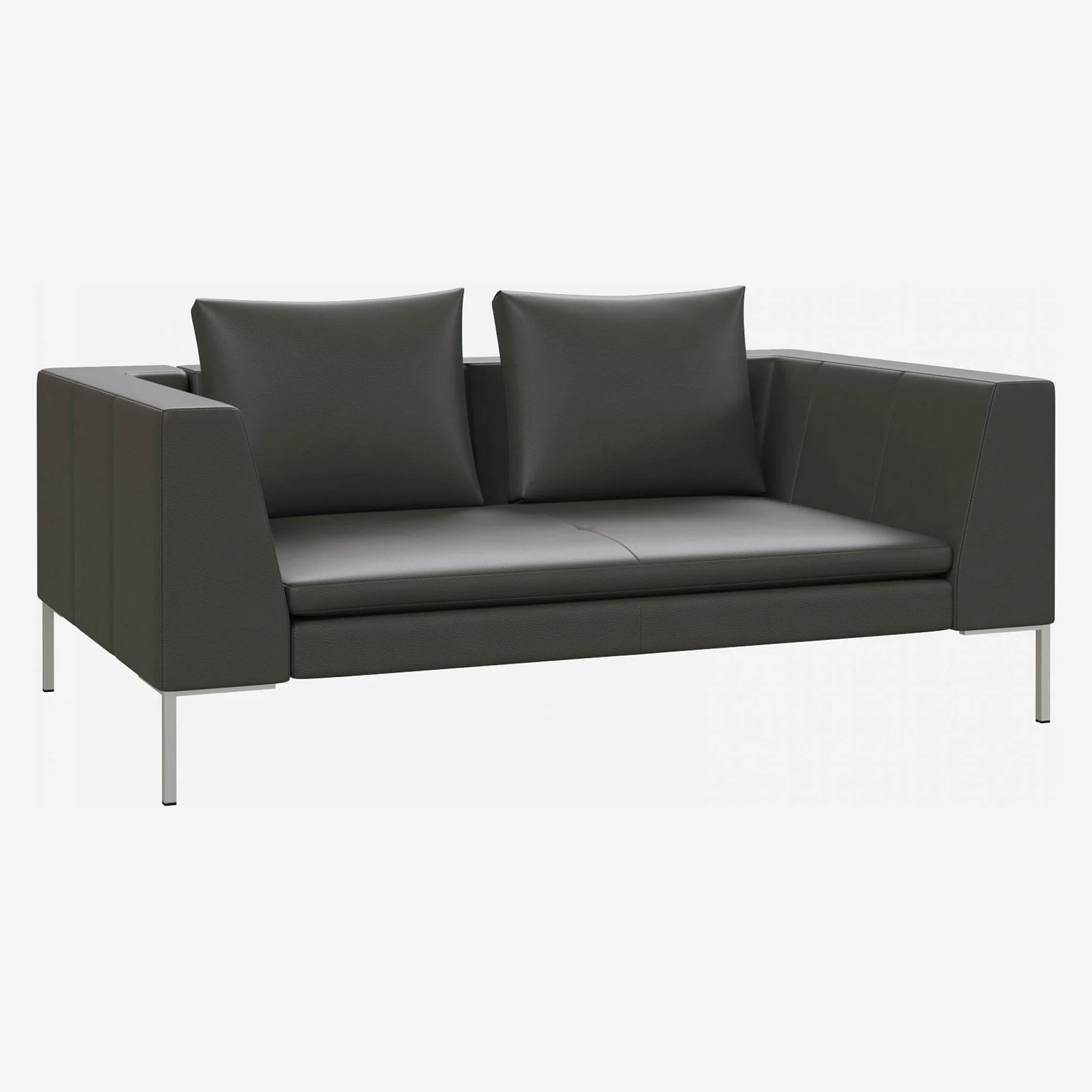 Gradlinige Sitzfläche, glattes Leder und feine Beine bilden ein 2-Sitzer-Sofa mit elegantem, minimalistischem Stil. Ein zeitloses Möbelstück, das dem Wohnzimmer Leichtigkeit und Raffinesse verleiht.