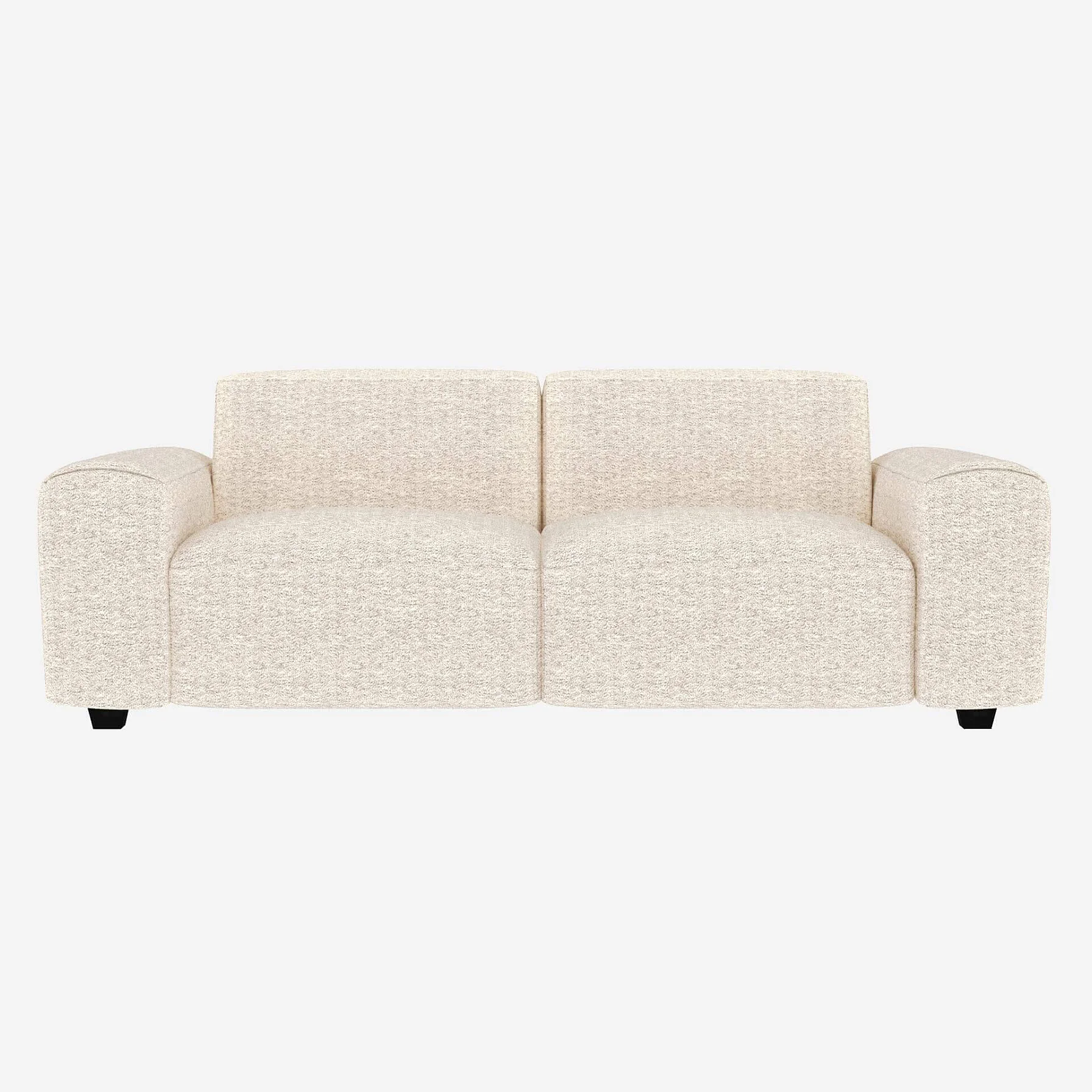 Geschwungene Formen, sorgfältige Verarbeitung und eine weiche Sitzfläche definieren dieses elegante und einladende 3-Sitzer-Sofa. Eine Kreation mit umhüllendem Komfort, perfekt um ein zeitgenössisches Wohnzimmer zu strukturieren.
