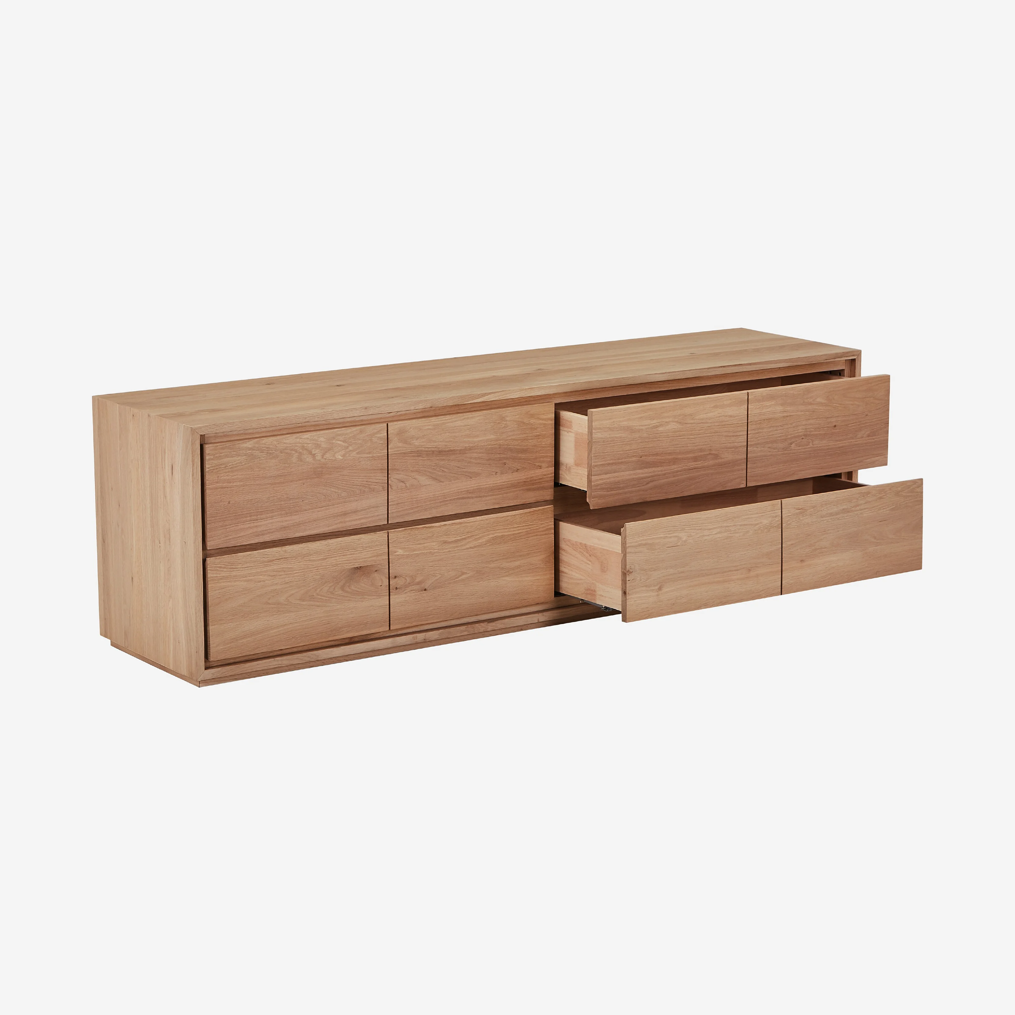 TV-Möbel mit 4 Schubladen aus massiver Eiche - Natur