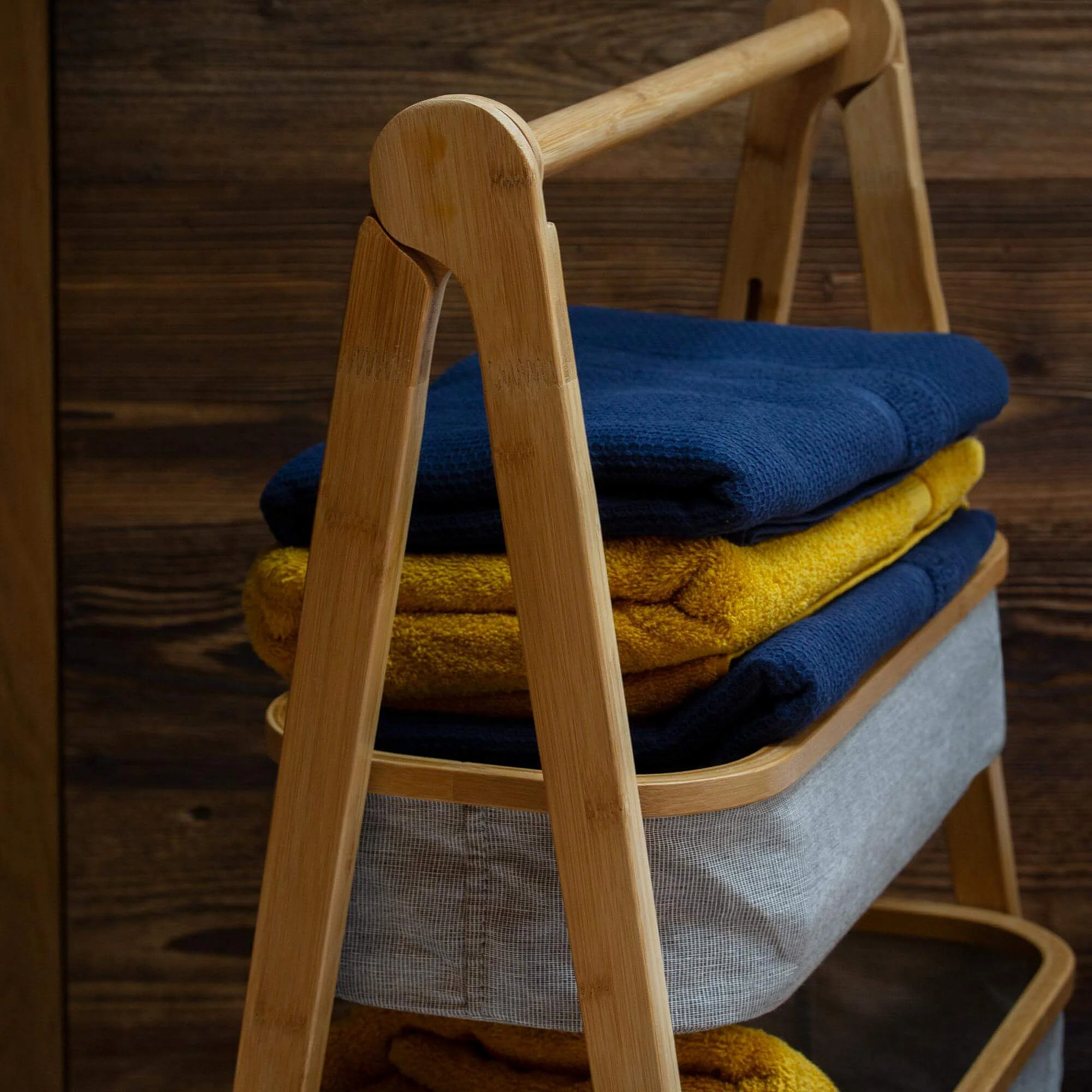 The Barnabé shelf combines bamboo and fabric for practical and elegant storage, perfect even in the bathroom.
