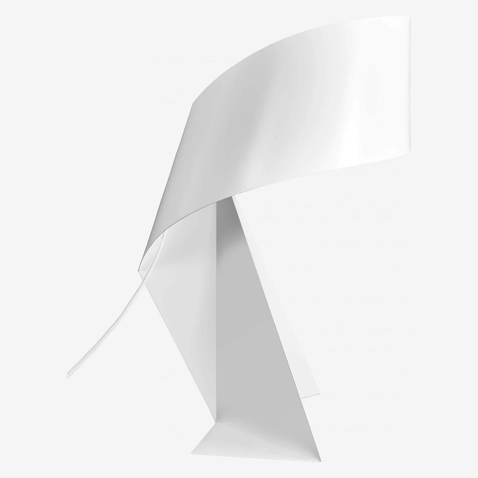Ribbon transforms a simple sheet of steel into a sculptural luminous object. An emblematic lamp with fluid design, made in France and acclaimed for its boldness.