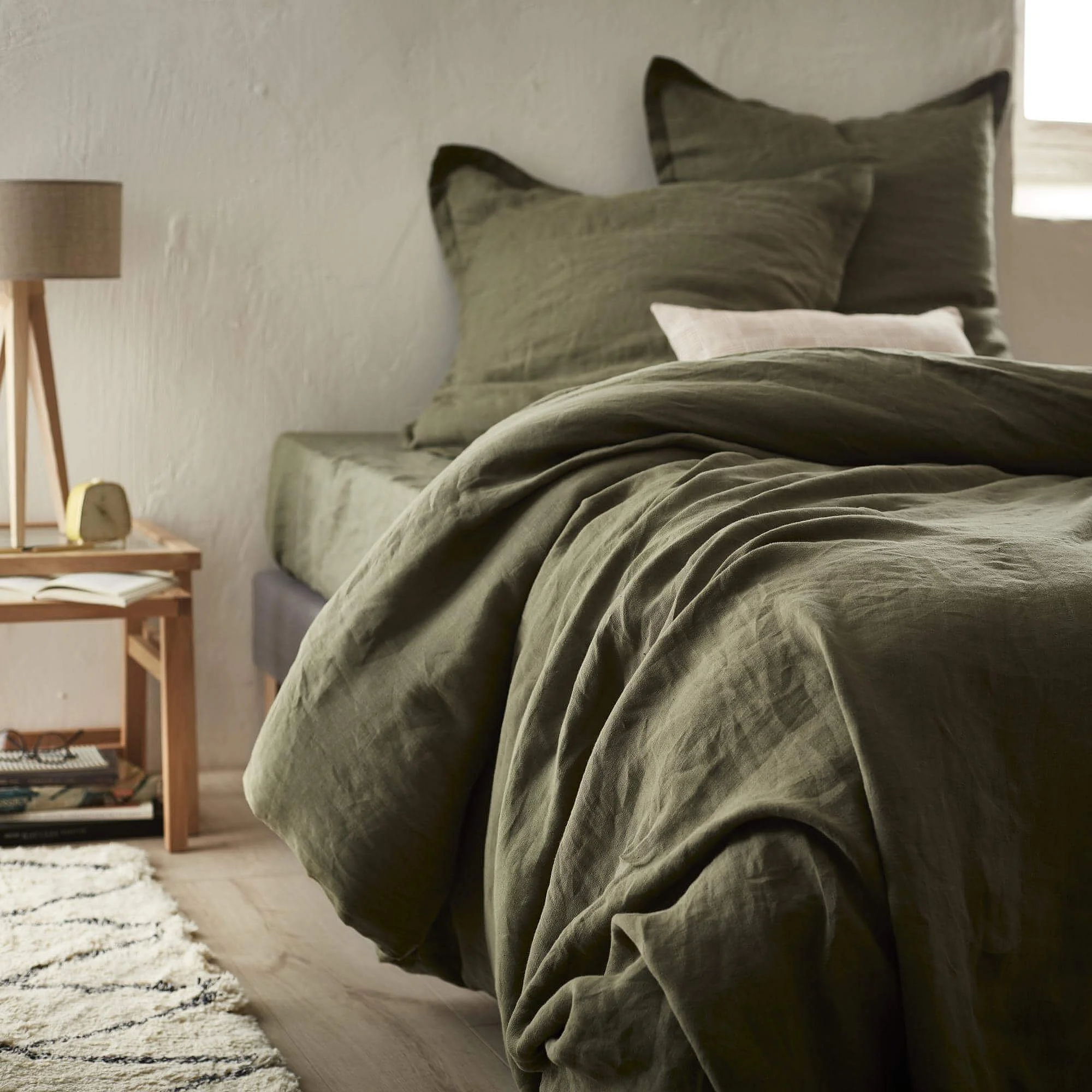 Linen fitted sheet - 140 x 200 cm - Khaki