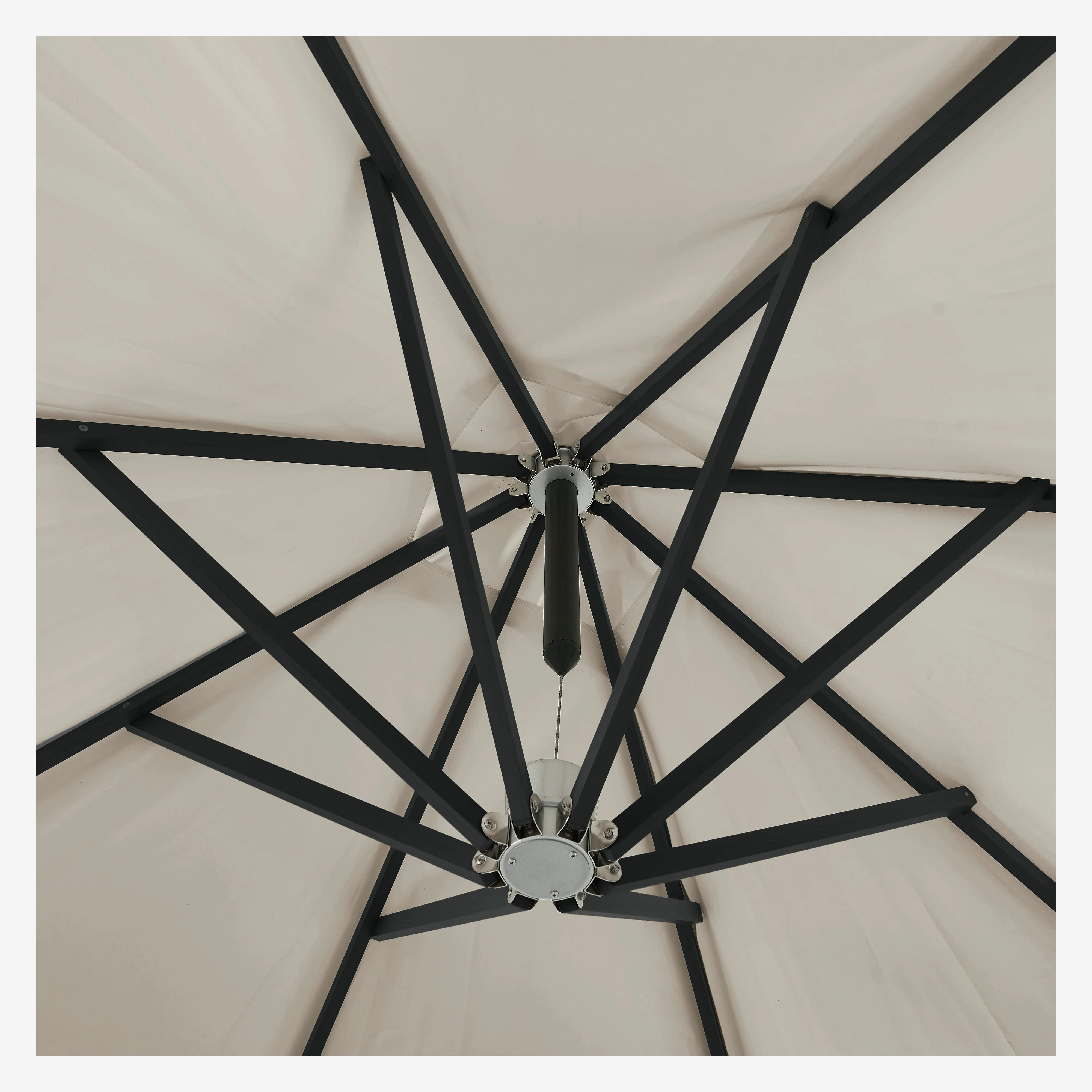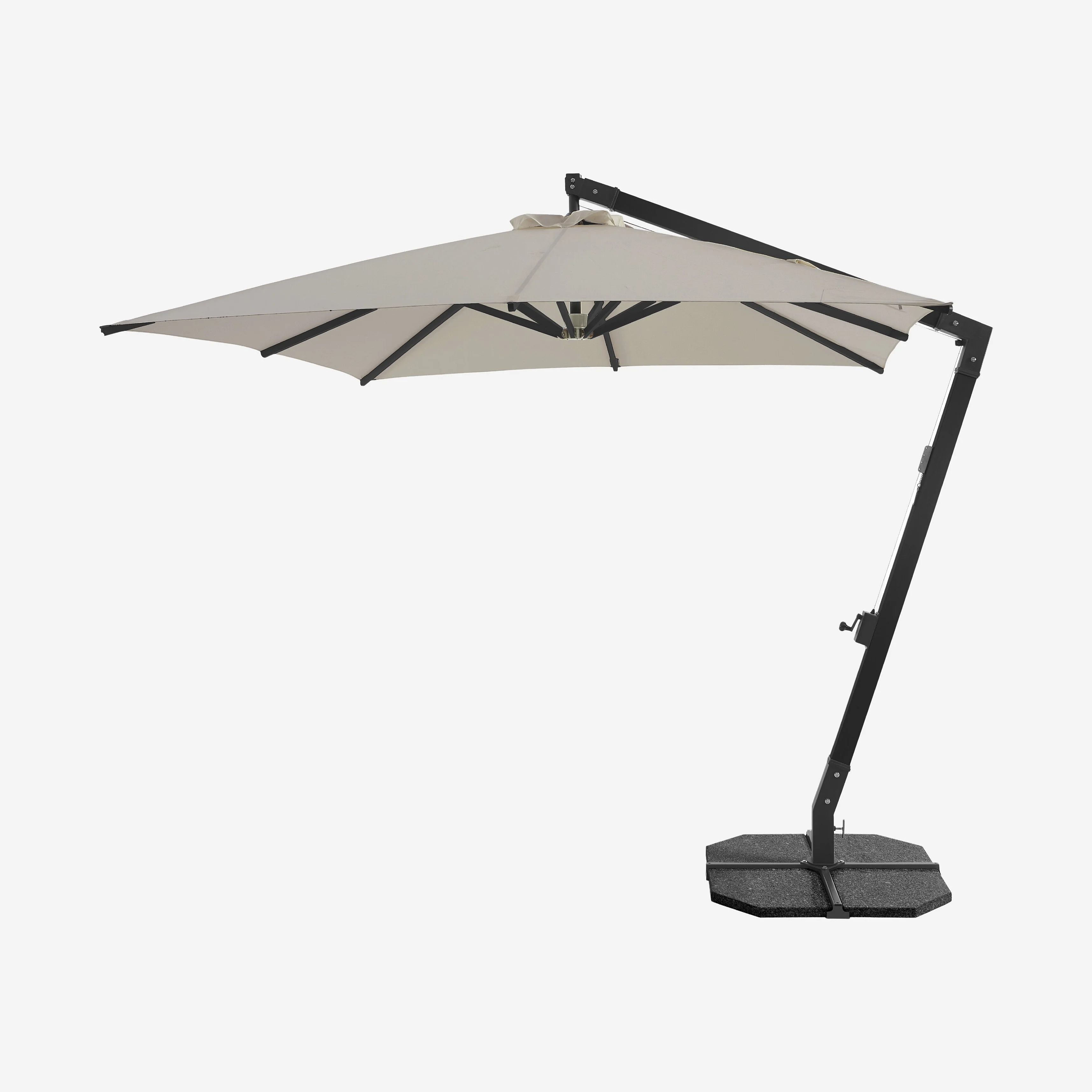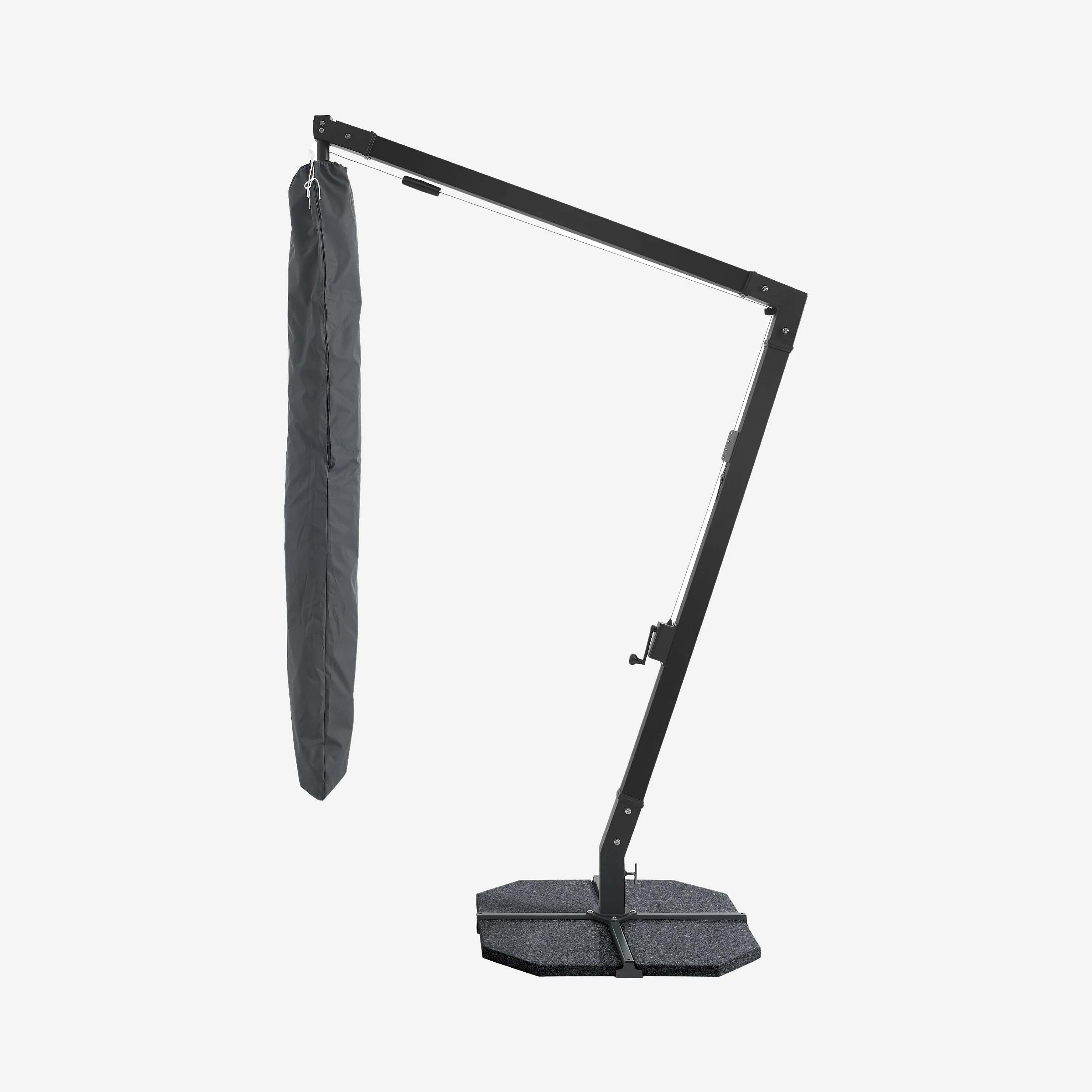 Parasol excéntrico de tejido y metal de 3 x 3 m con base de granito - Topo y antracita