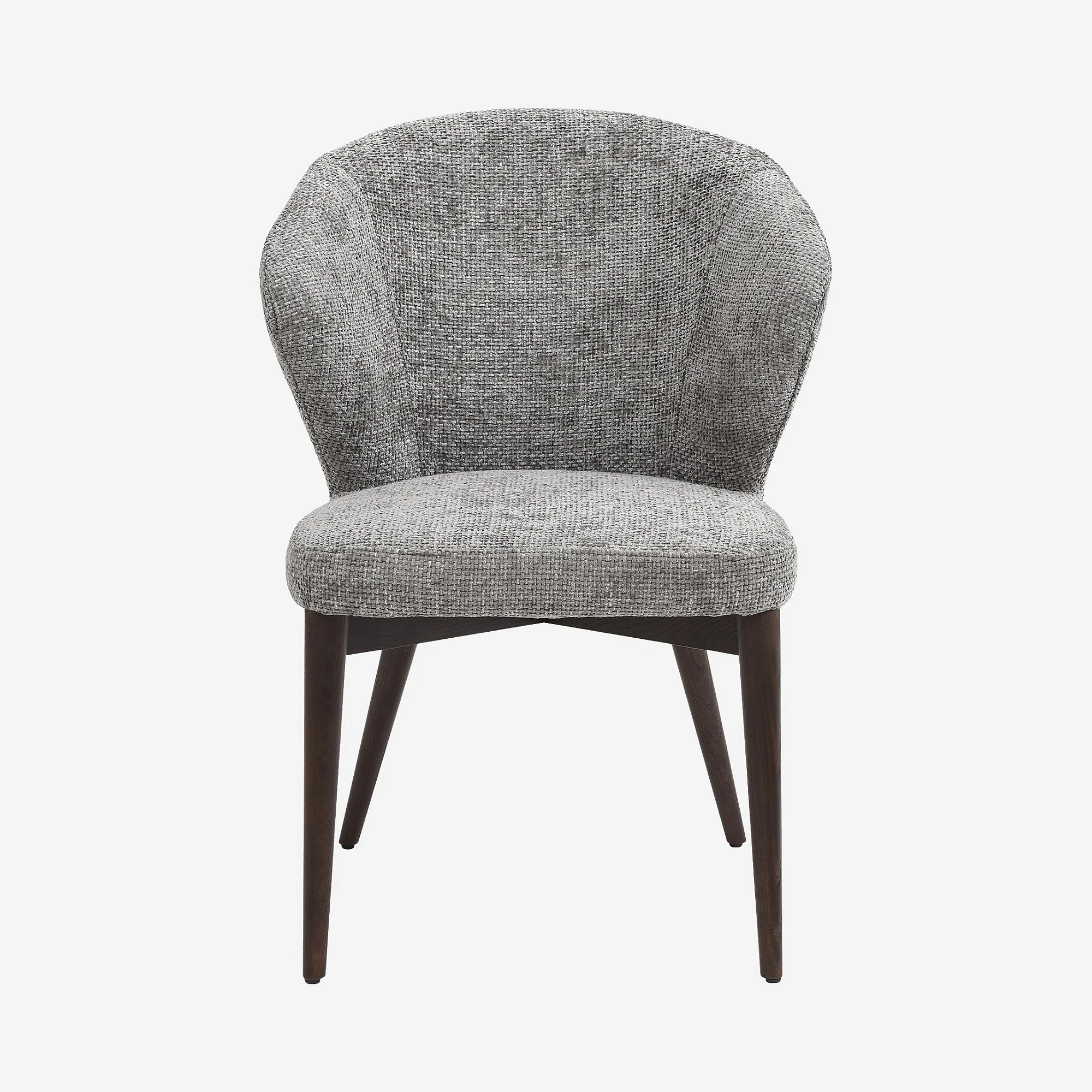 Una silueta minimalista con curvas envolventes, realzada por la suavidad de la tela chenilla. La silla Luris está pensada como un toque de elegancia, sutil y acogedora a la vez.