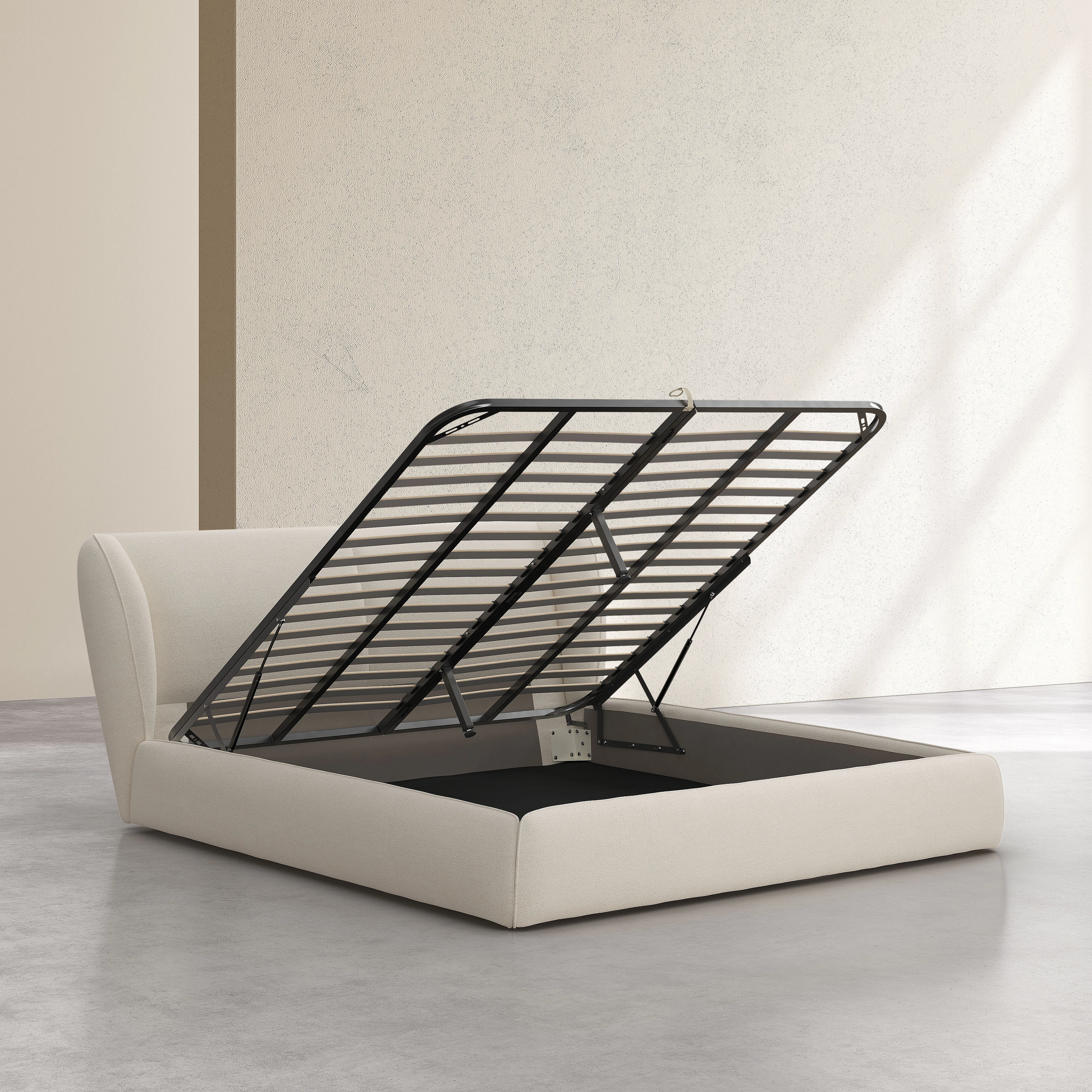 Cama baúl de 180 x 200 cm en tejido de rizo corto - Beige merengue