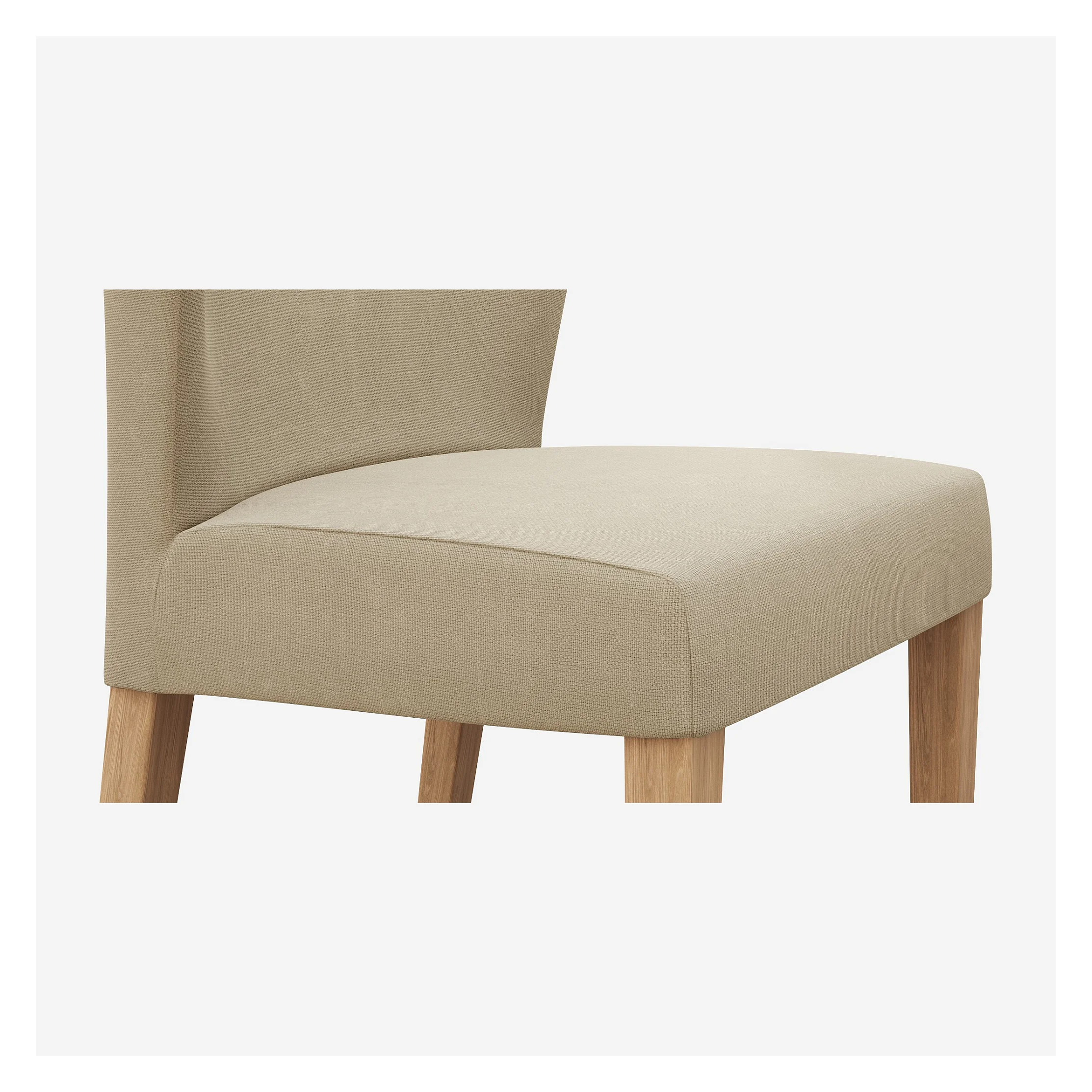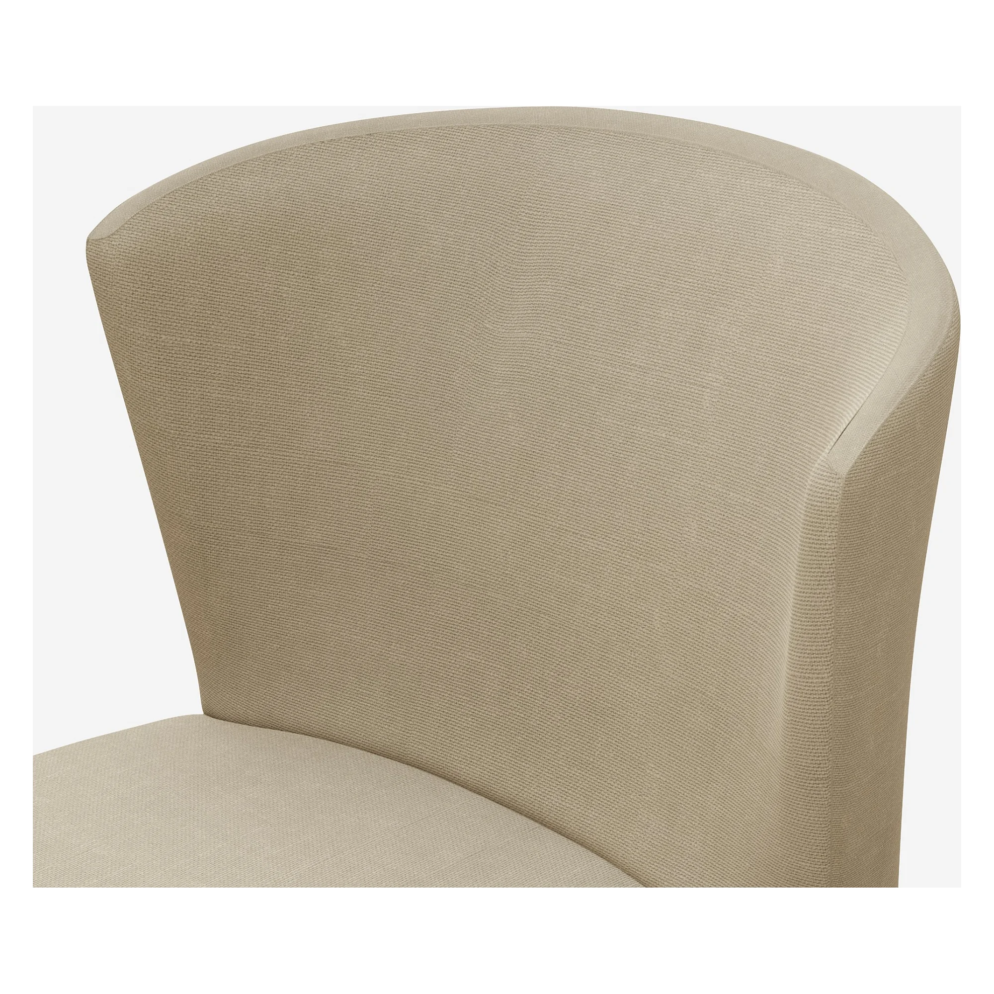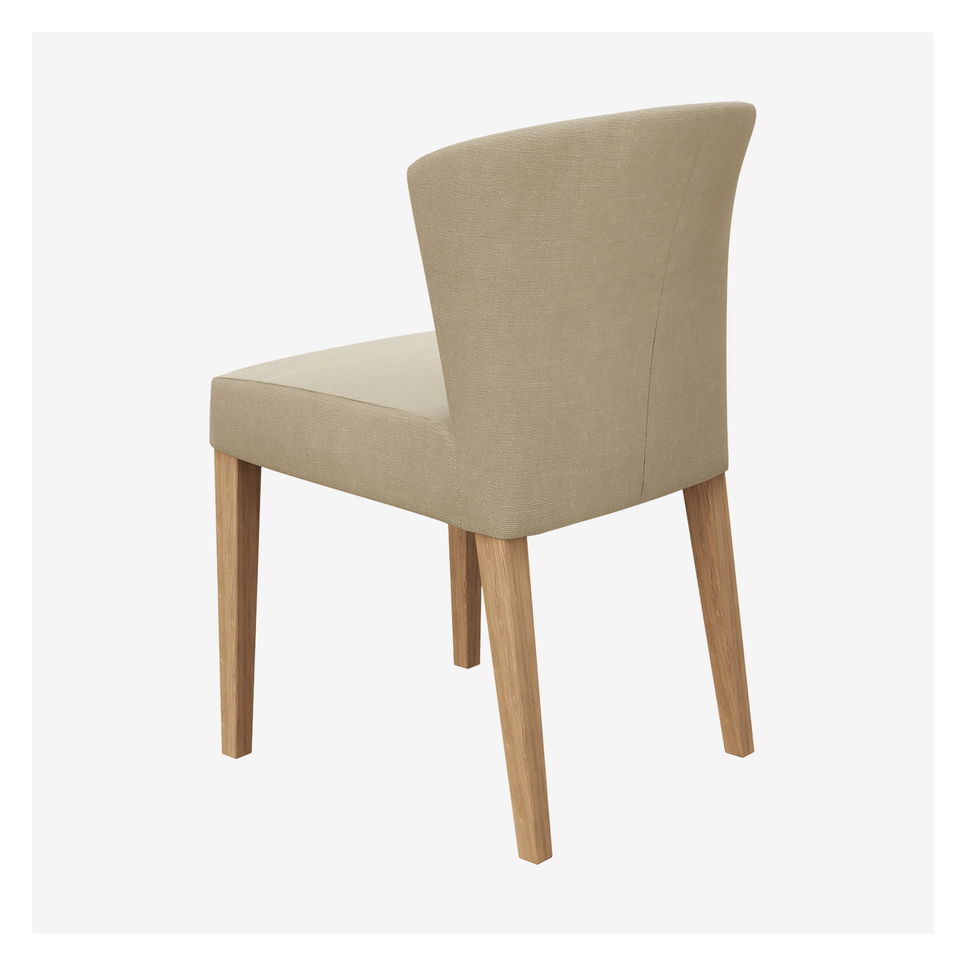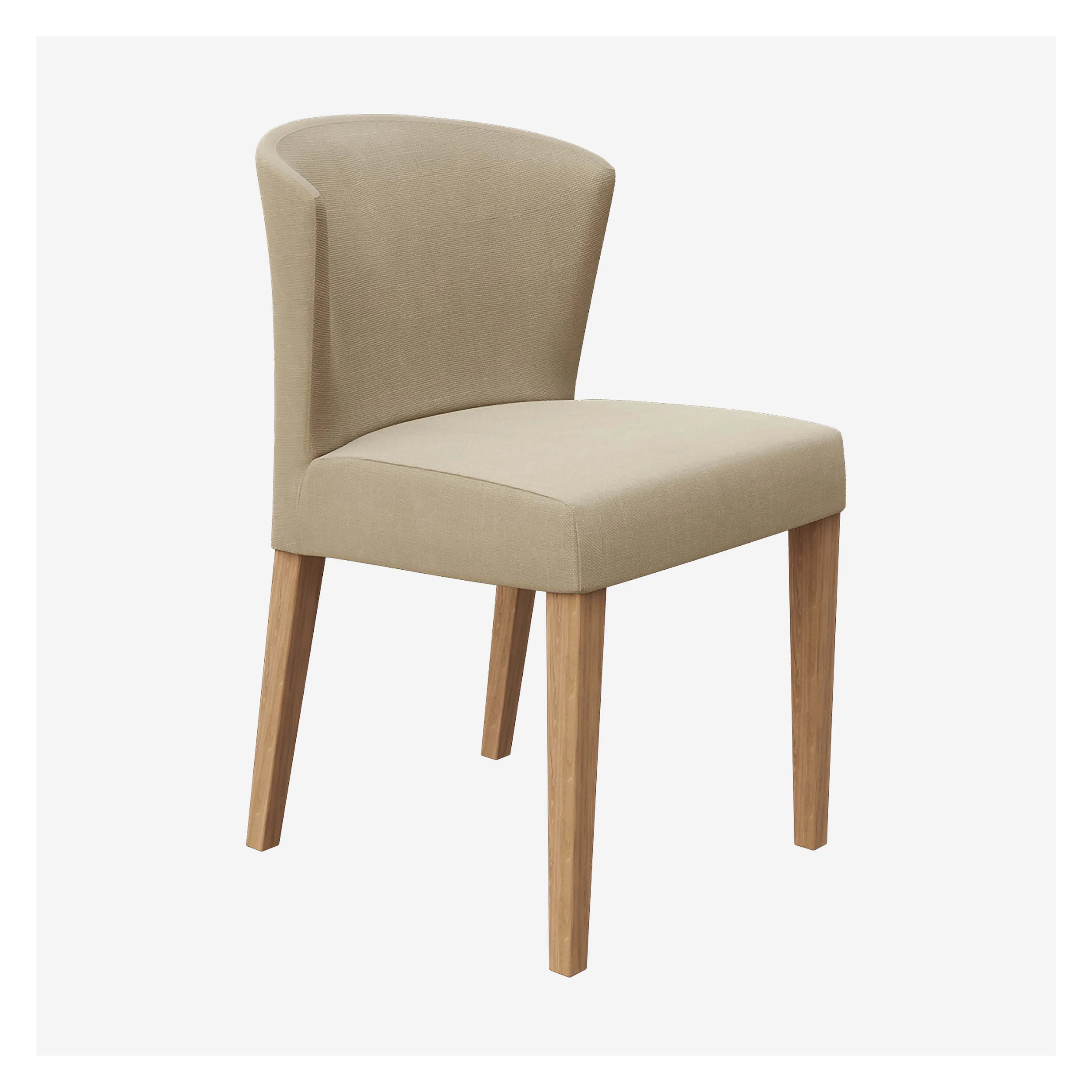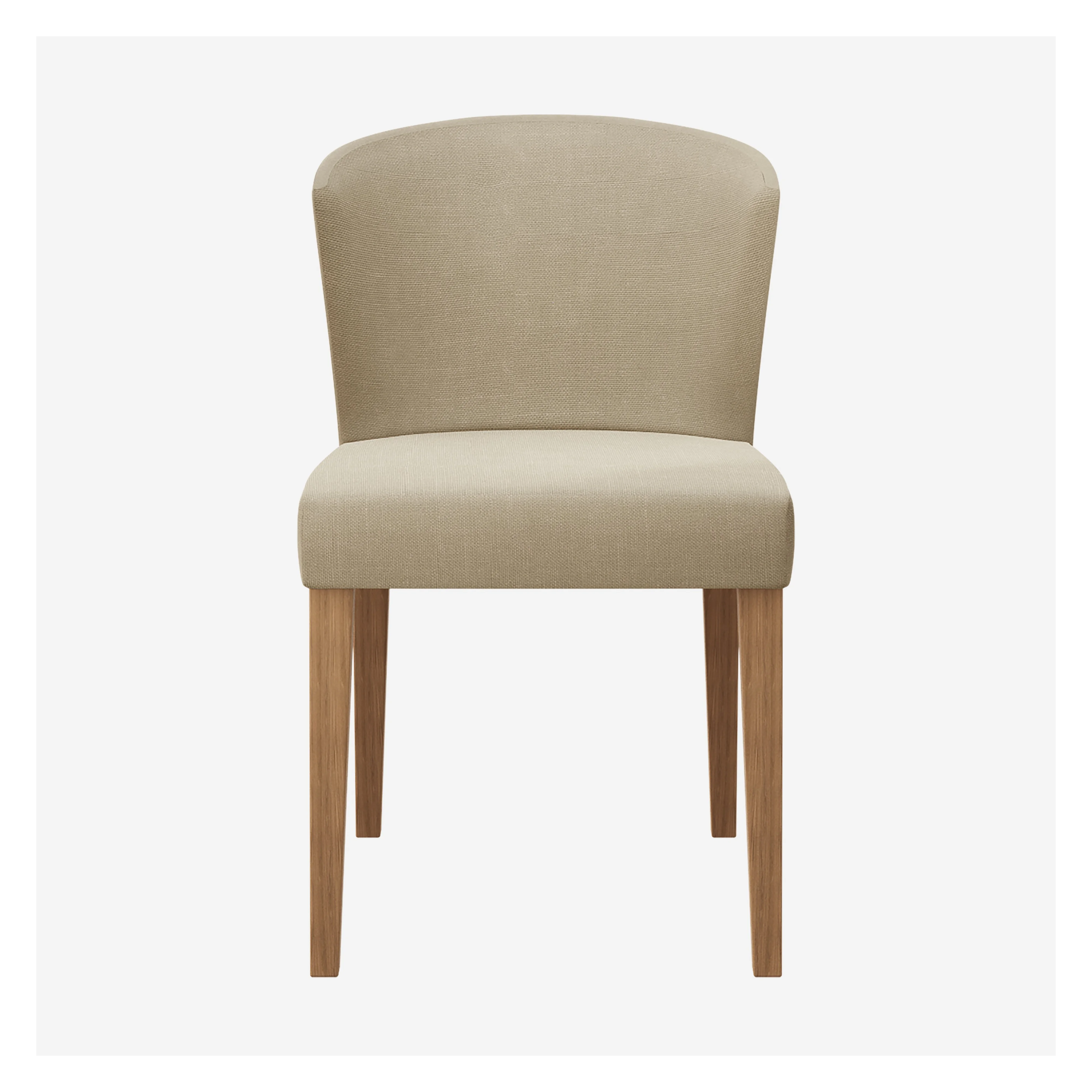 Valentina combina respaldo redondeado, tela luminosa y patas de roble macizo para una silueta elegante y confortable. Un juego de 2 sillas refinadas, ideales alrededor de una mesa de comedor o como sillas de escritorio.
