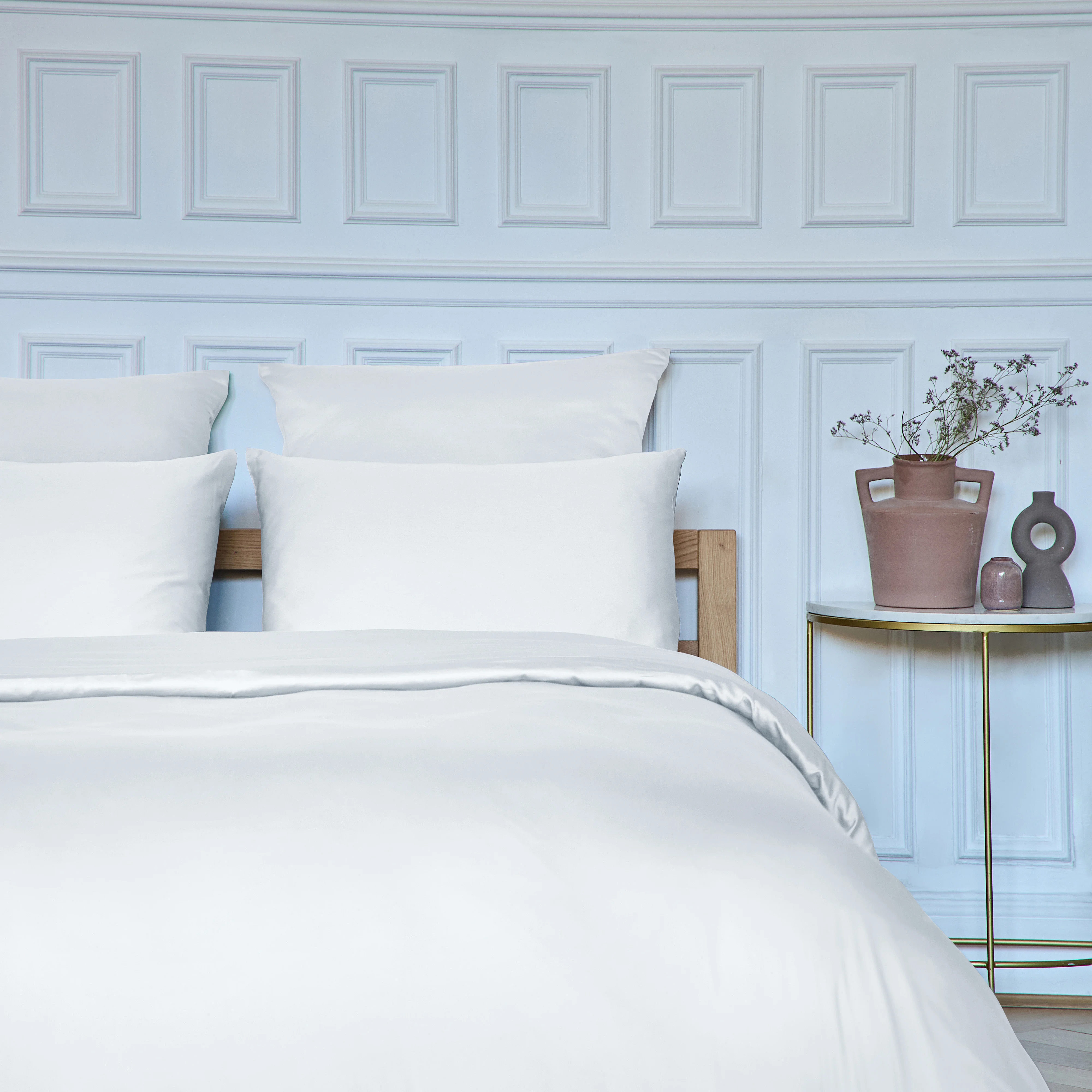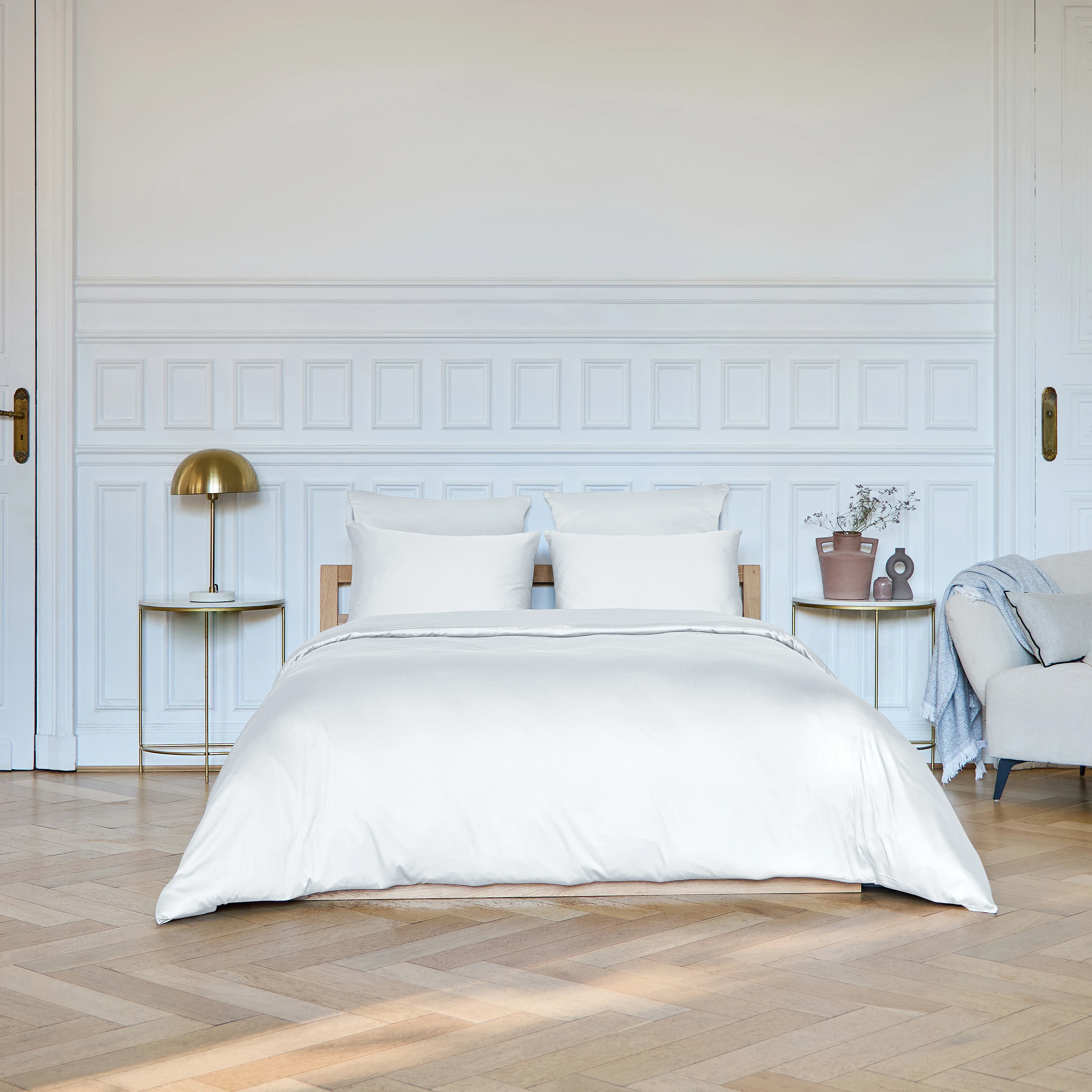 Alexane révèle toute la douceur du satin de coton avec son tissage fin et son éclat subtil. Une housse de couette qui transforme la chambre en un cocon d’élégance et de confort.