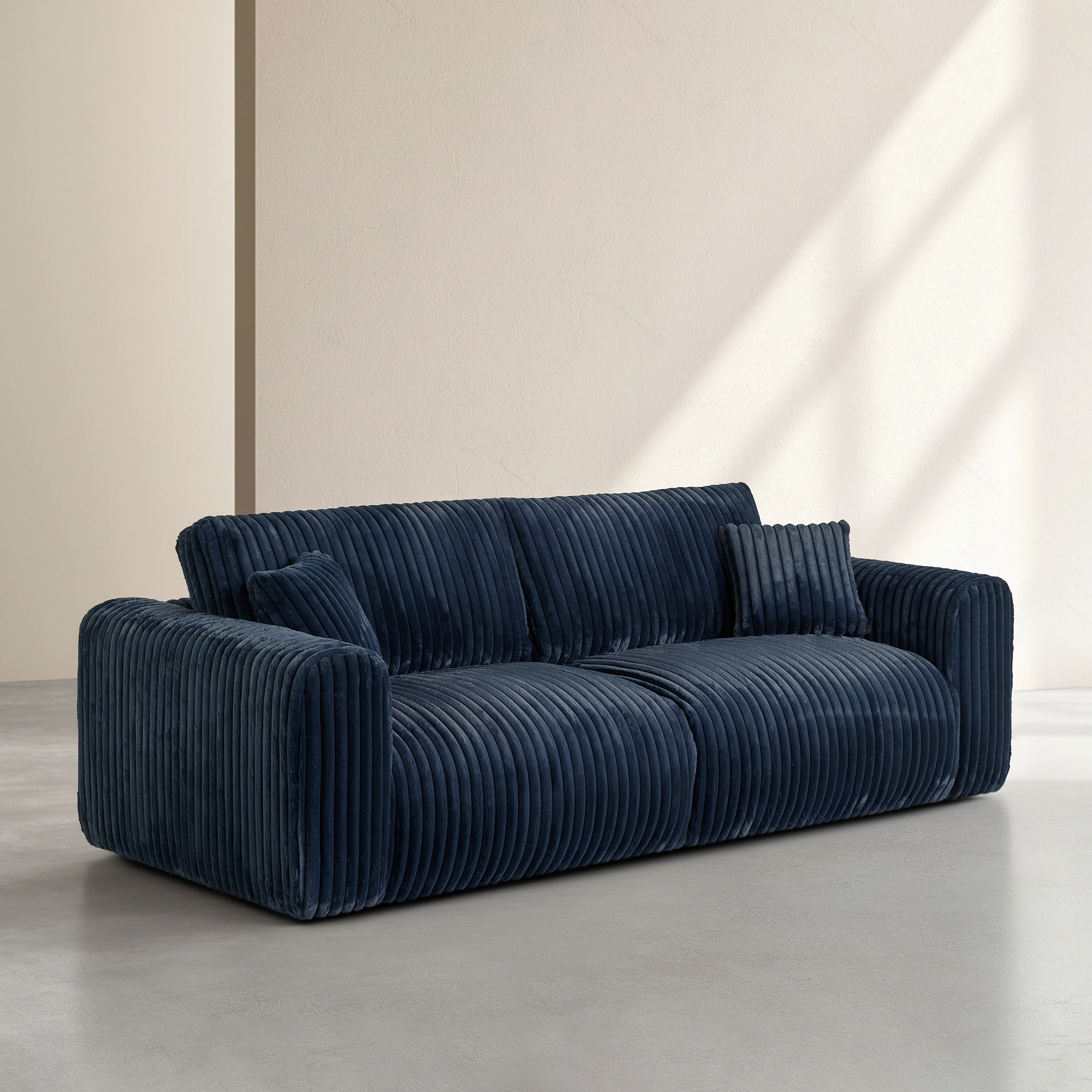 Canapé 4 places en tissu côtelé - Bleu nuit