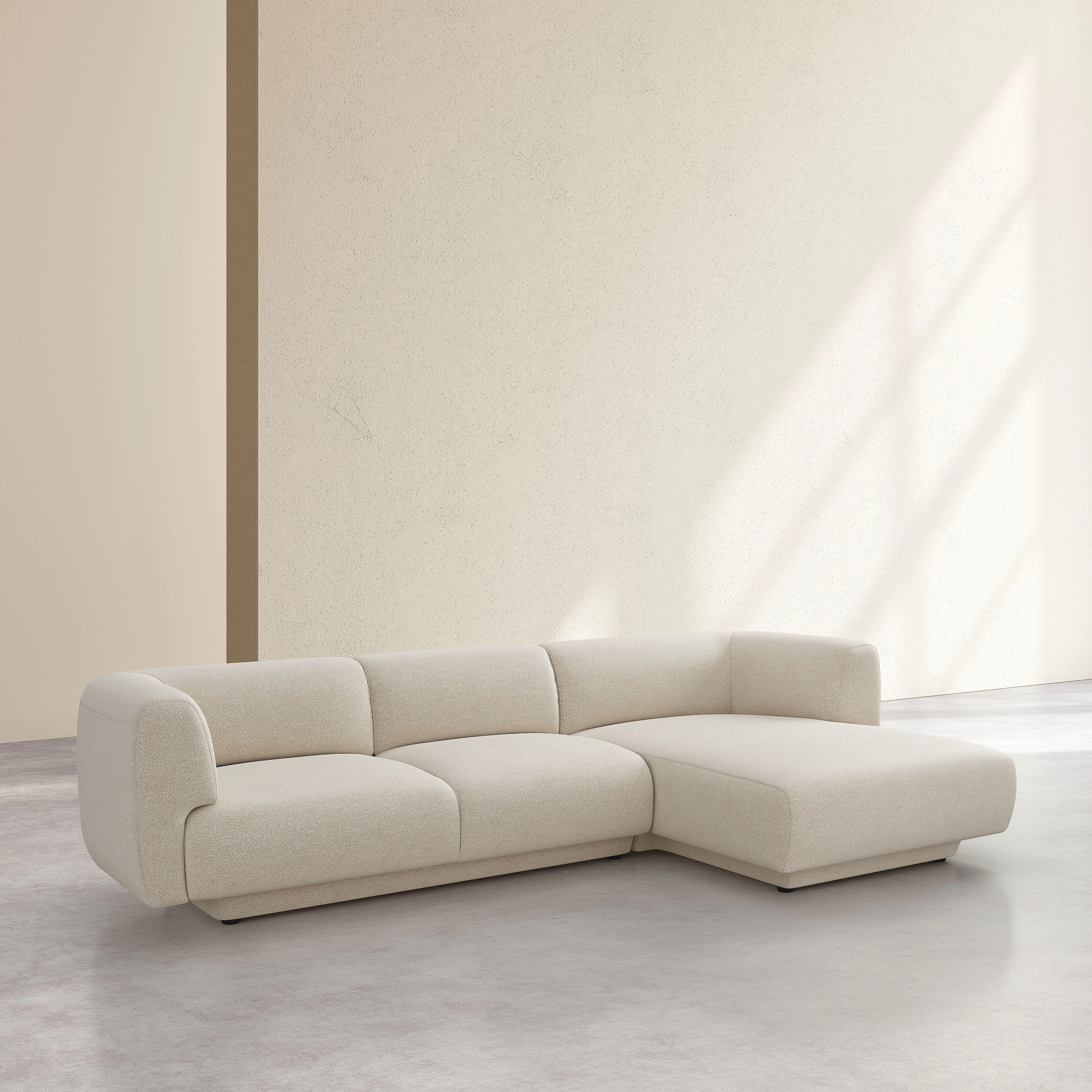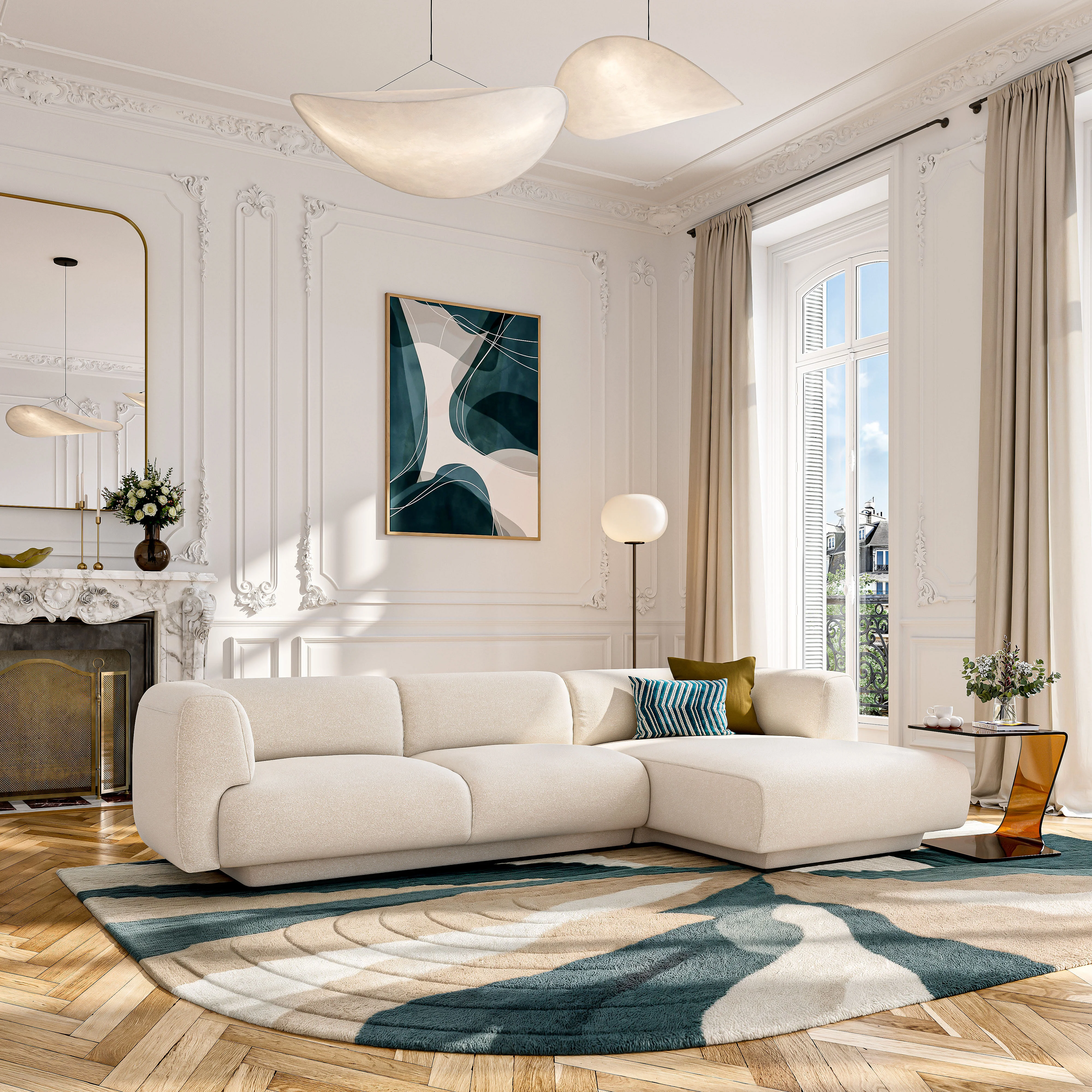 Grand canapé d'angle droit en tissu texturé - Beige vanille - Design by Federica Francini