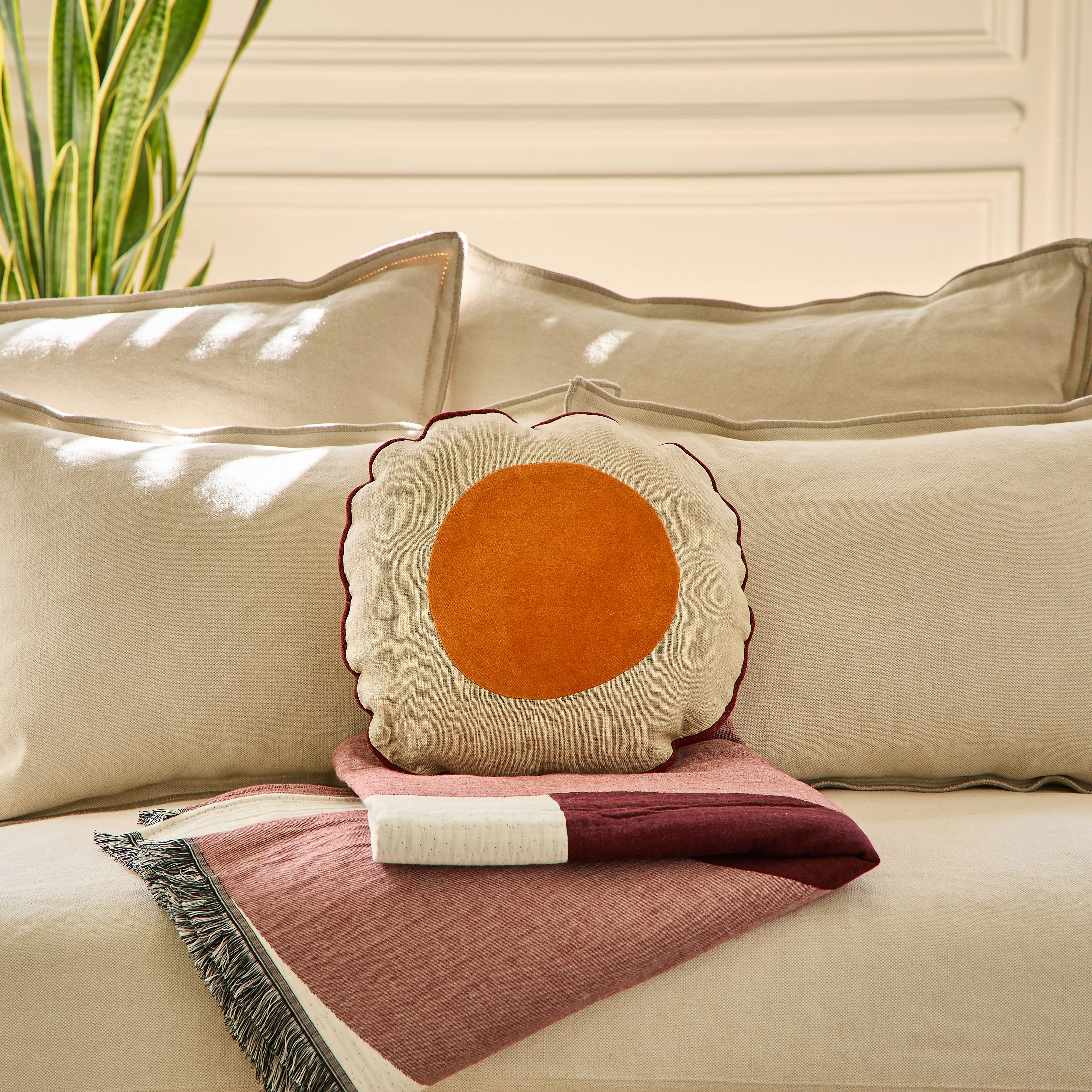Coussin en lin et coton - 40 cm - Beige et orange - Design by Floriane Jacques