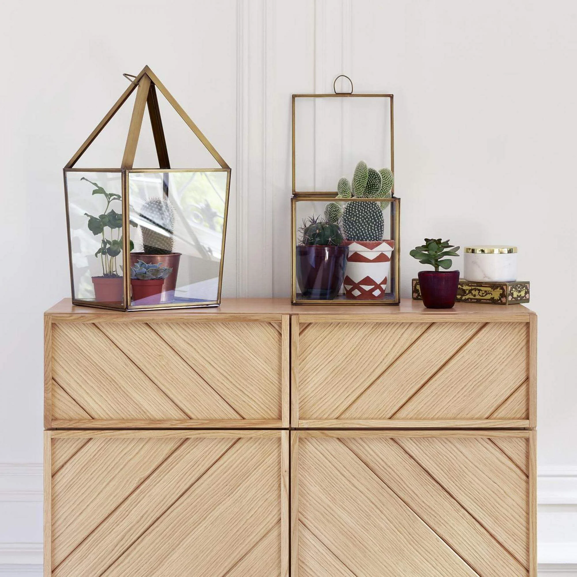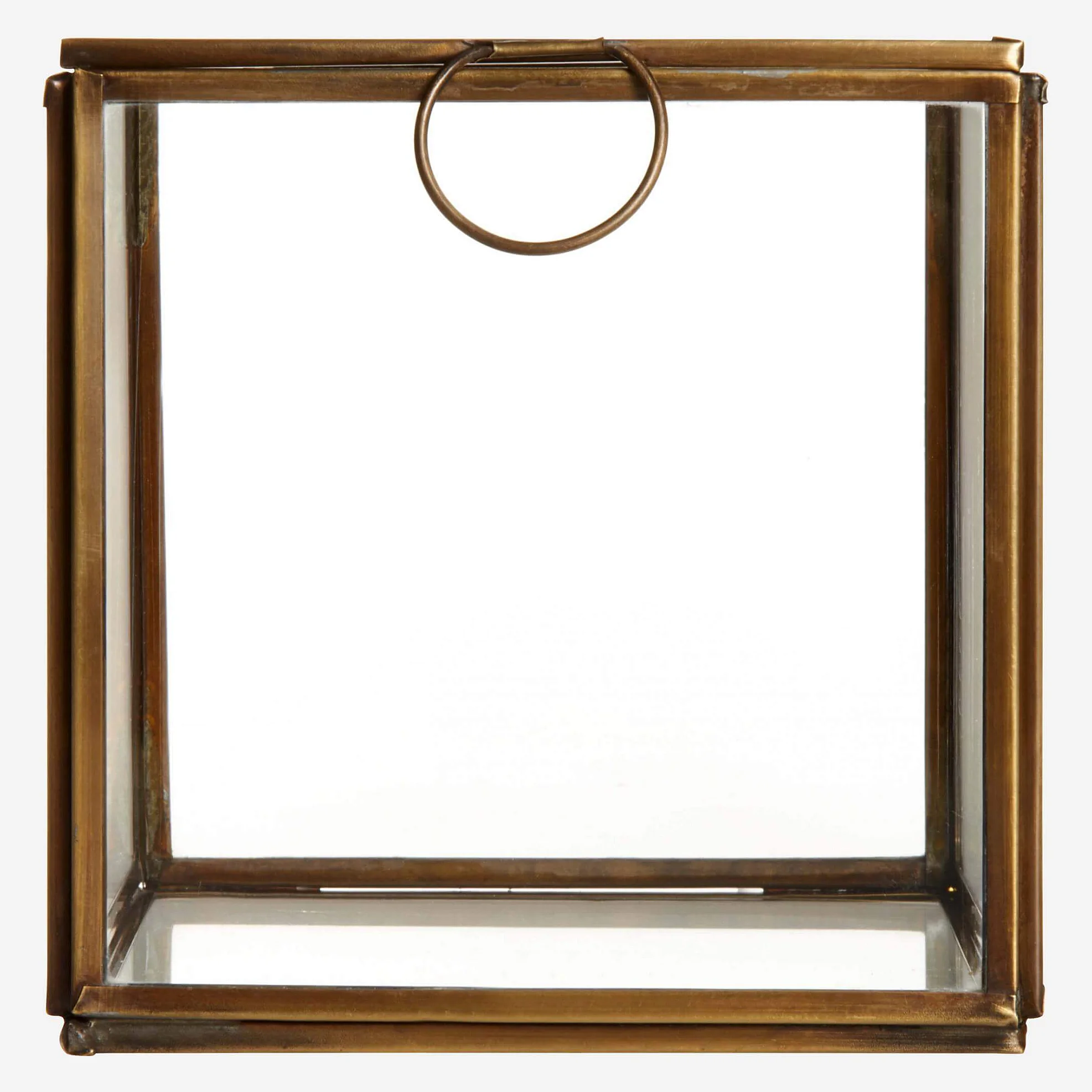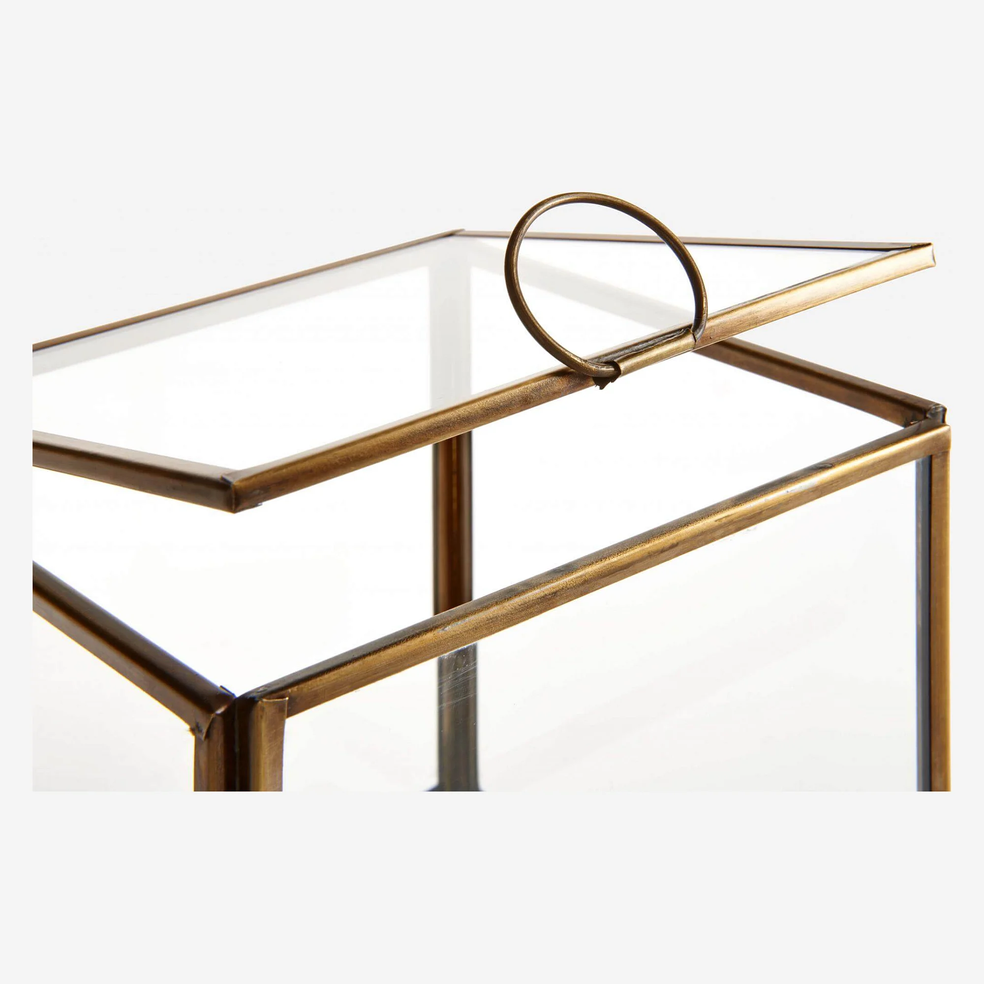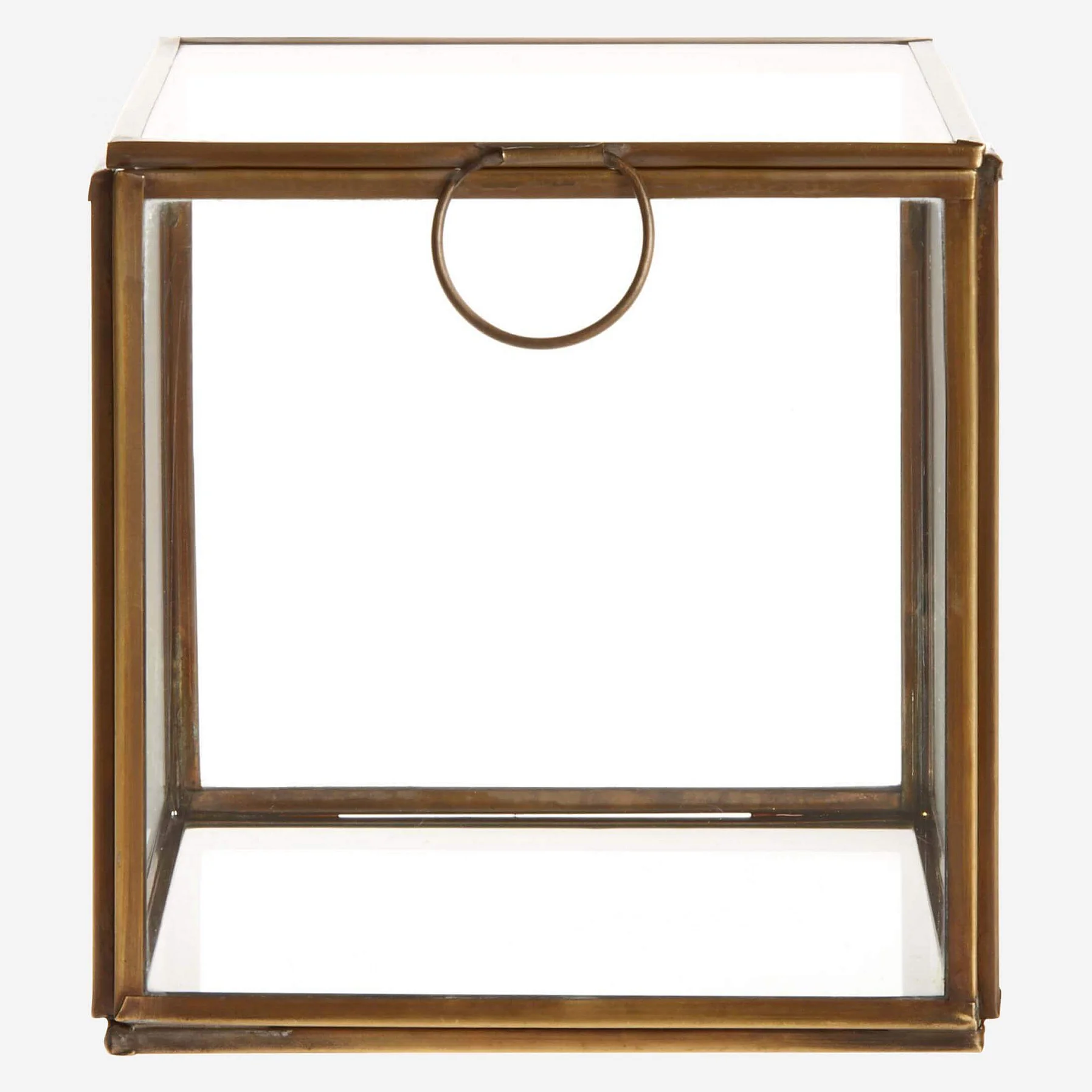 Élisabeth illumine vos espaces avec une boîte carrée en verre et métal doré, idéale pour bijoux, bougies ou petits trésors décoratifs.