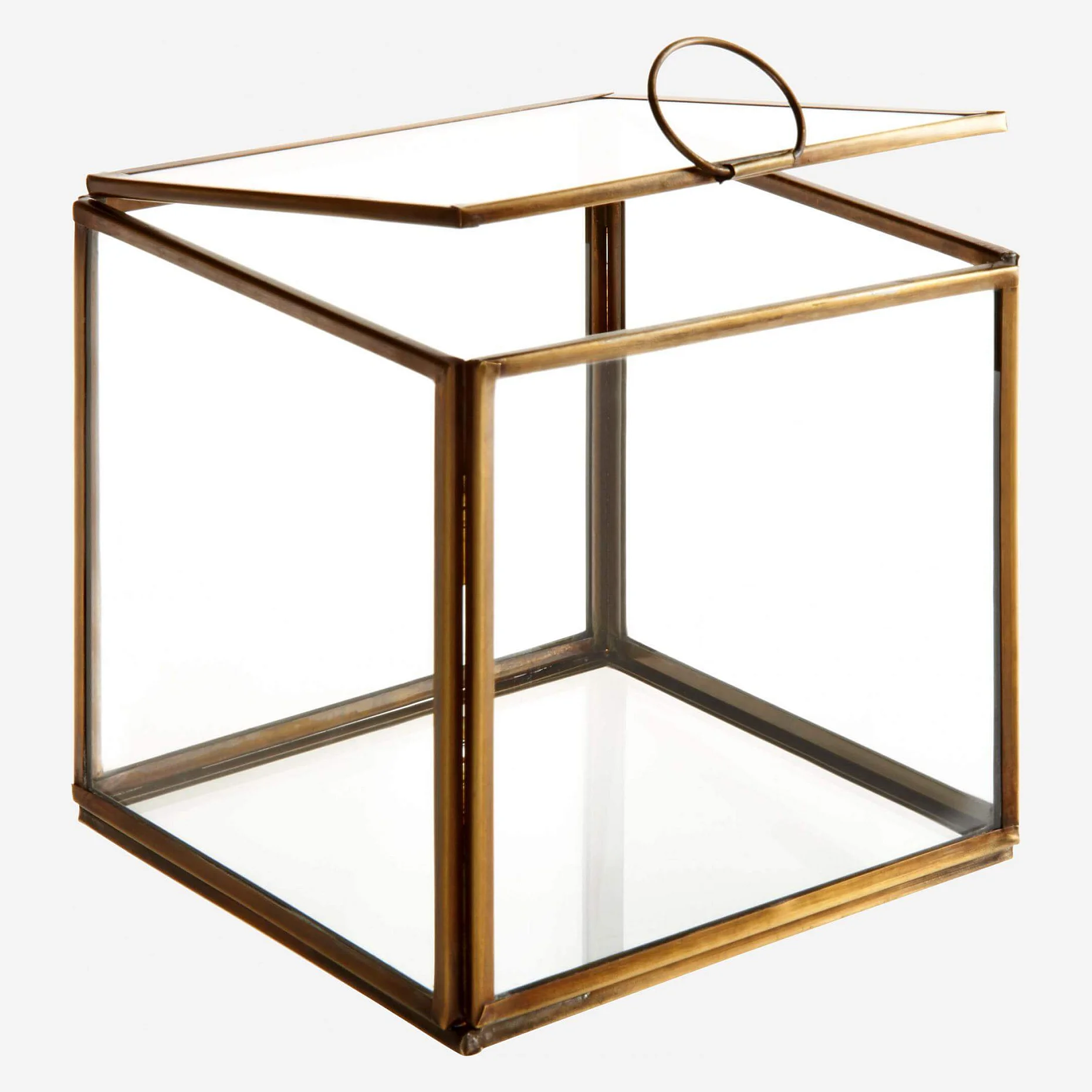 Boîte carré en verre - 13 x 13 x 13 cm – Transparent et doré