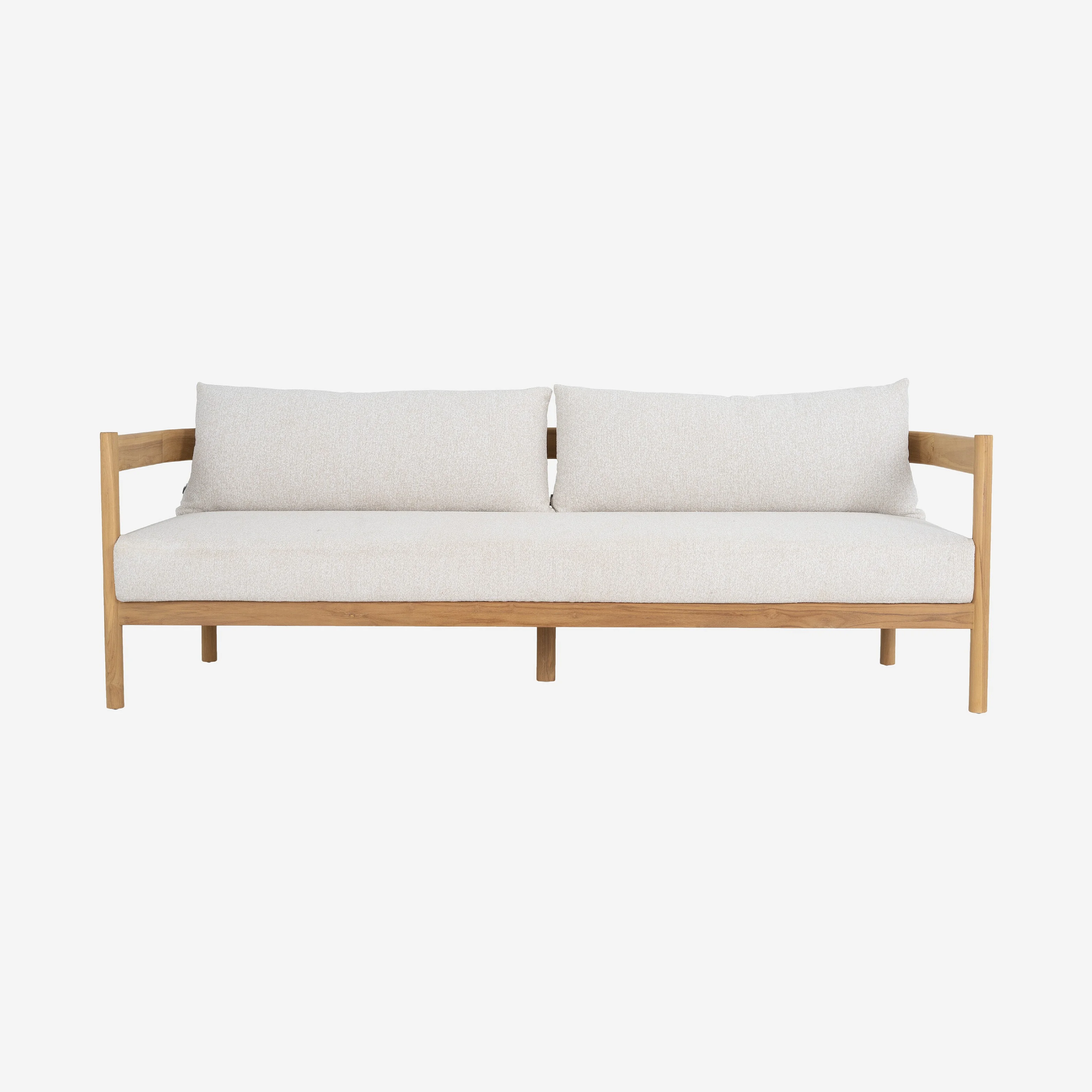 Canapé de jardin 3 places en teck massif et tissu imperméable - Naturel et blanc cassé