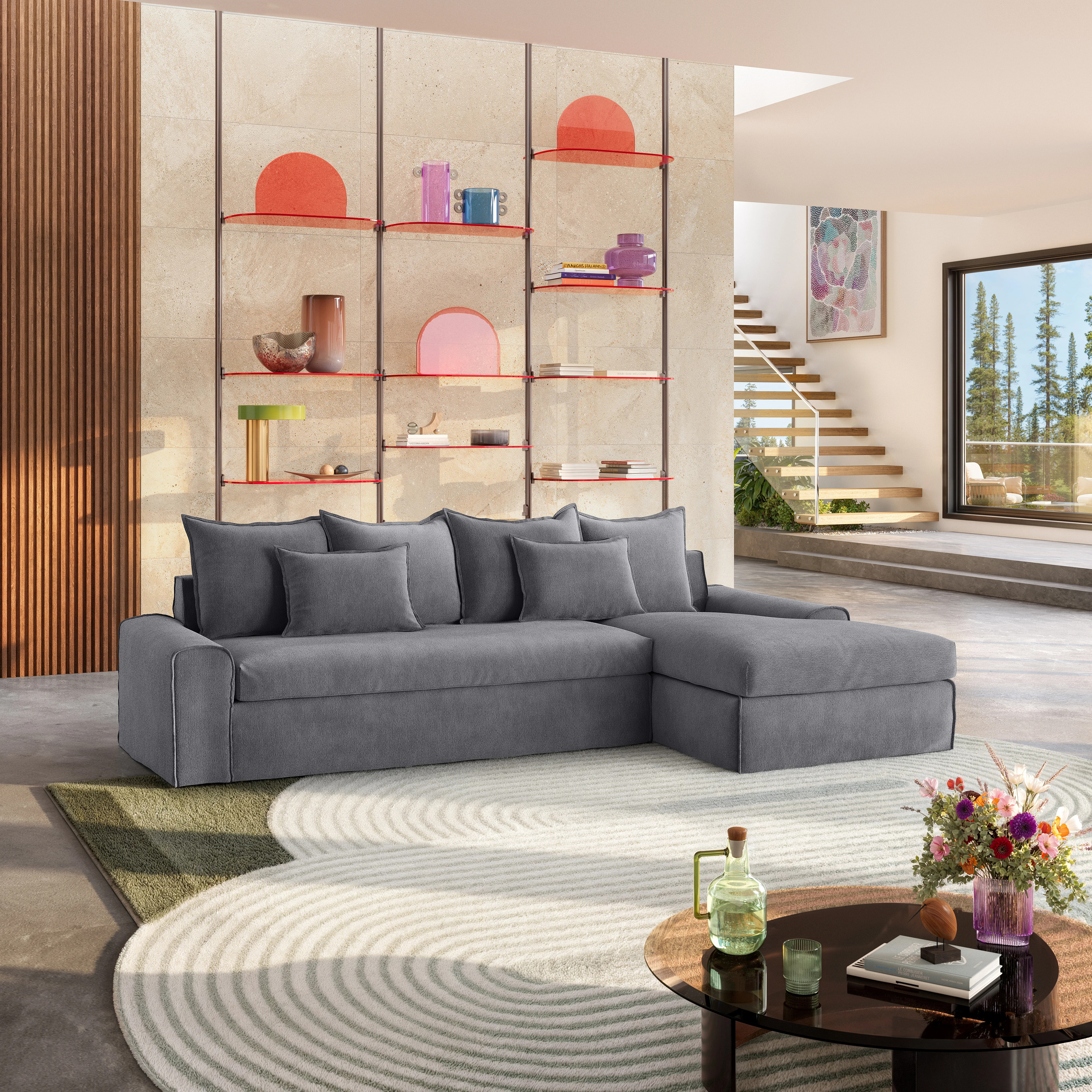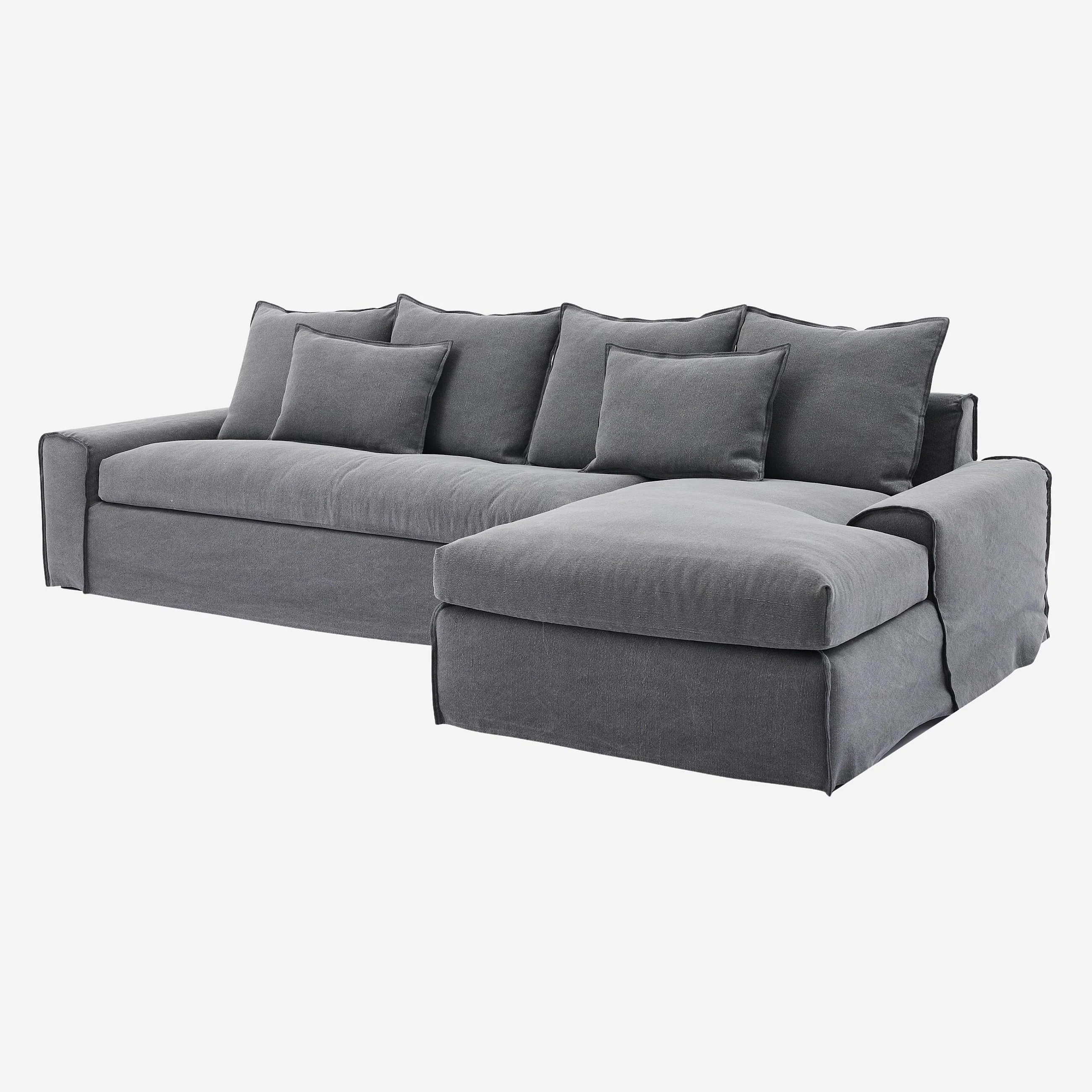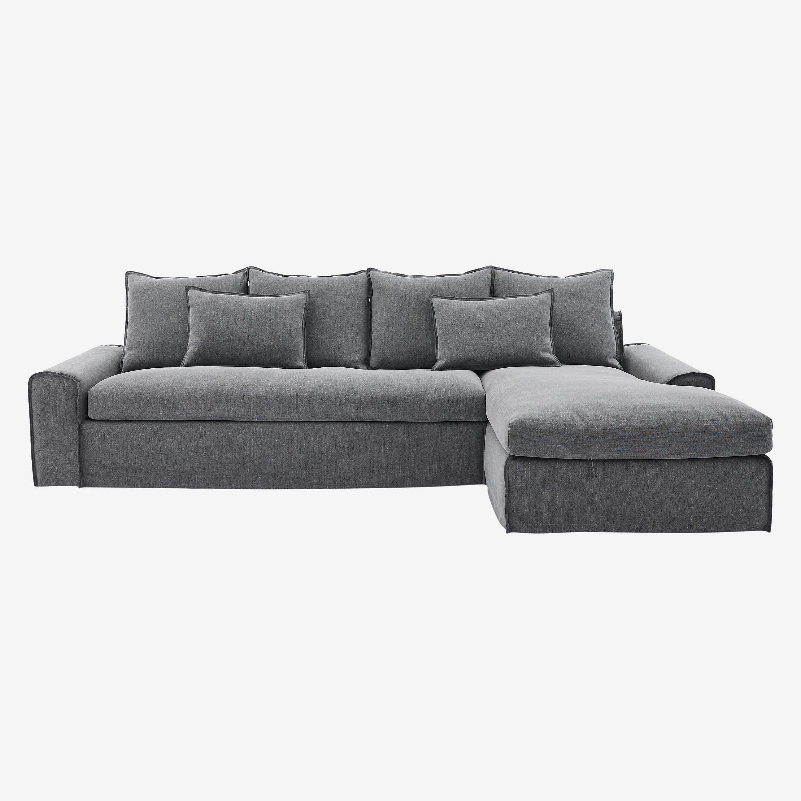 Canapé d'angle droit déhoussable en coton et lin garni de plumes - Gris ardoise