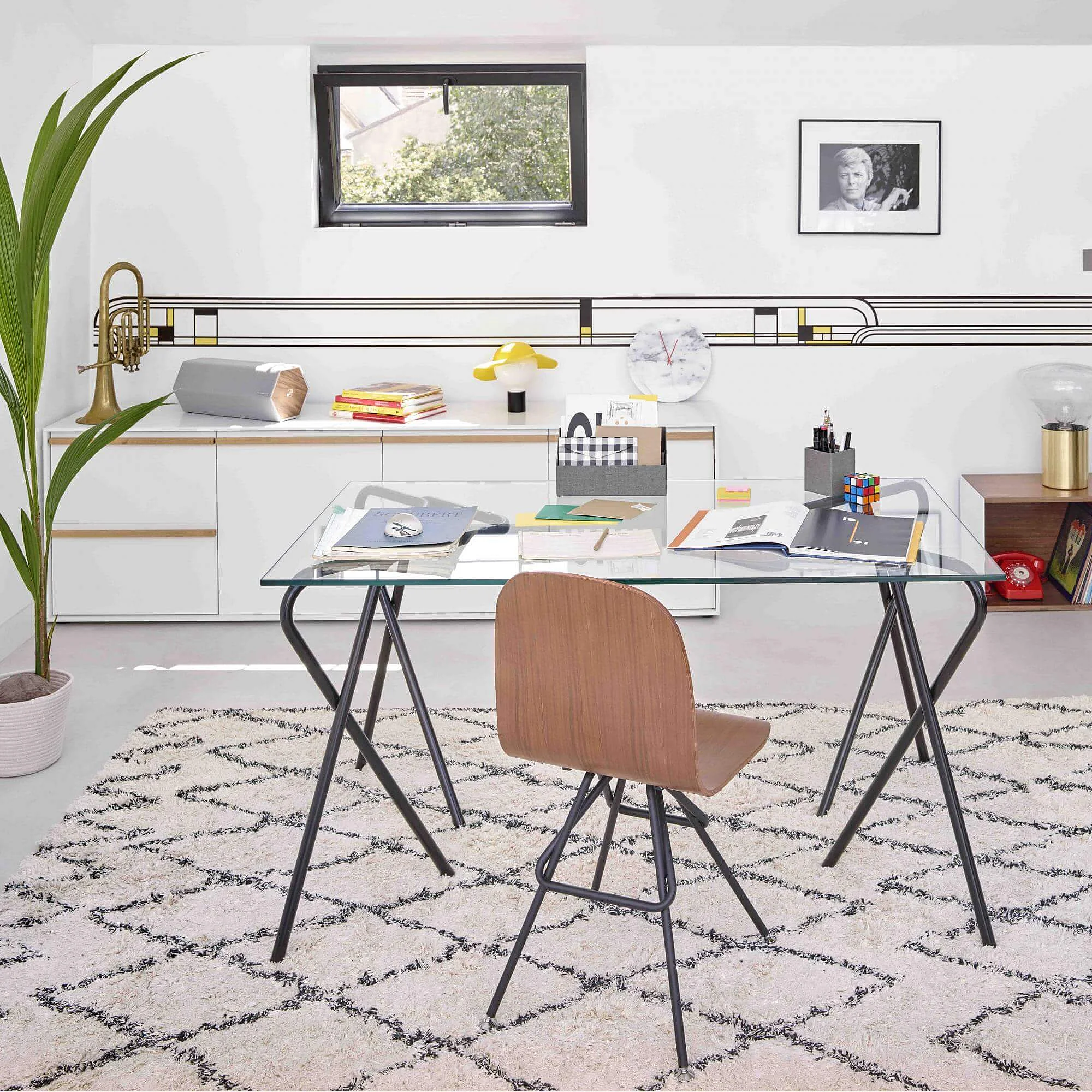 Le tapis en coton tufté main Jiddeth séduit par son moelleux et son motif noir et blanc graphique, idéal pour apporter chaleur et caractère à vos espaces de vie.