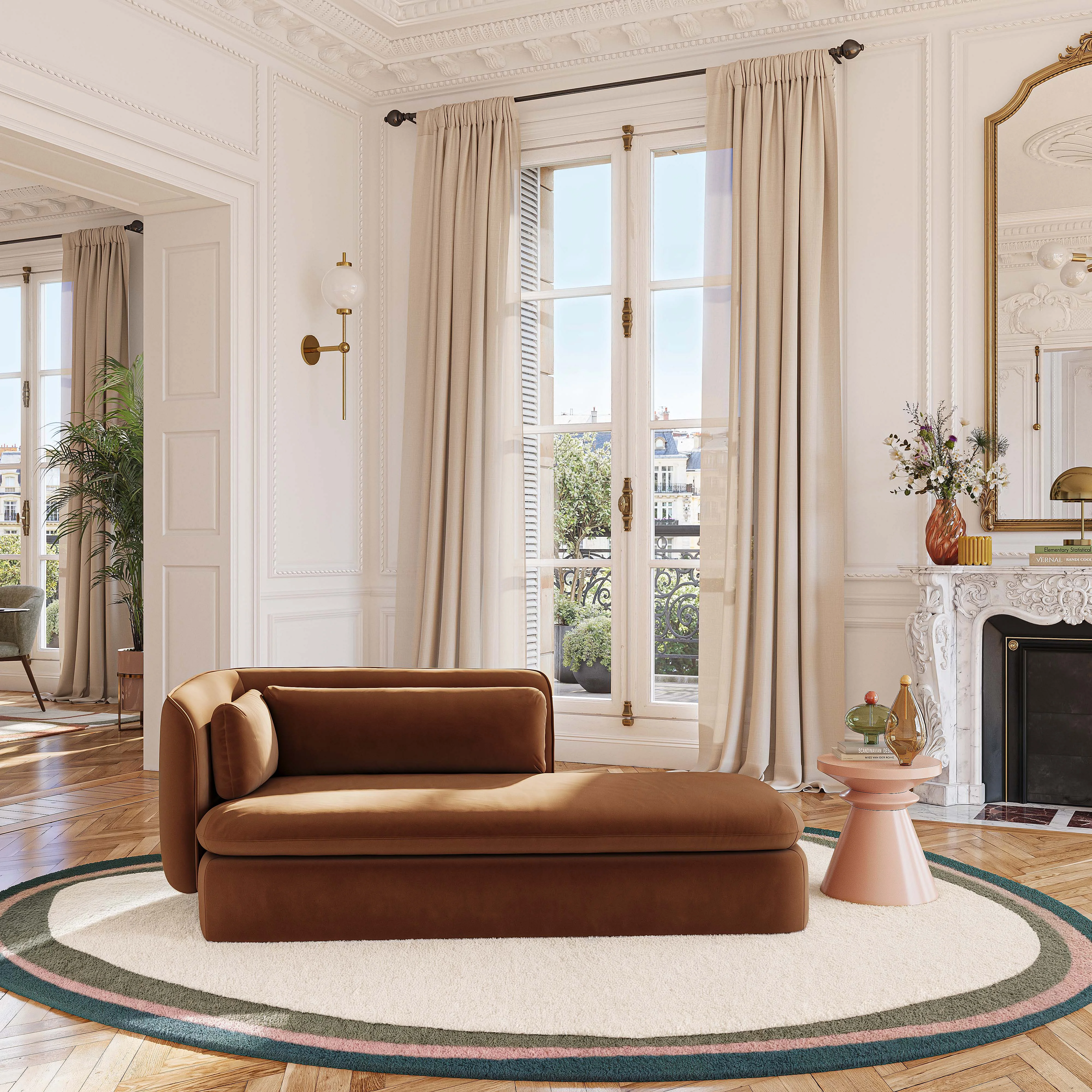 Forme allongée, lignes fluides et assise généreuse, cette méridienne est une invitation à la détente. Une pièce élégante pour composer un salon tout en douceur.