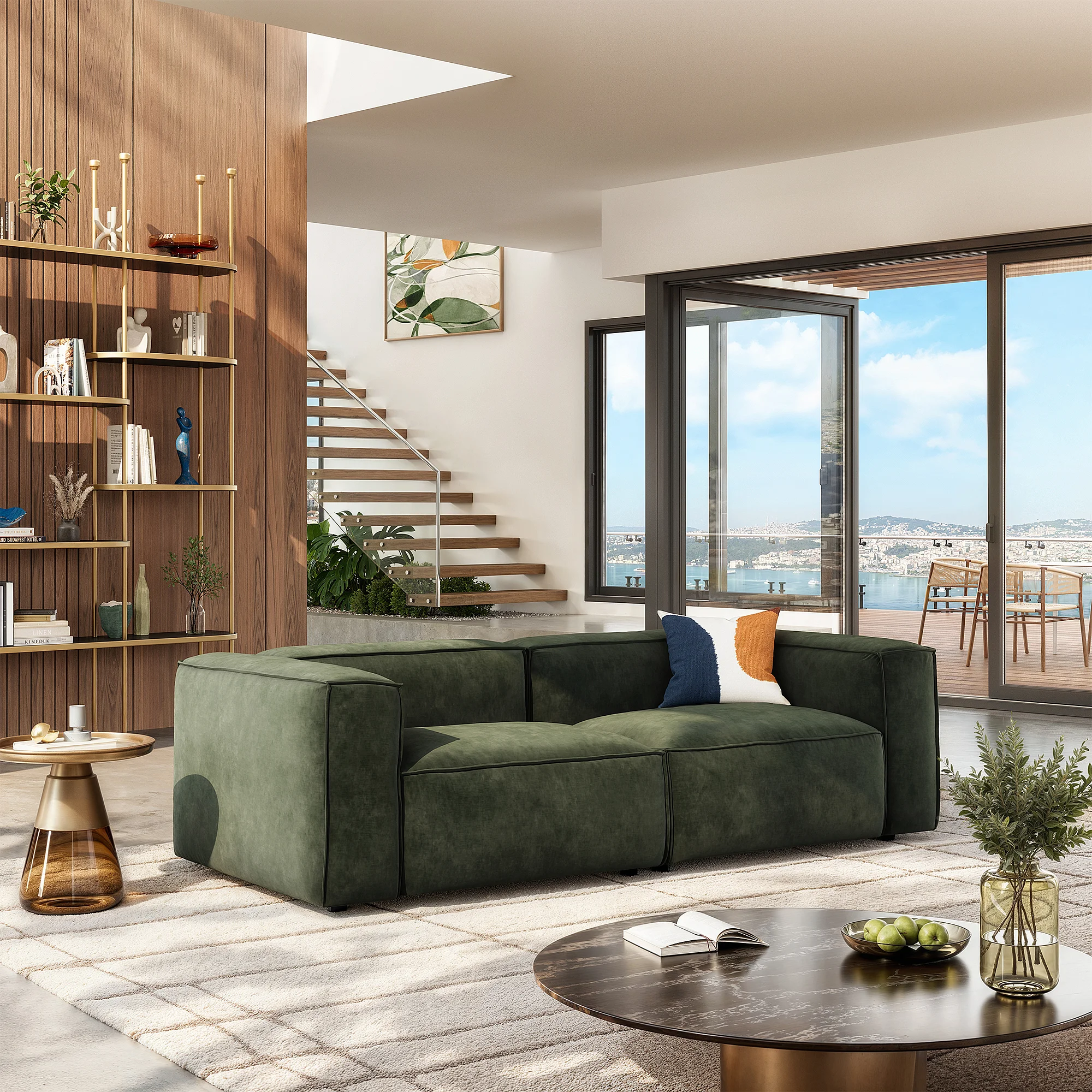 Canapé 3 places en velours - Vert kaki