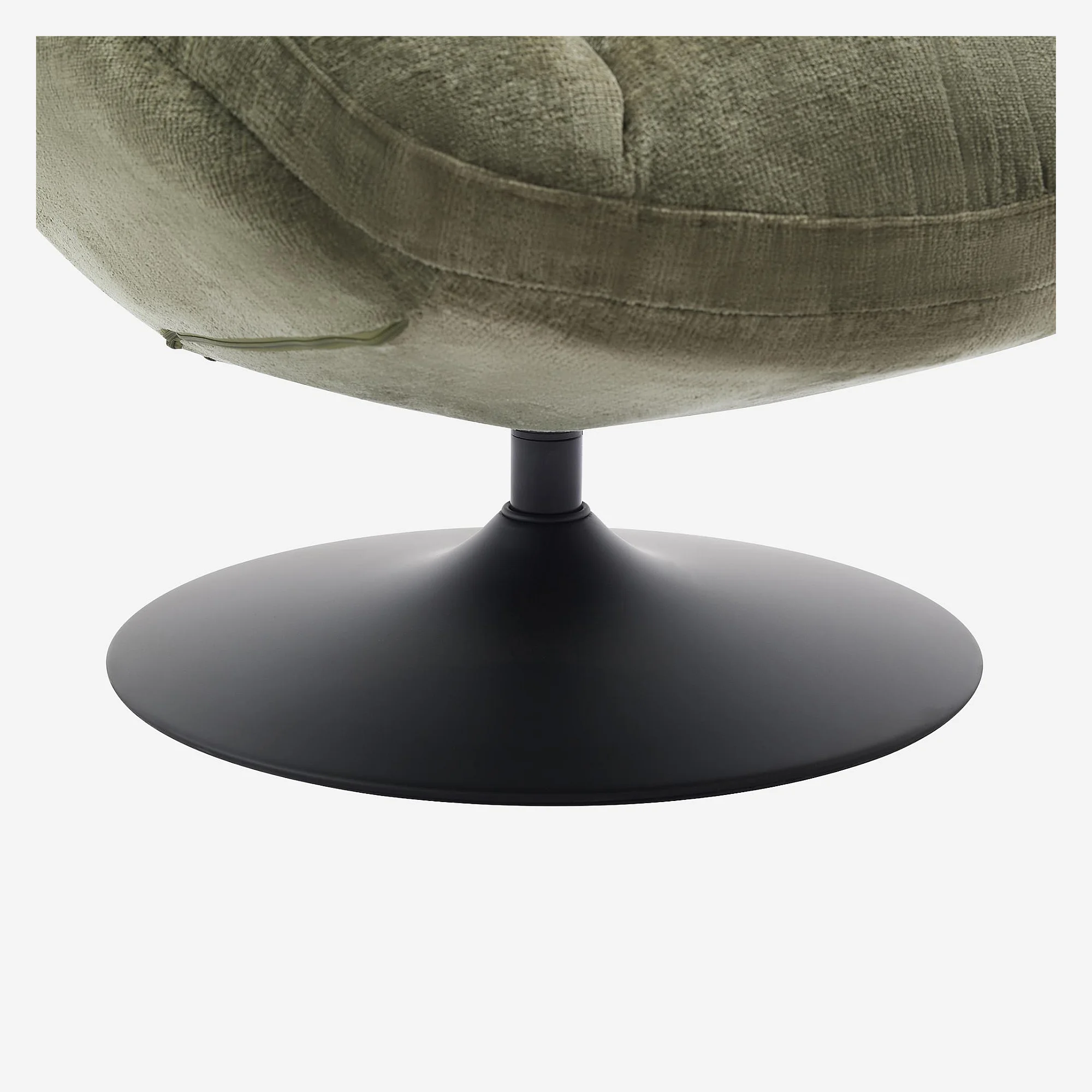 Fauteuil pivotant en tissu chenille et métal mat - Vert kaki et noir