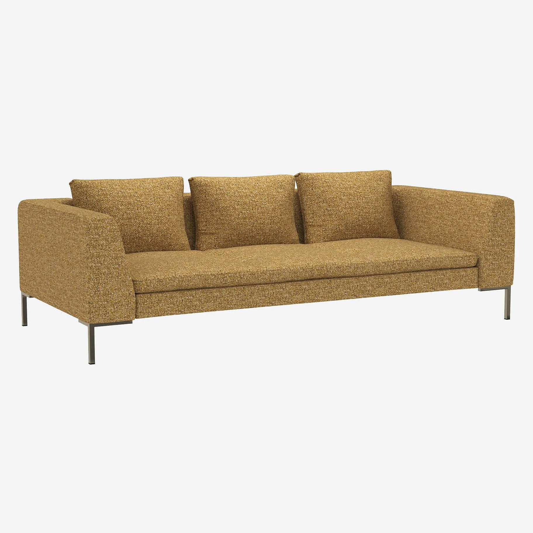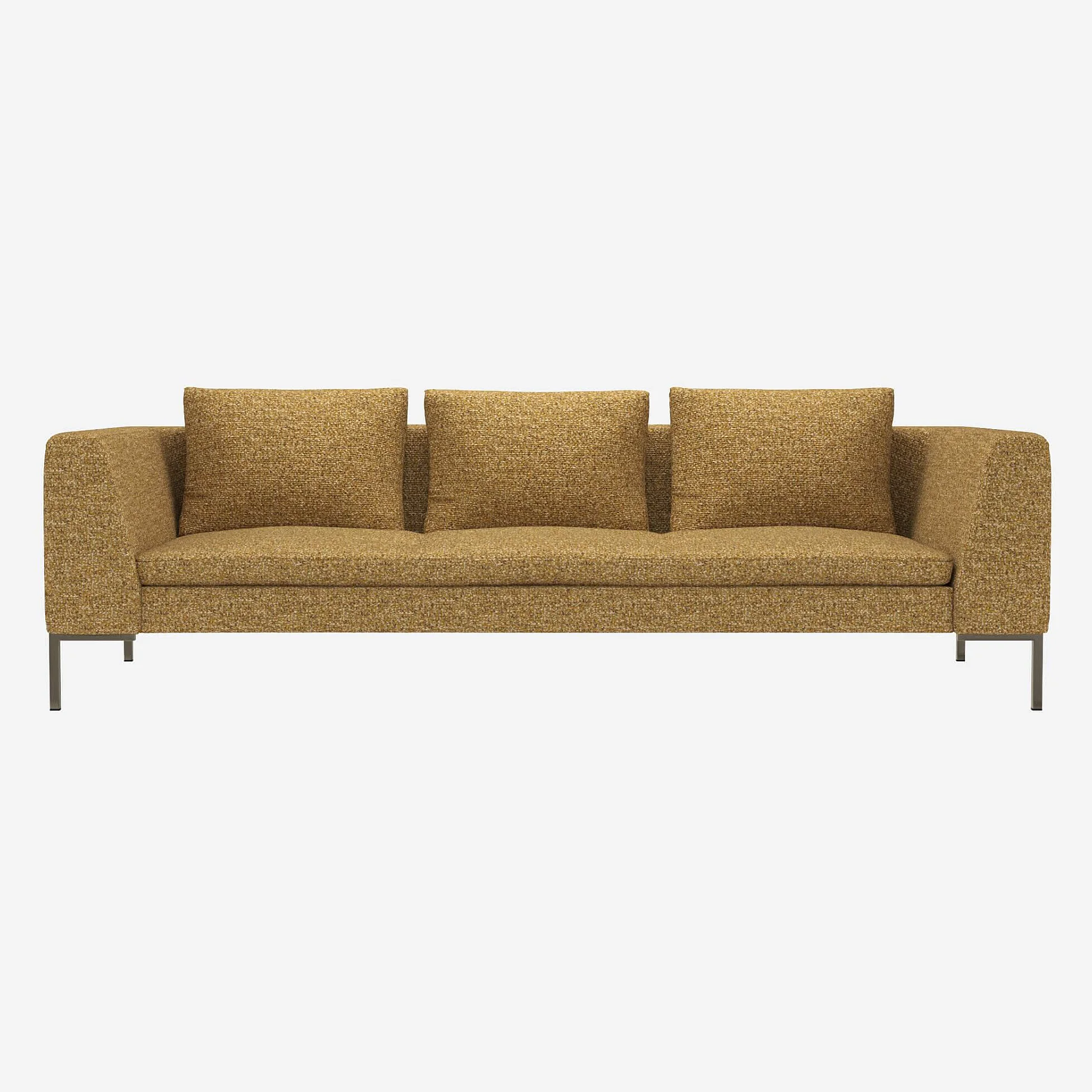 Lignes équilibrées, tissu et piètement fin définissent ce canapé 3 places à l’esthétique sobre et contemporaine. Une assise élégante qui s’intègre naturellement dans un salon d’inspiration minimaliste.