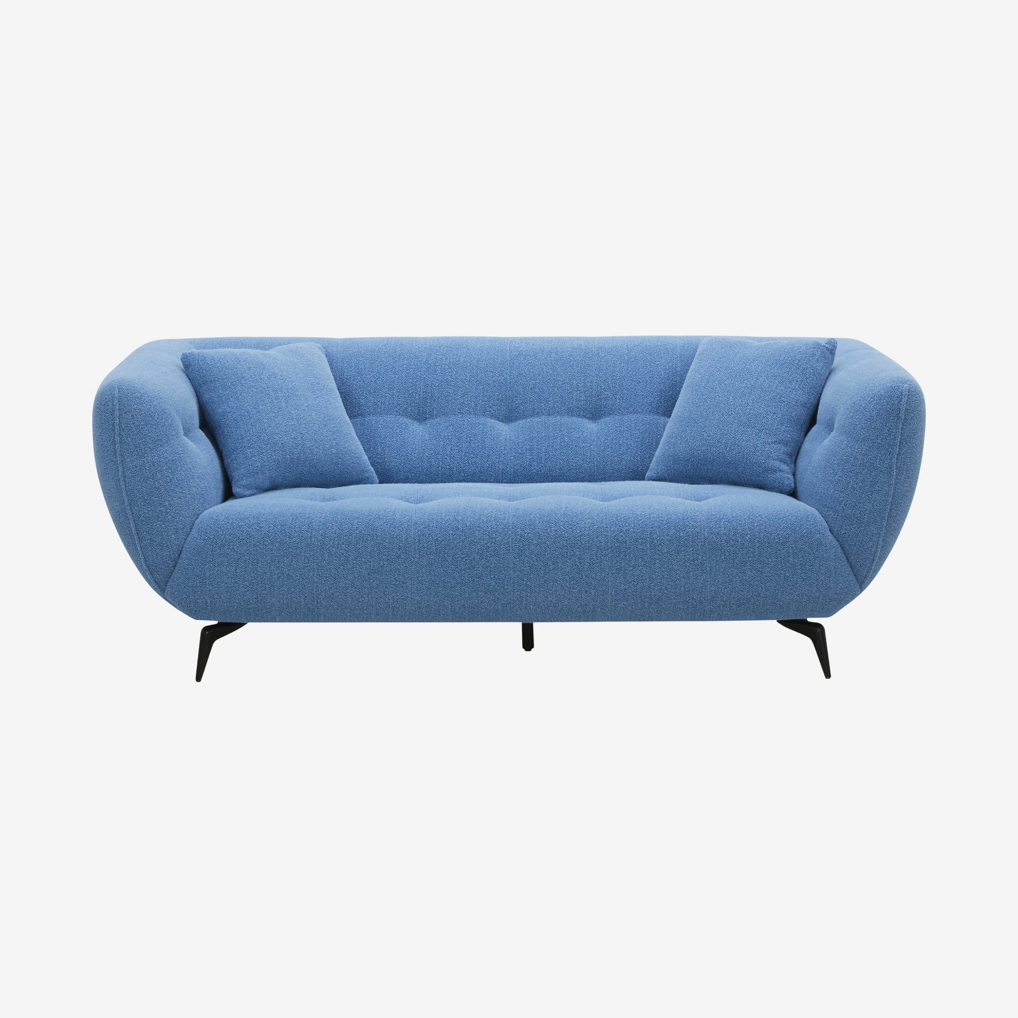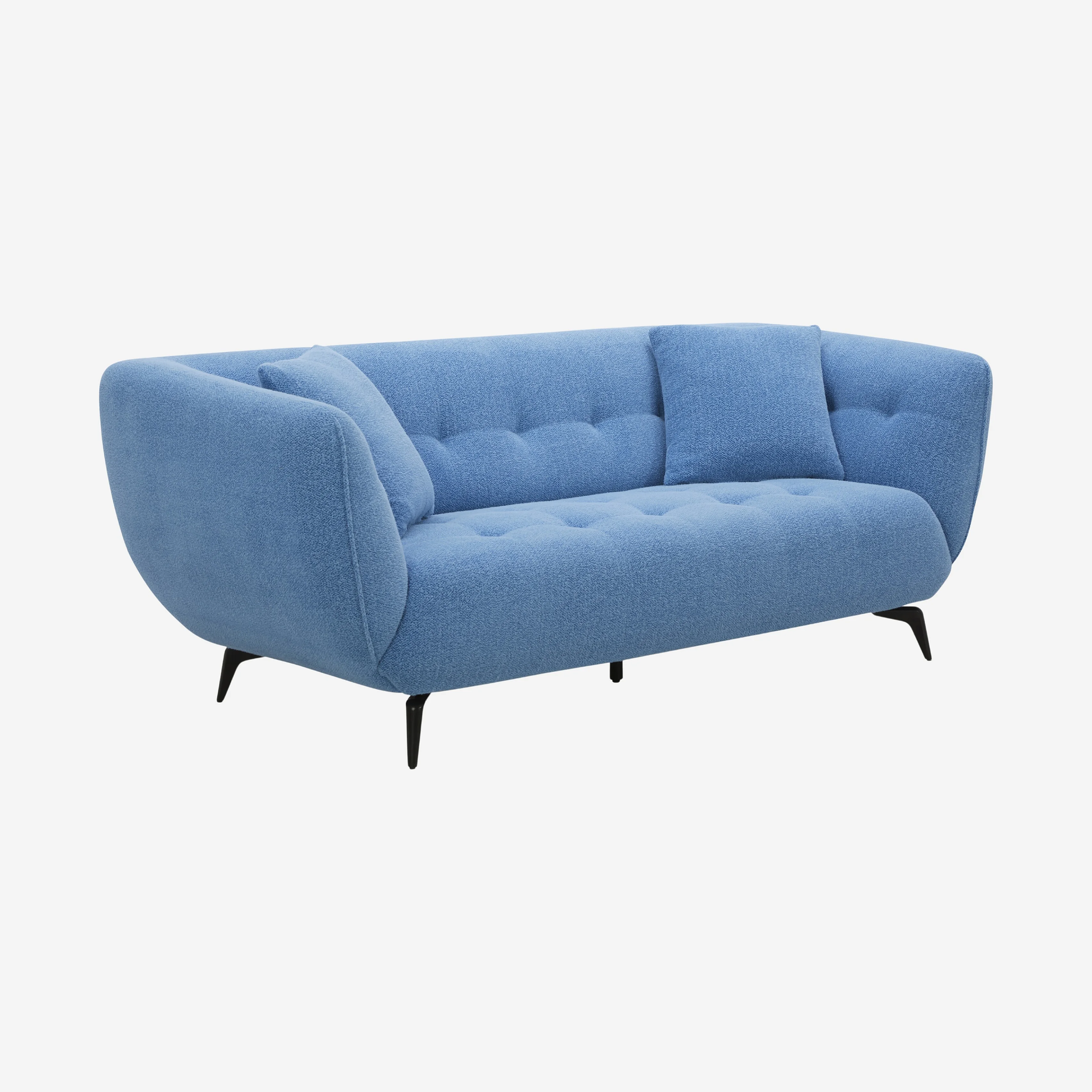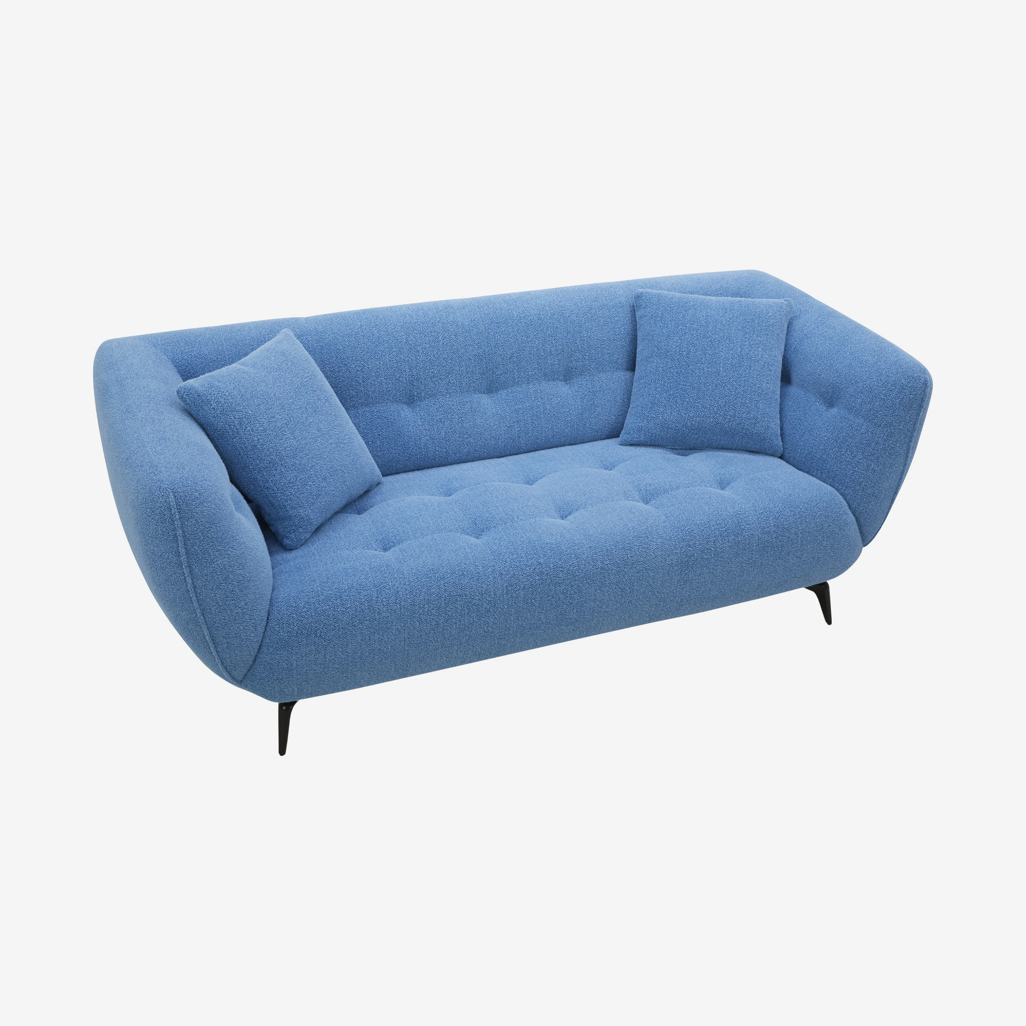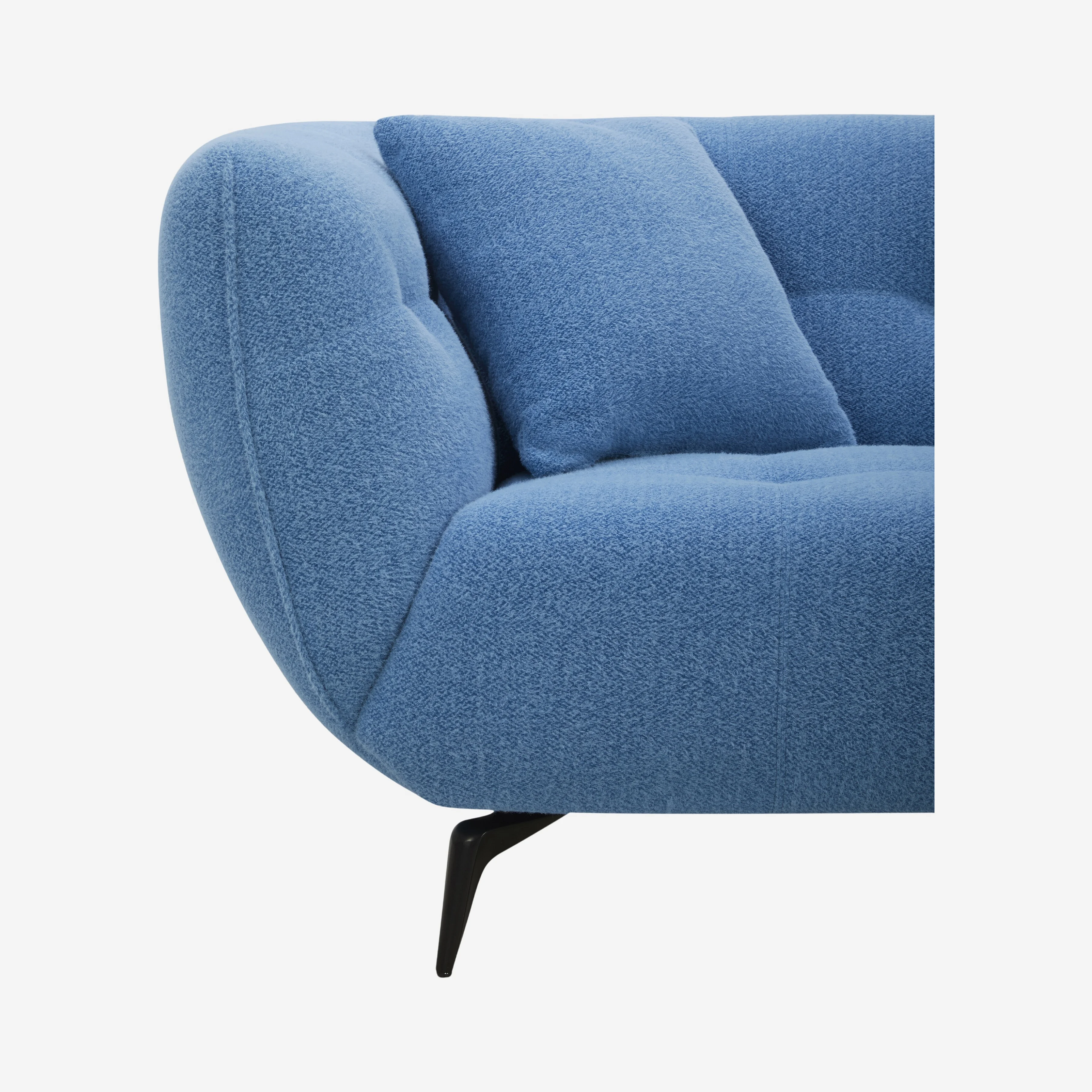 Le canapé Nashi associe une assise généreuse à une silhouette incurvée et capitonnée pour un confort enveloppant. Son design sculptural repose sur des pieds fins qui allègent l’ensemble avec élégance.