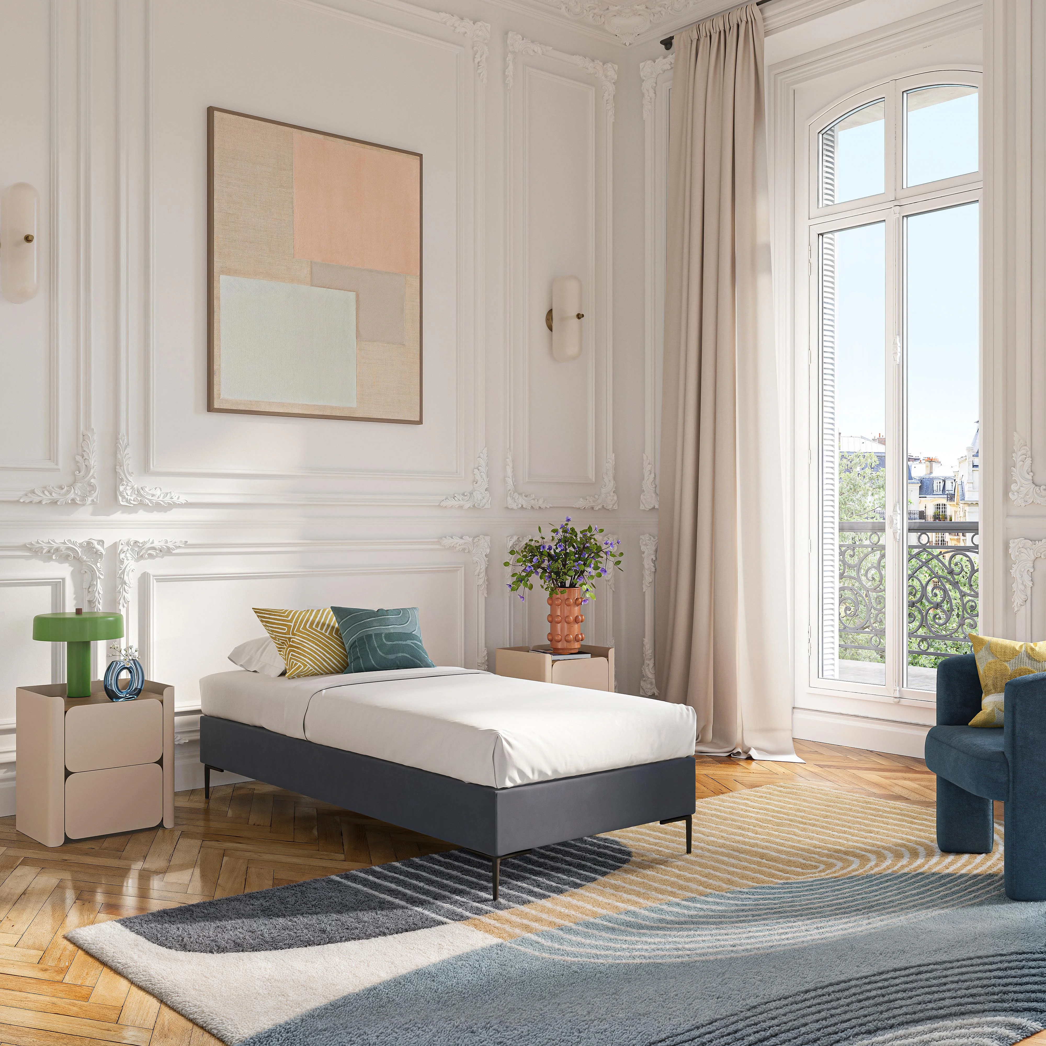 Allure inspirée des suites contemporaines, Nota insuffle un esprit hôtelier dans la chambre. Ce sommier tapissier joue la sobriété élégante, au service du confort.
