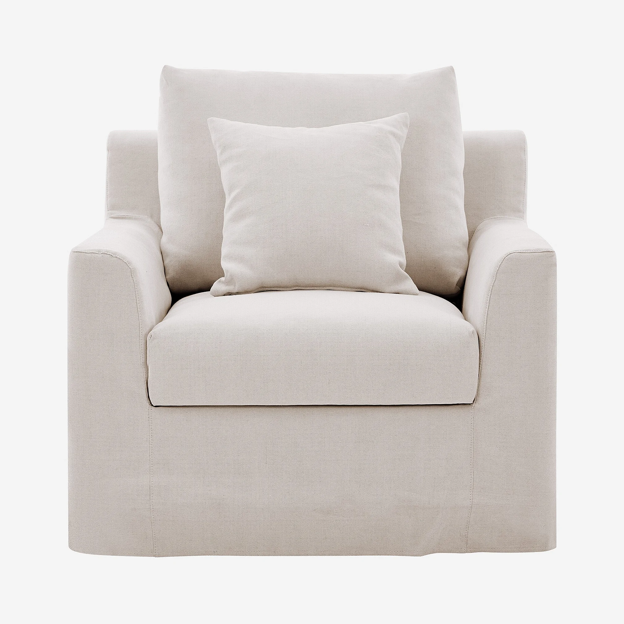 Fauteuil déhoussable en coton et lin garni de plumes - Sable blanc