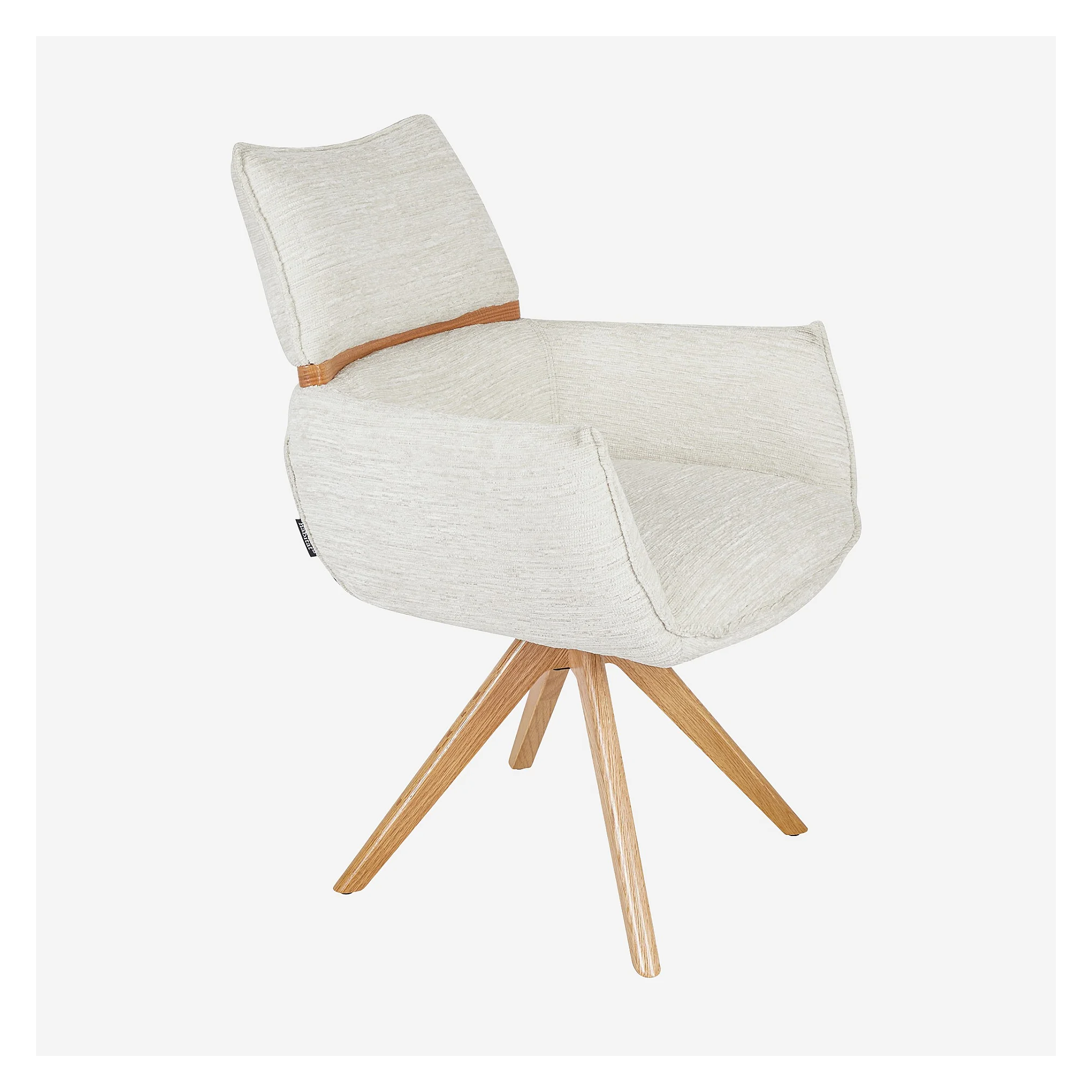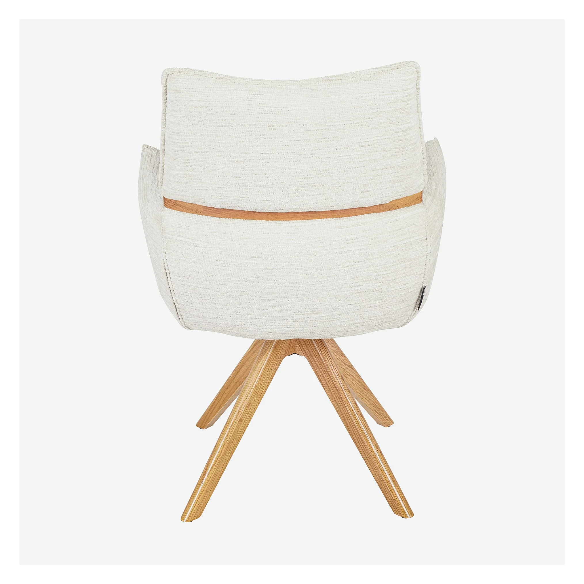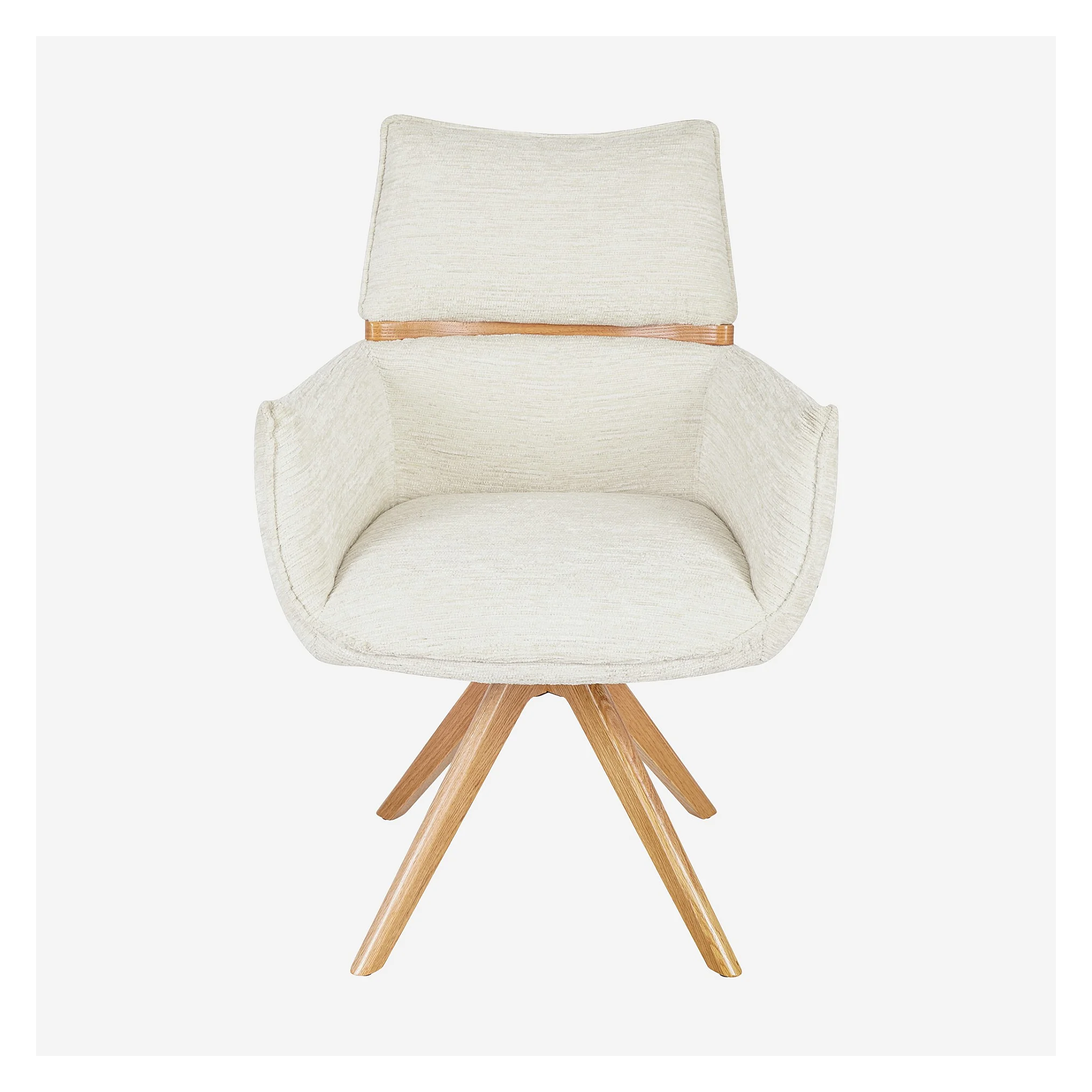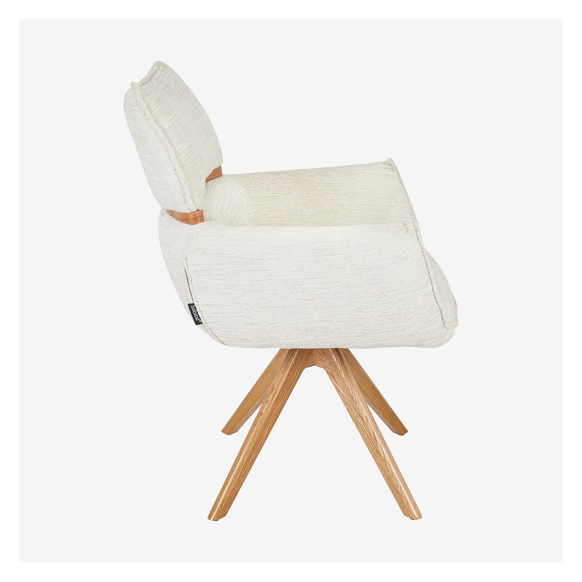 Chaise pivotante en tissu et chêne avec accoudoirs - Crème