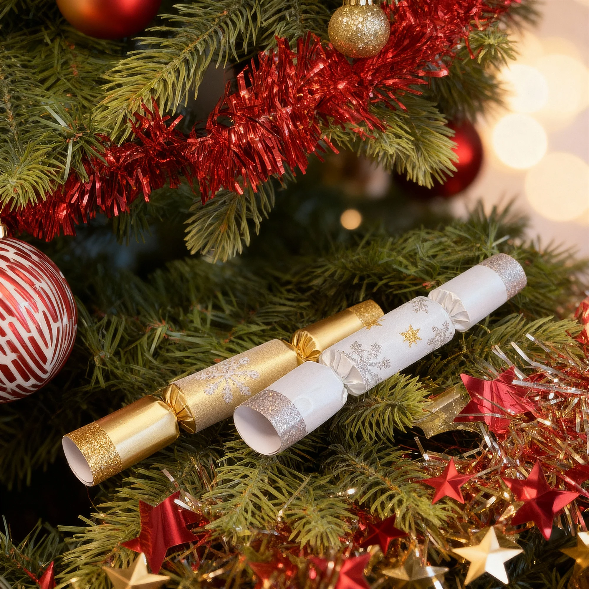 Les mini crackers Crackers ajoutent éclat et fantaisie à vos fêtes, entre flocons scintillants et rennes joyeux pour célébrer Noël avec élégance et convivialité.